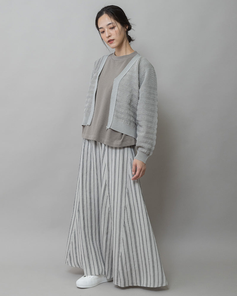 リネンビスコースマルチストライプフレアスカート