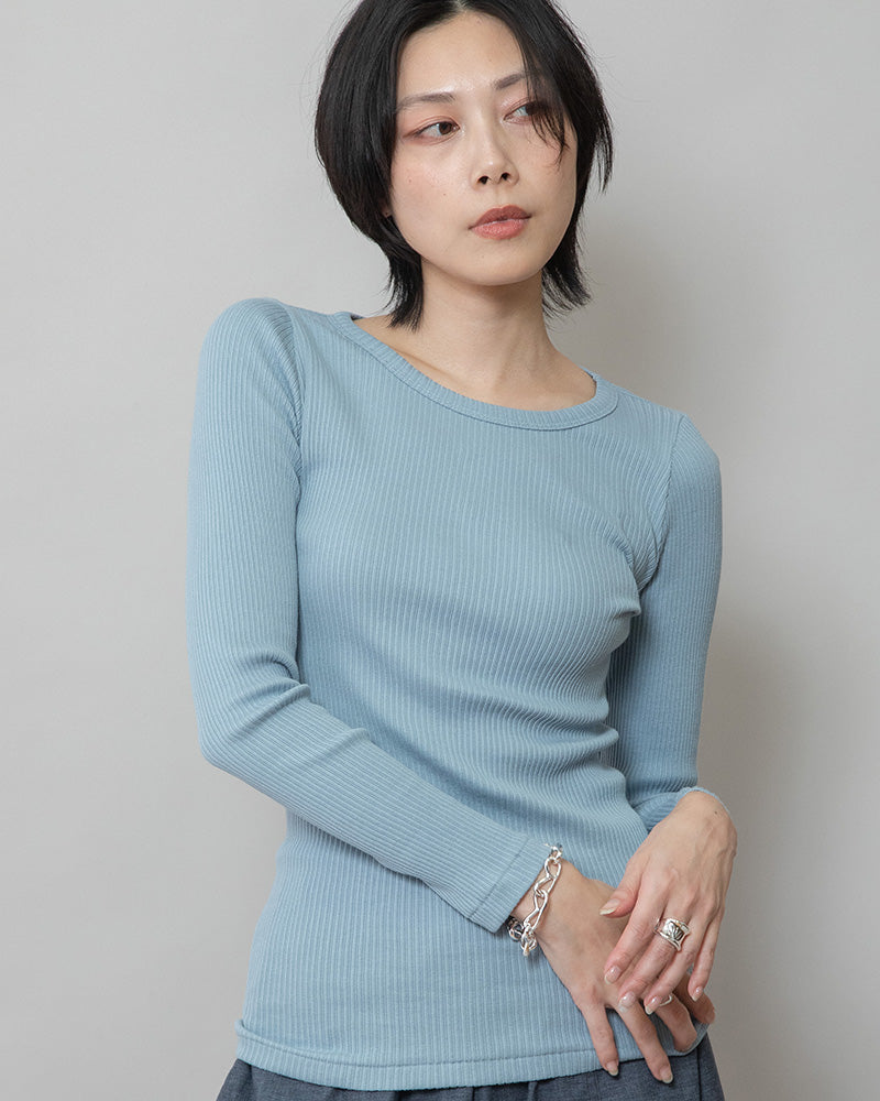 素肌に心地よく馴染むフィット感で、ジャケットやニットのインにもすっきりと重ねられます。