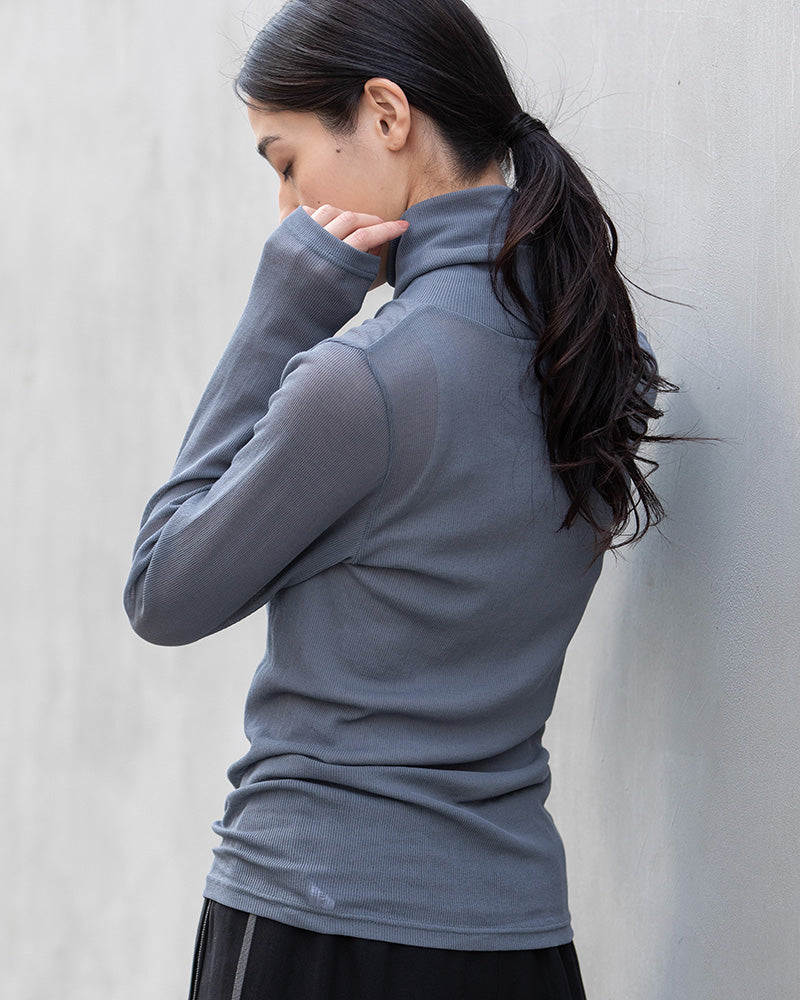 繊細なリブ素材とややシアーな質感が魅力のタートルカットソー。