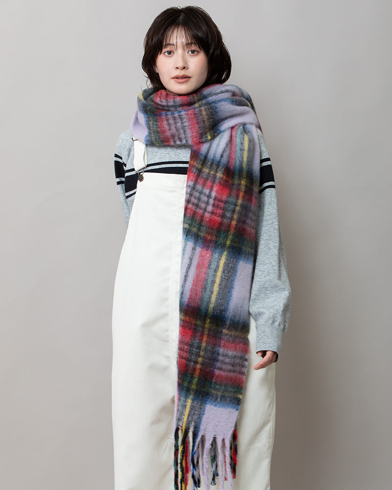 季節感たっぷりのタータンチェックが目を惹く、大判サイズのあったかストール。