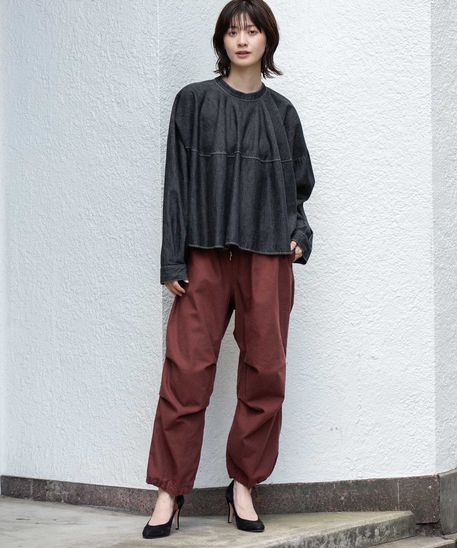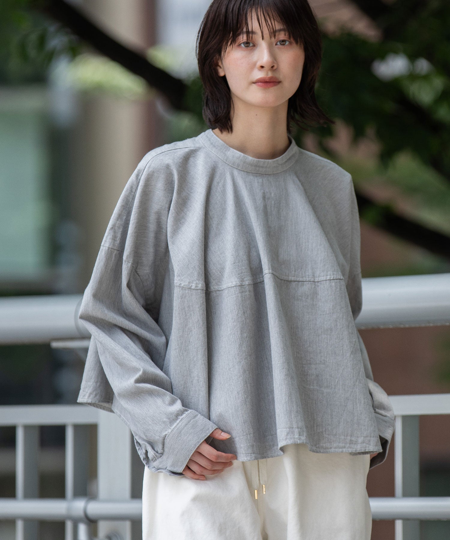 ボトムスを選ばず、合わせるアイテム次第でカジュアルにもきれいめにも振れるブラウスです。