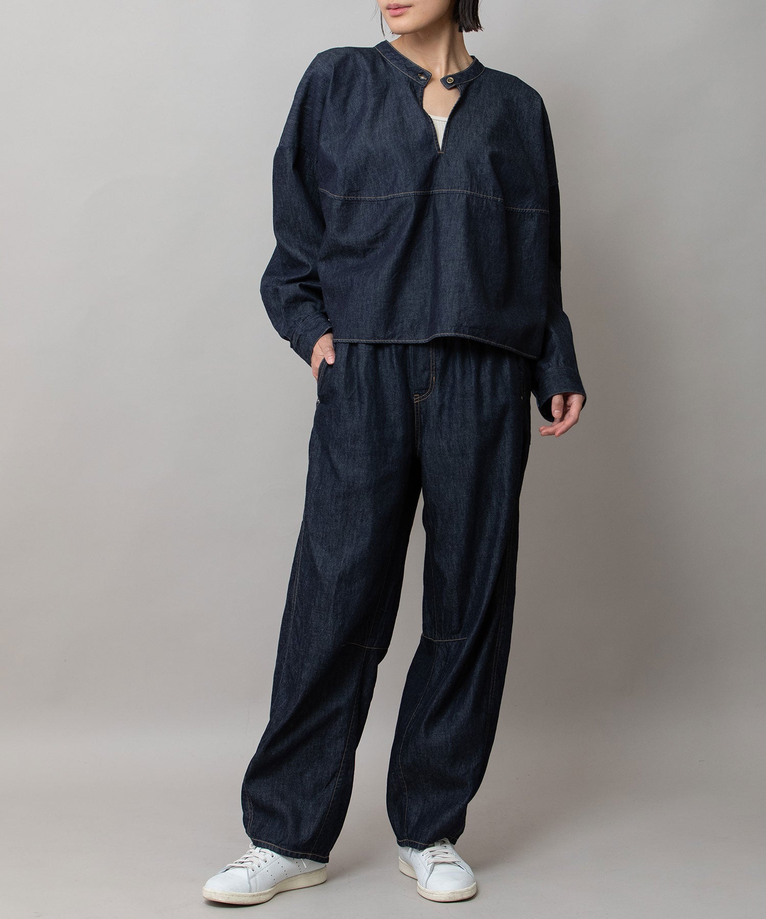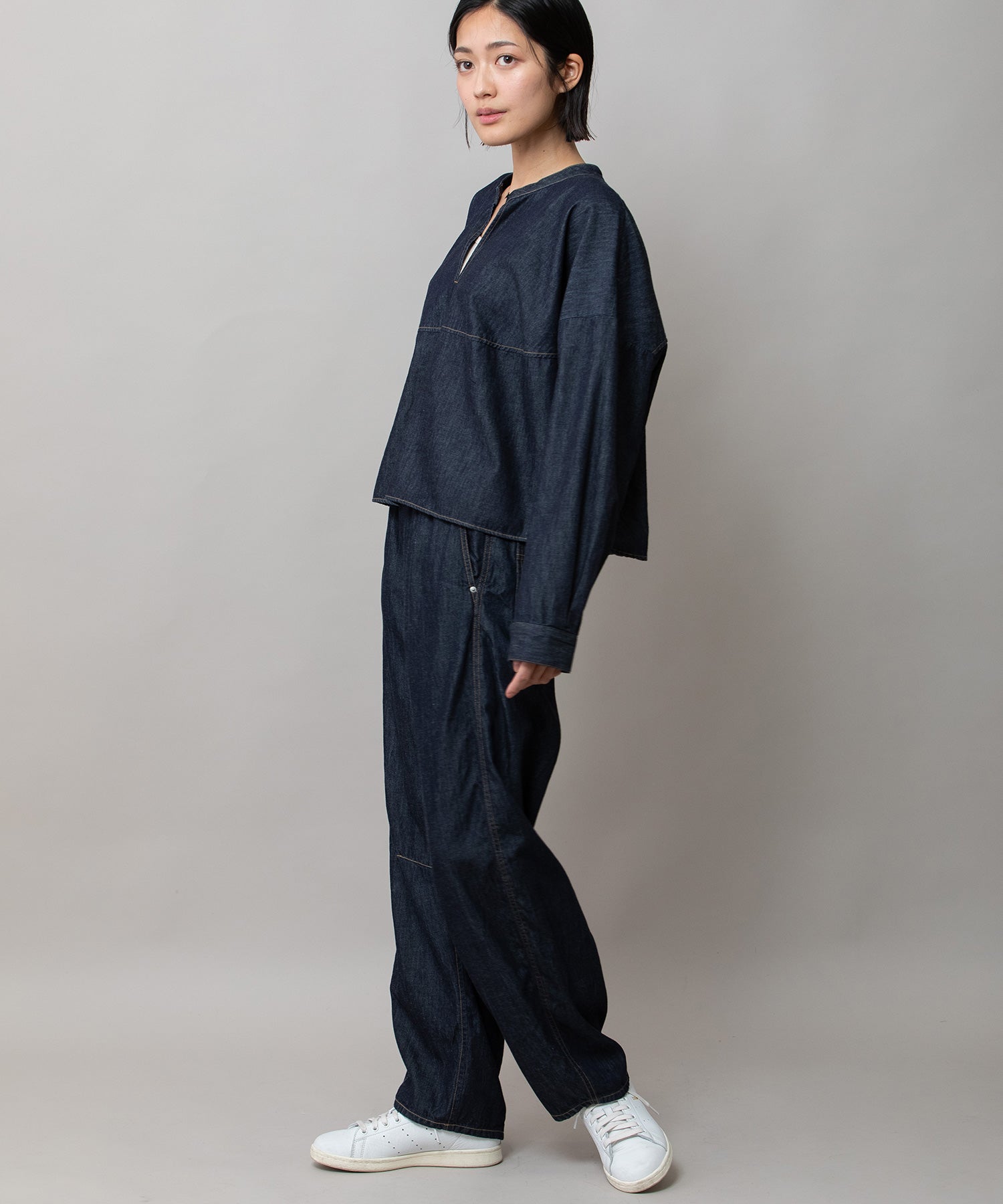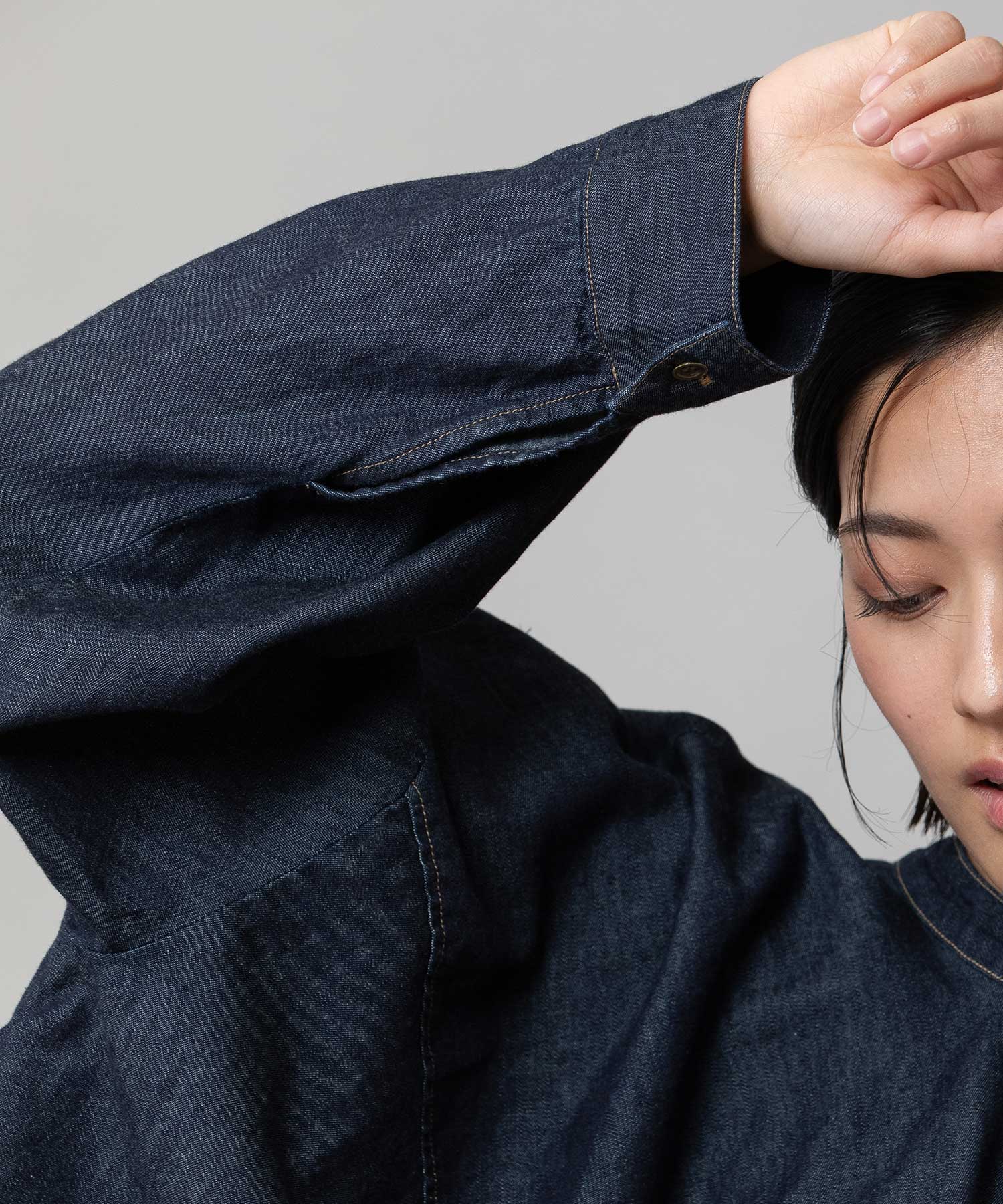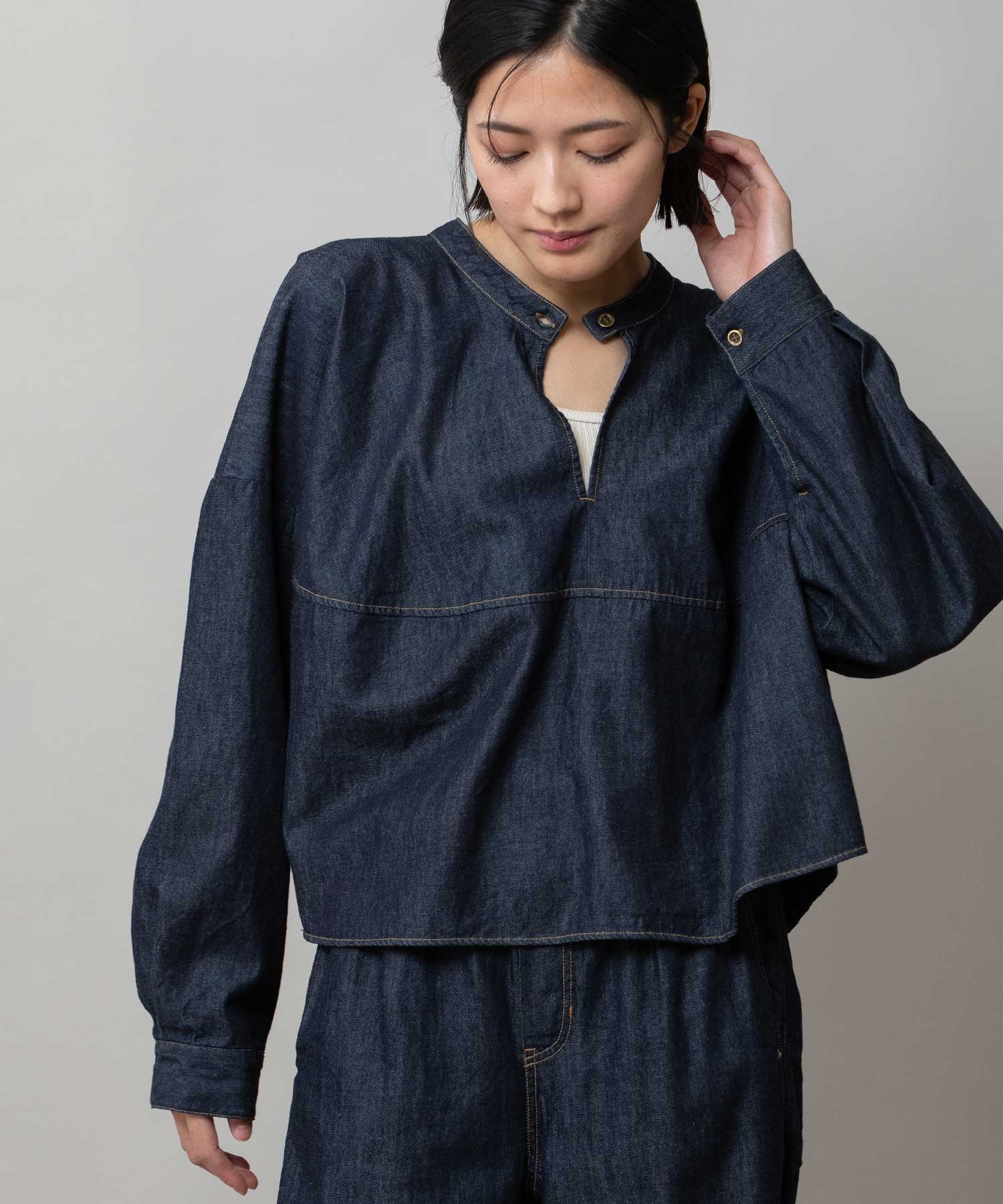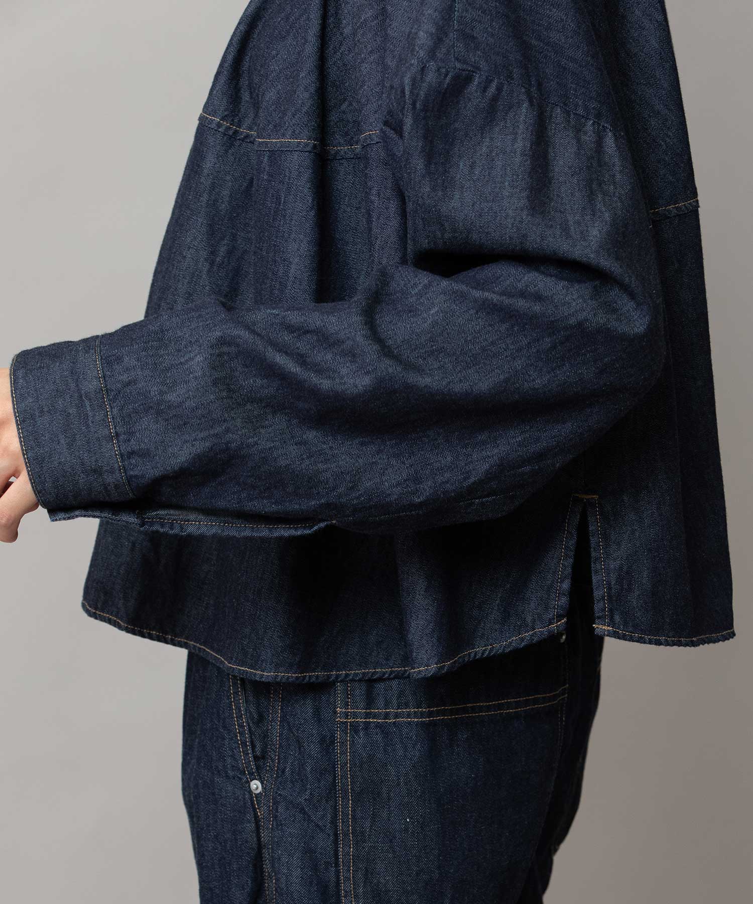 6ozスラブデニム2wayクロップドシャツ