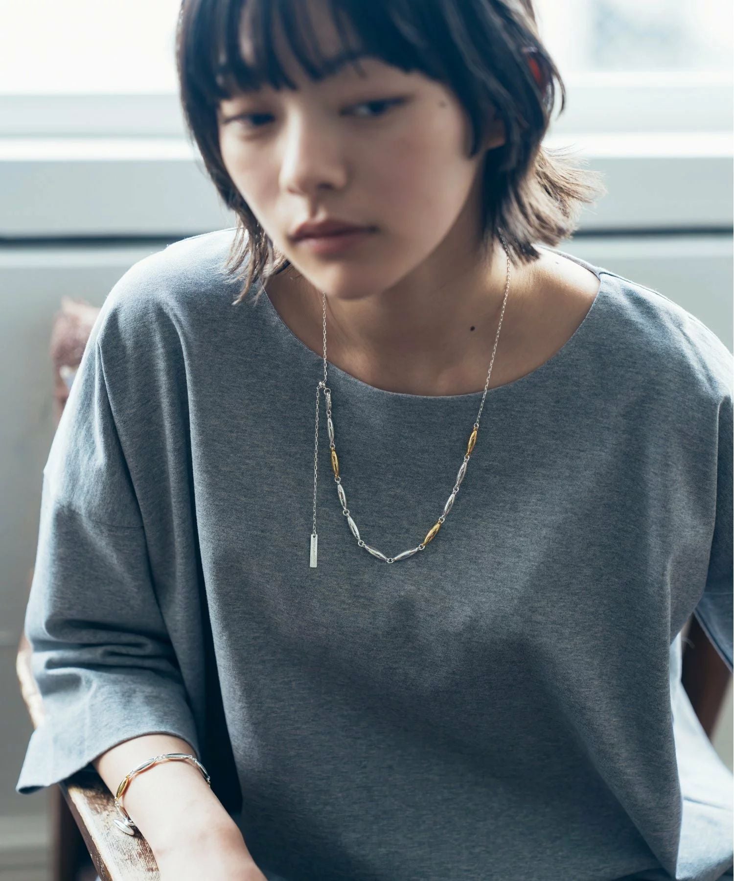 ぽってり(plump)したニュアンスパーツを組み合わせたネックレス。