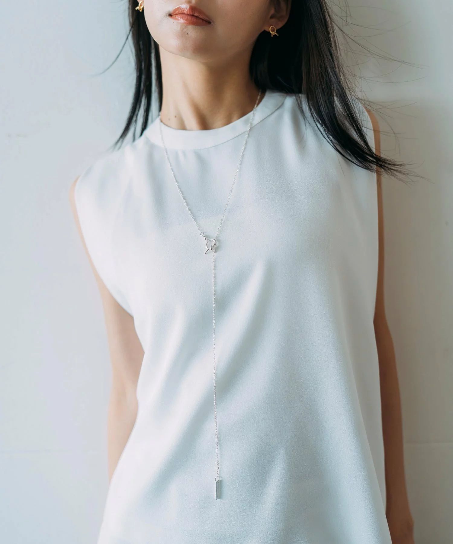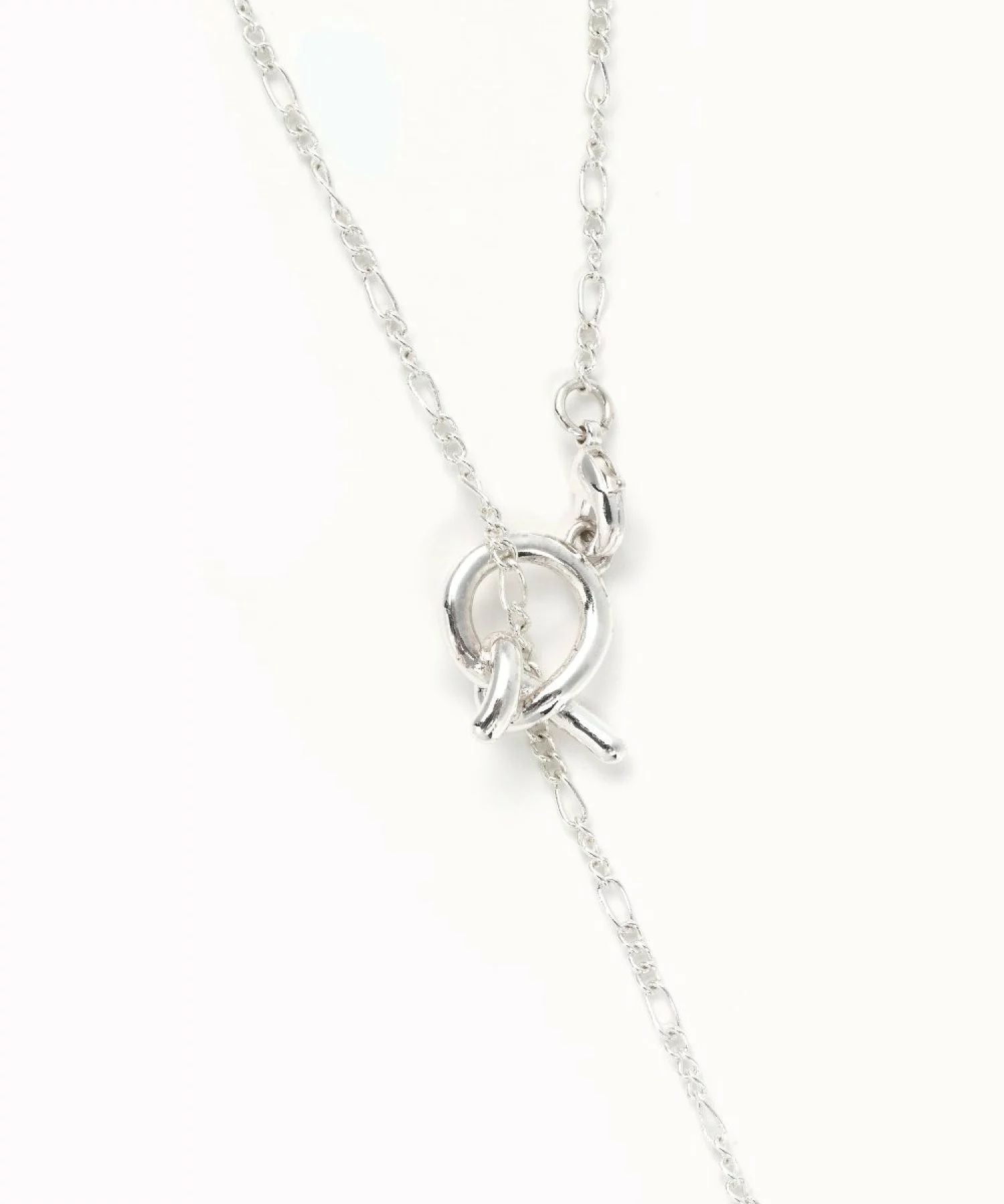 繊細なチェーンと存在感のあるノットが絶妙なバランスで、抜け感と個性を演出します。