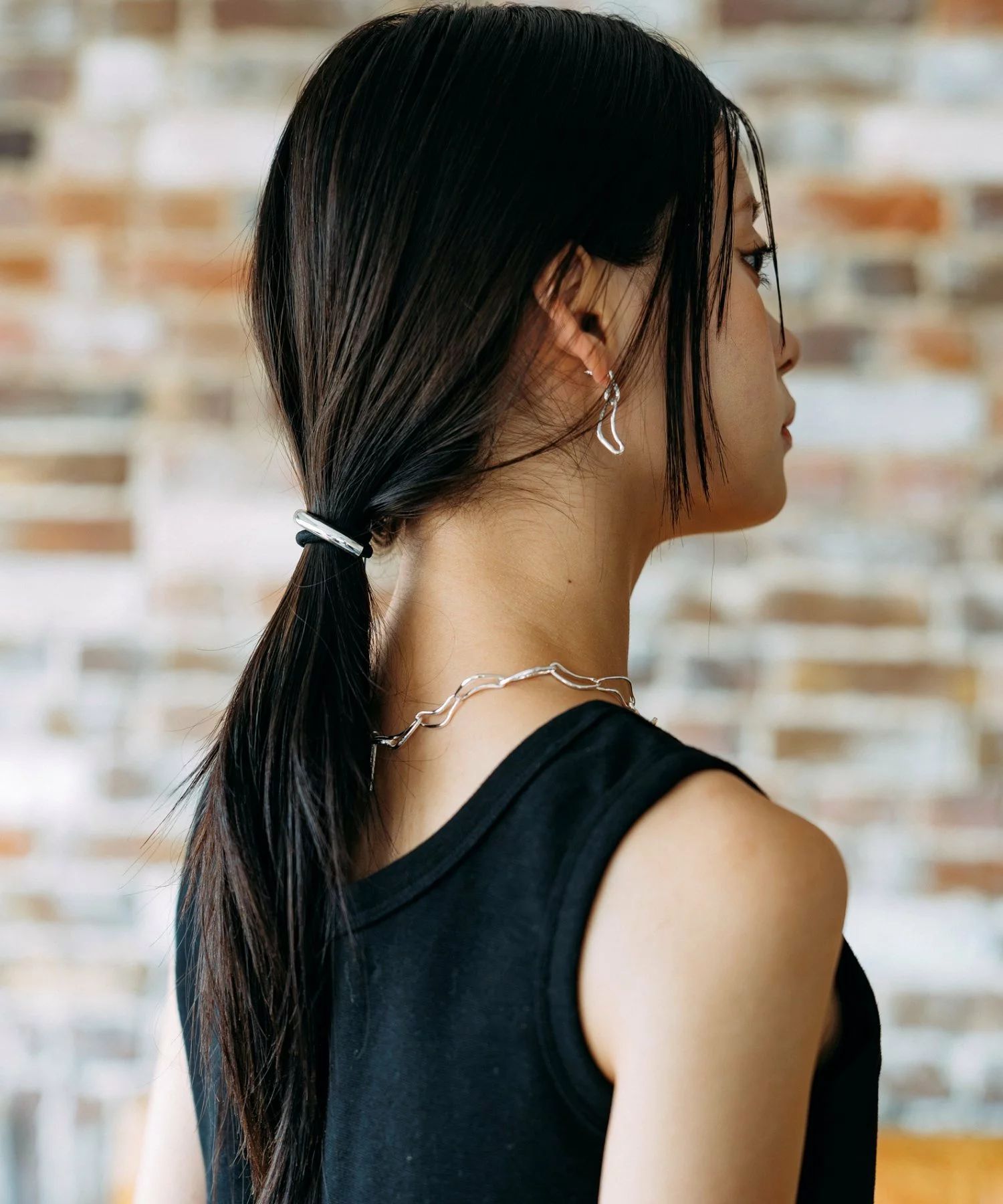 メタルの光沢がカジュアルにもキレイめにも馴染み、結ぶだけで上品なバックスタイルを叶えます。