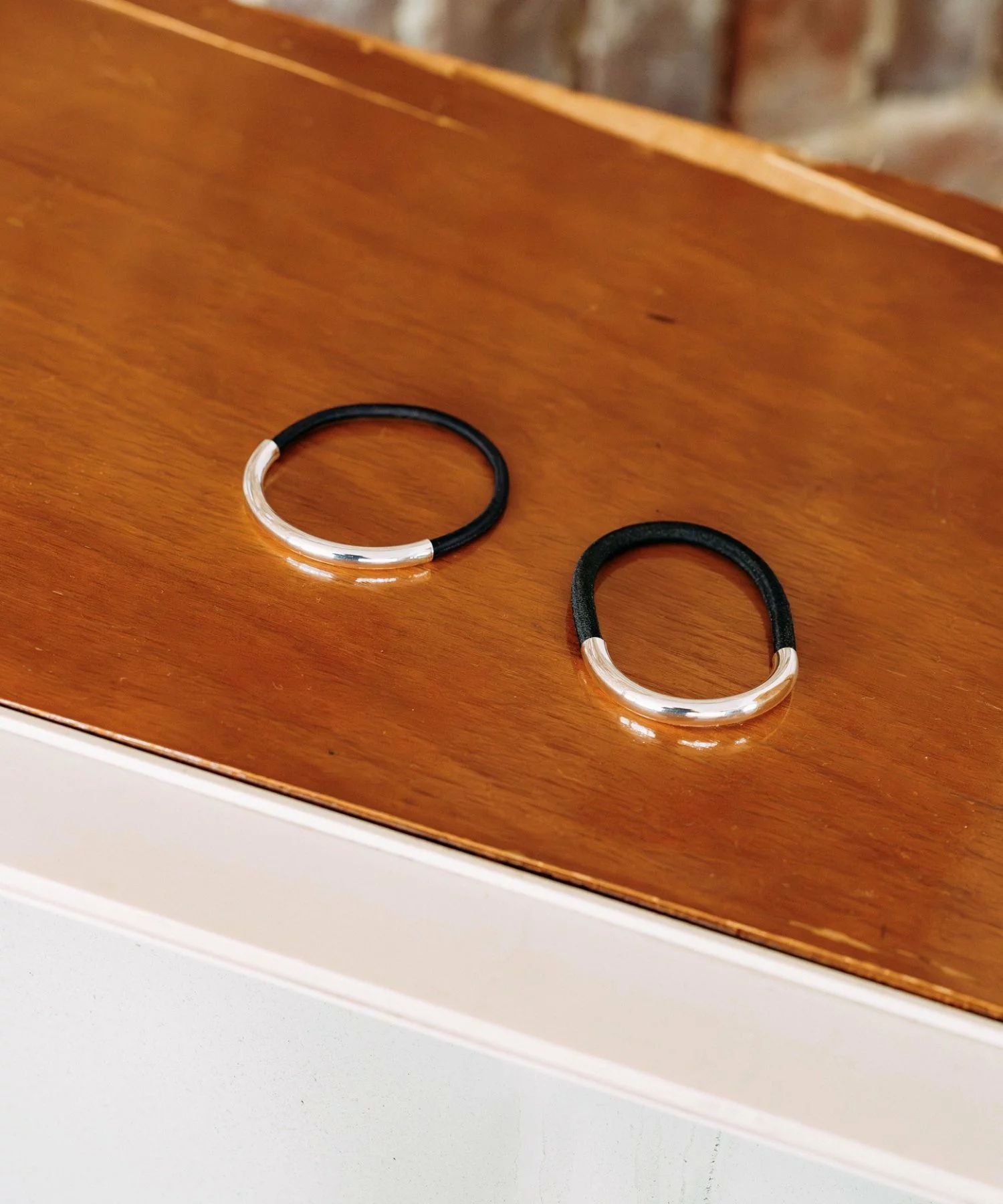異なるカーブを描くメタルパーツが印象的なヘアゴムセット。