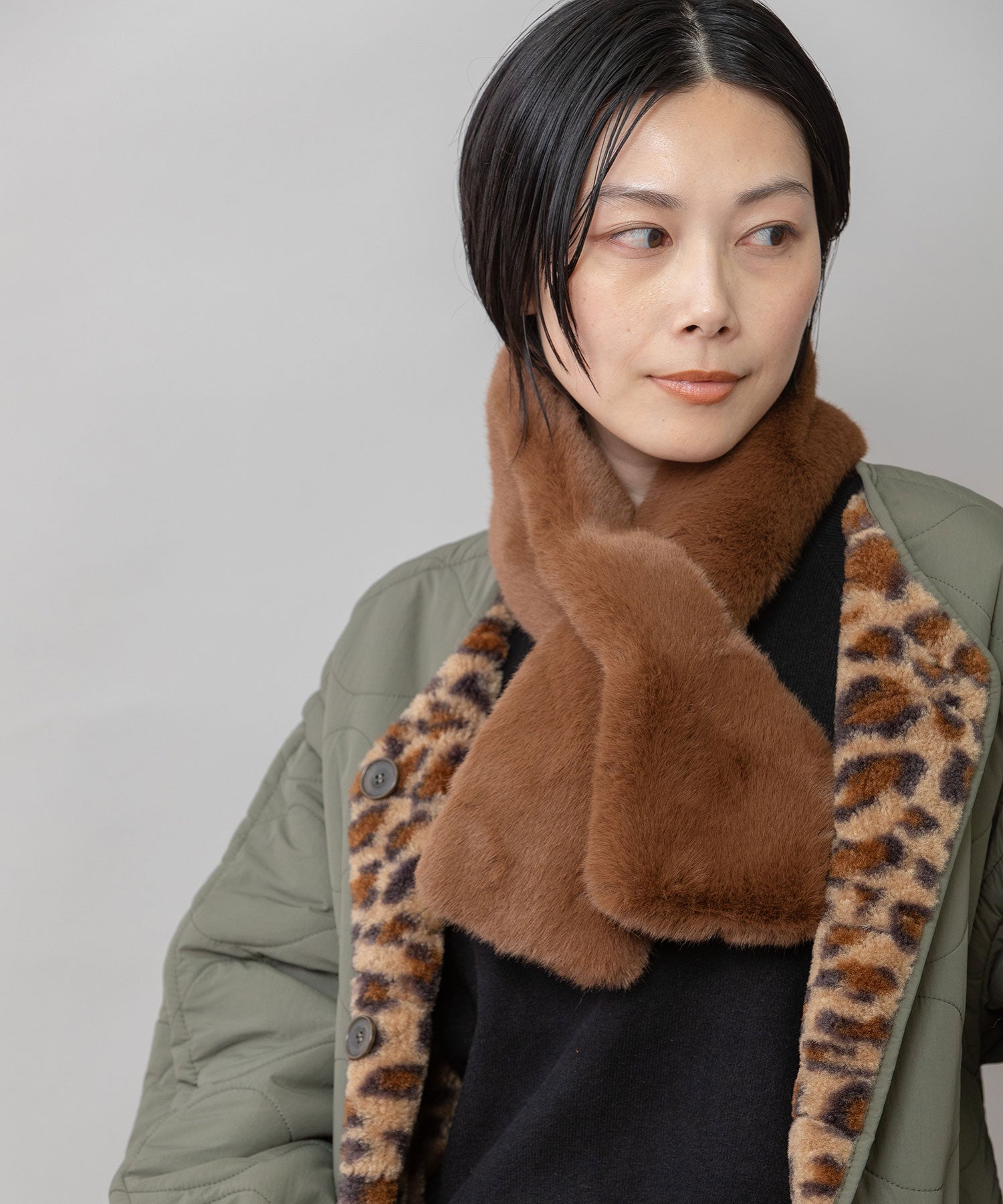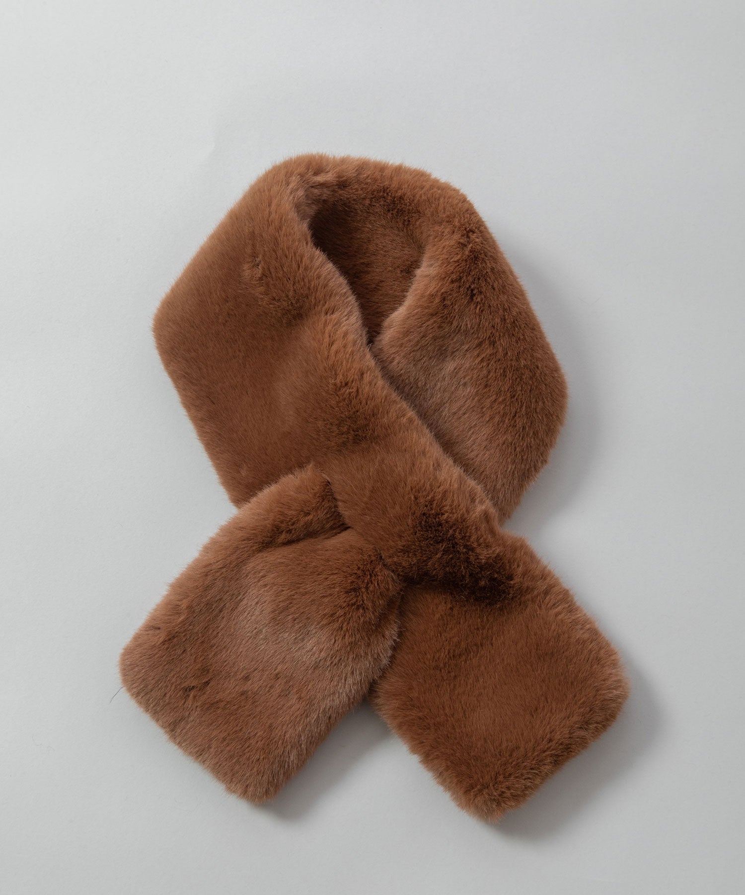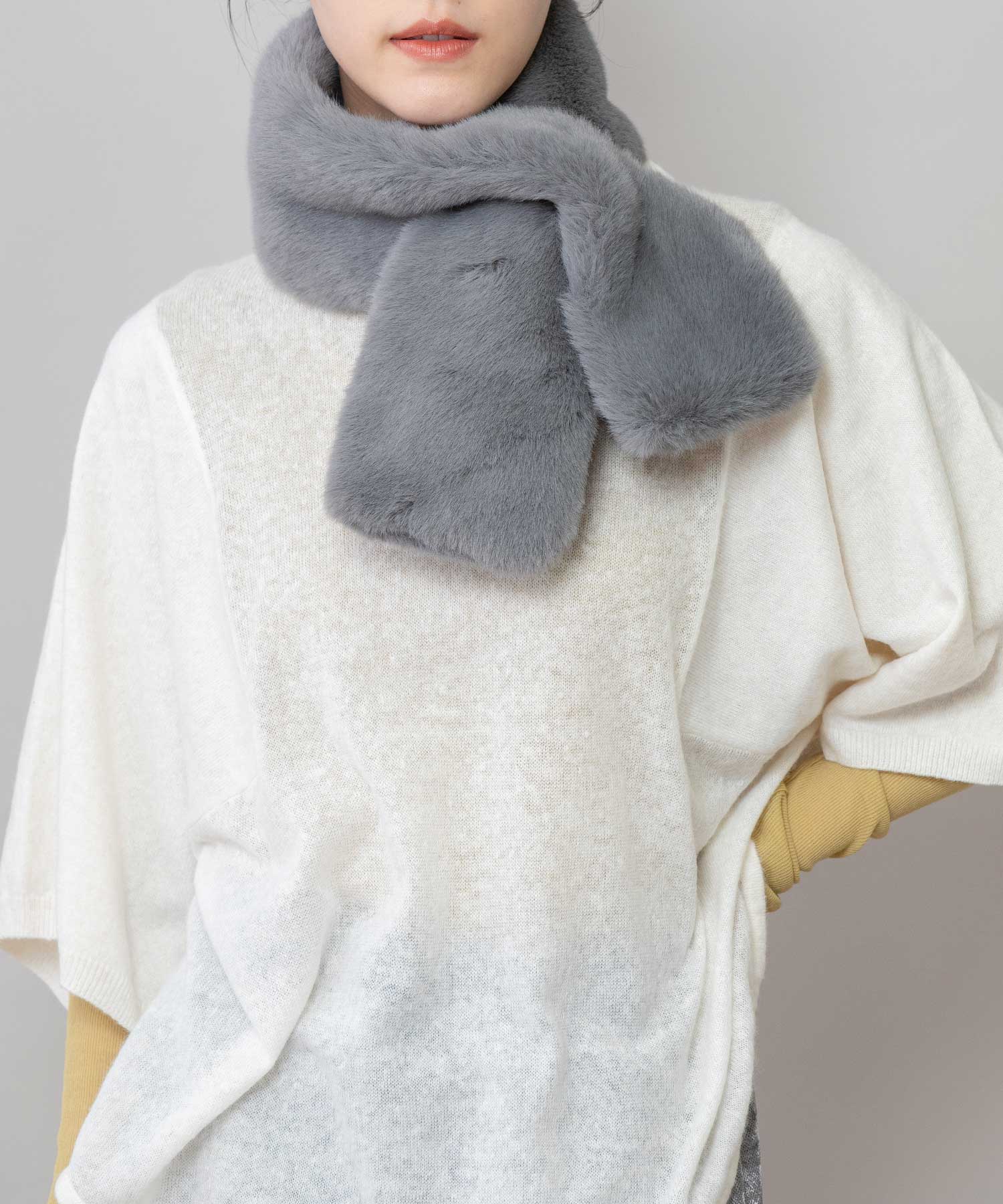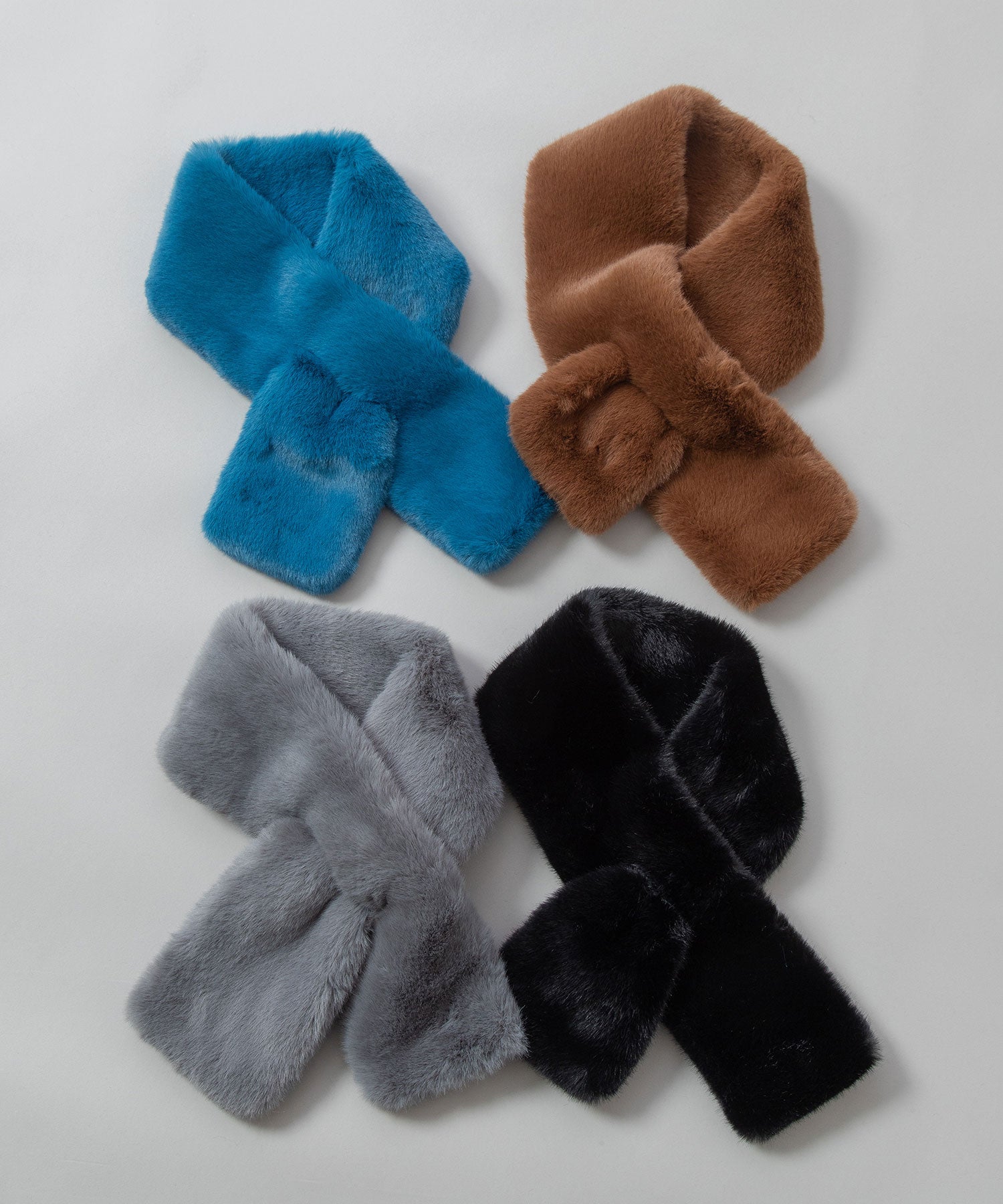 ◆肌触りのいいフェイクファーを使用した切り込みに差し込んで止めるタイプのショートマフラー◆