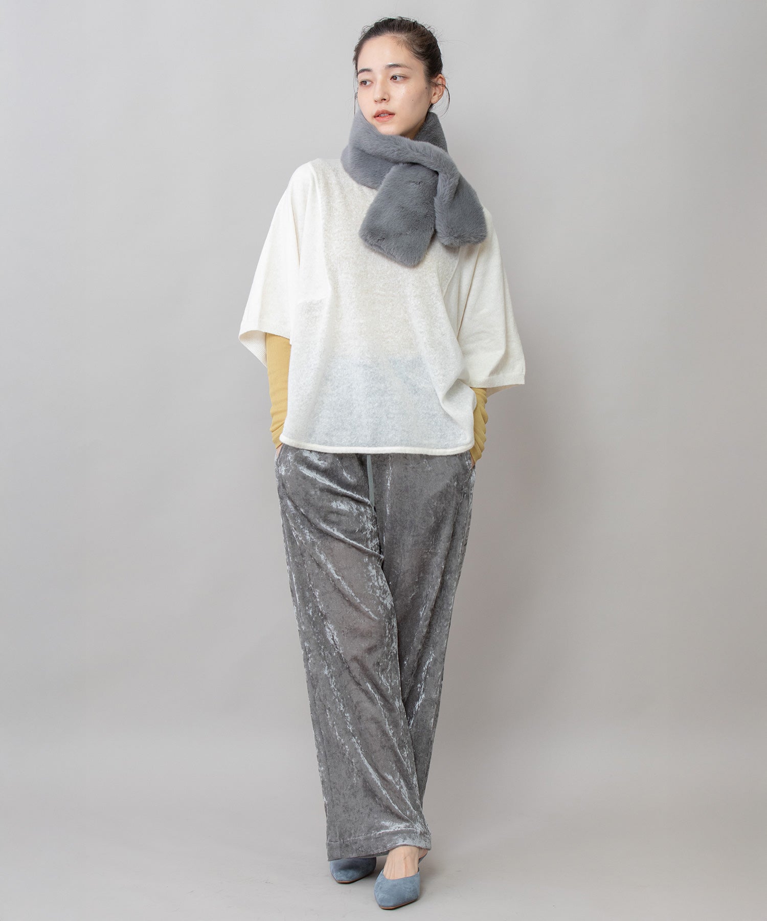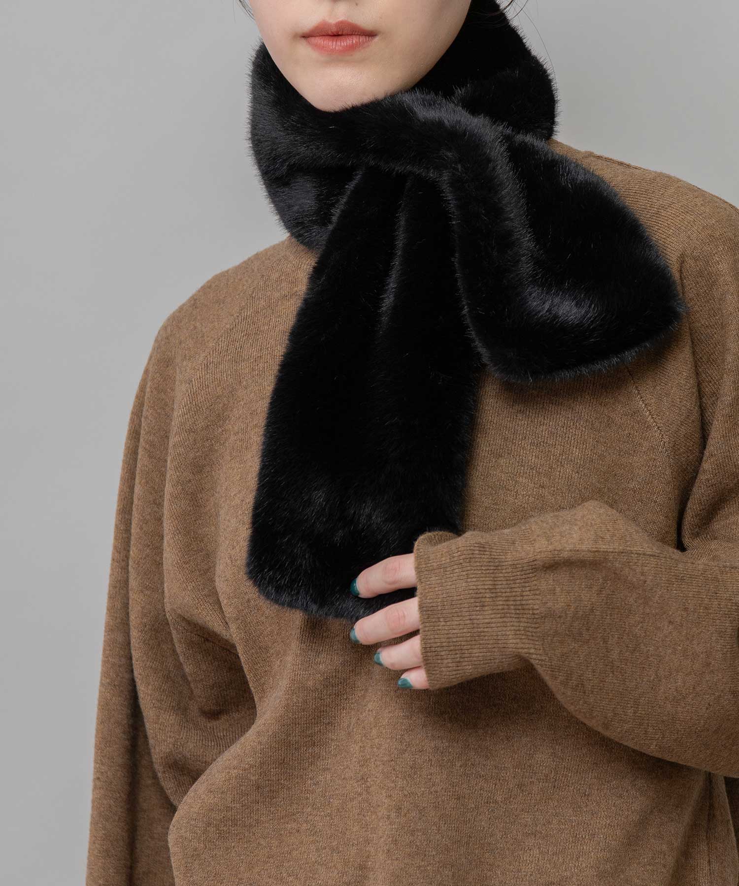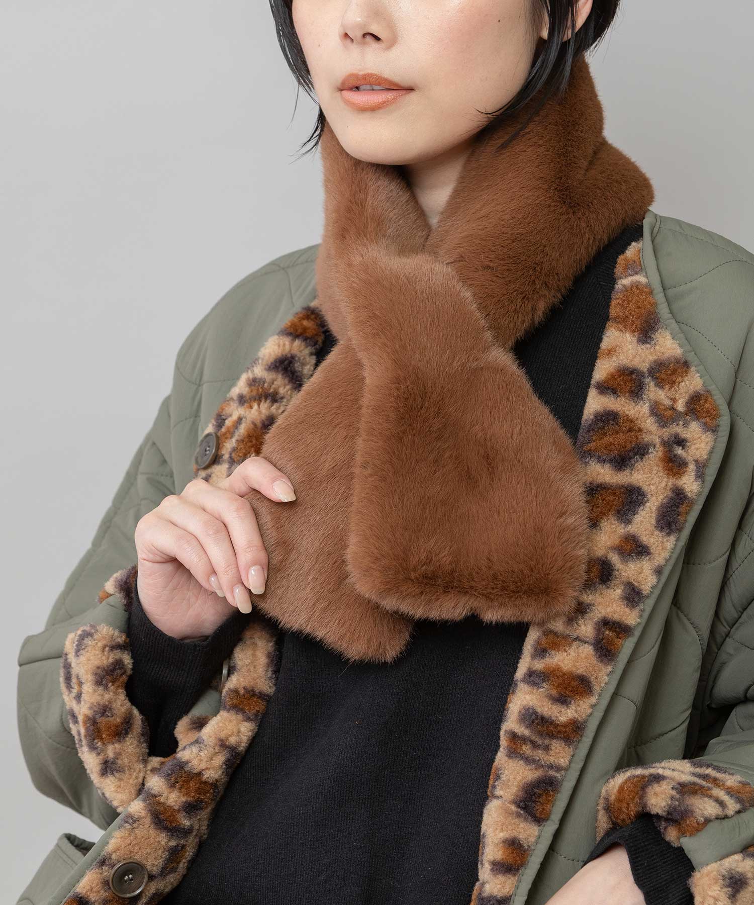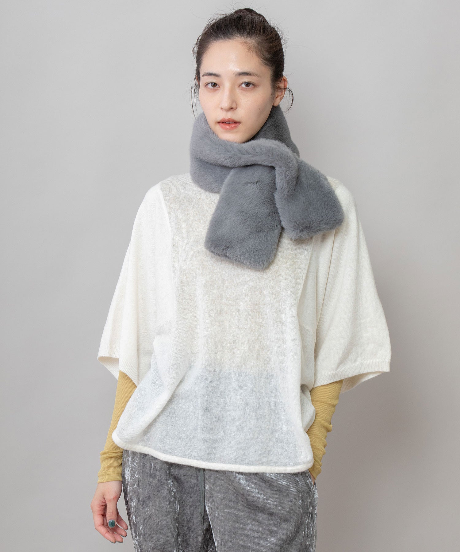 ◆肌触りのいいフェイクファーを使用した切り込みに差し込んで止めるタイプのショートマフラー◆