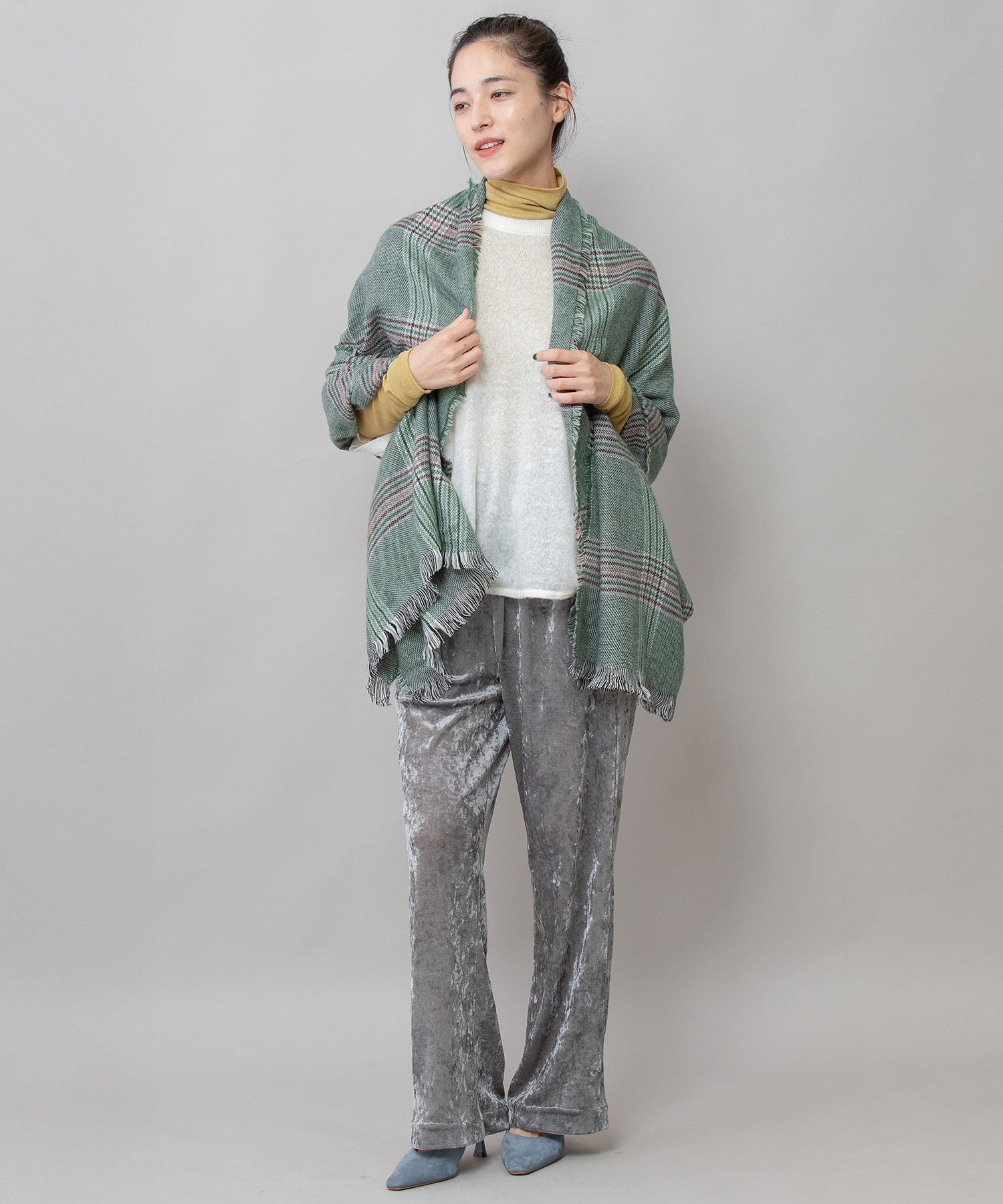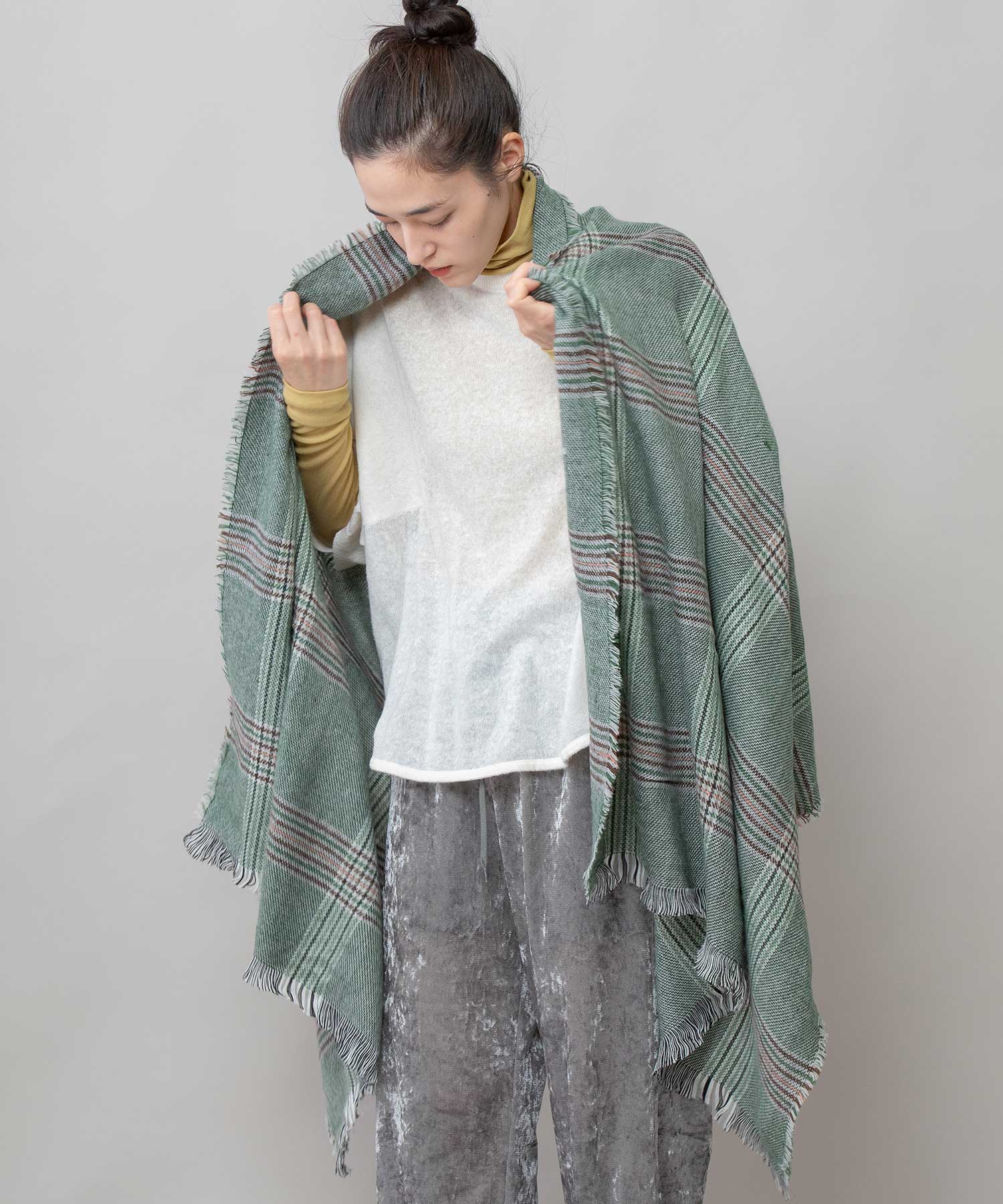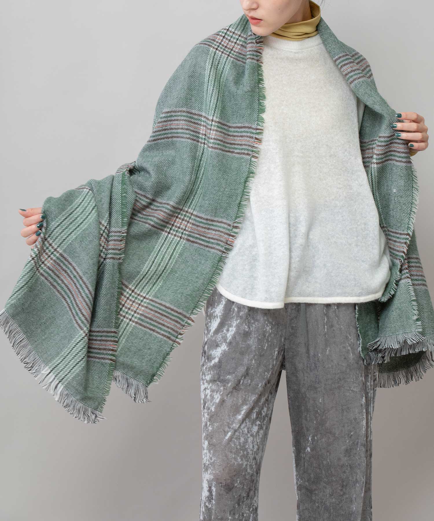 比較的薄手ながらも秋冬シーズンらしい起毛感があり、ストール使い&マフラー使い両方楽しめるアイテムです。