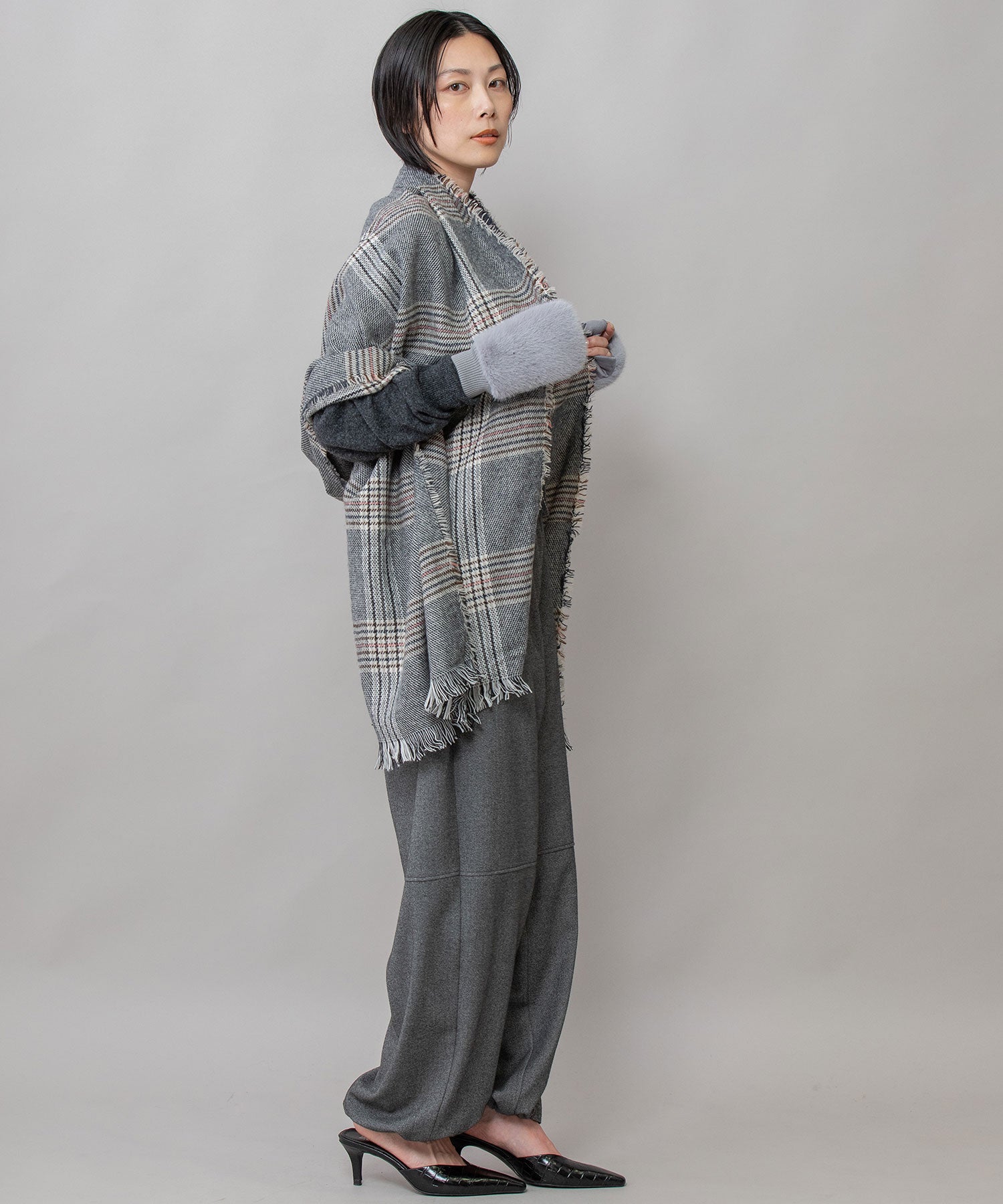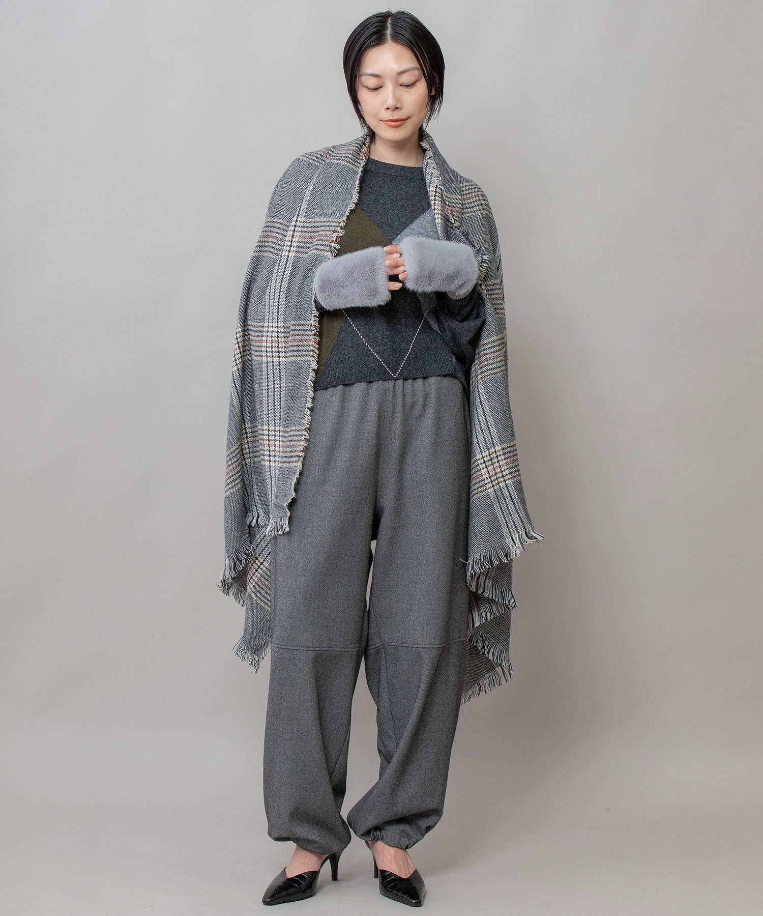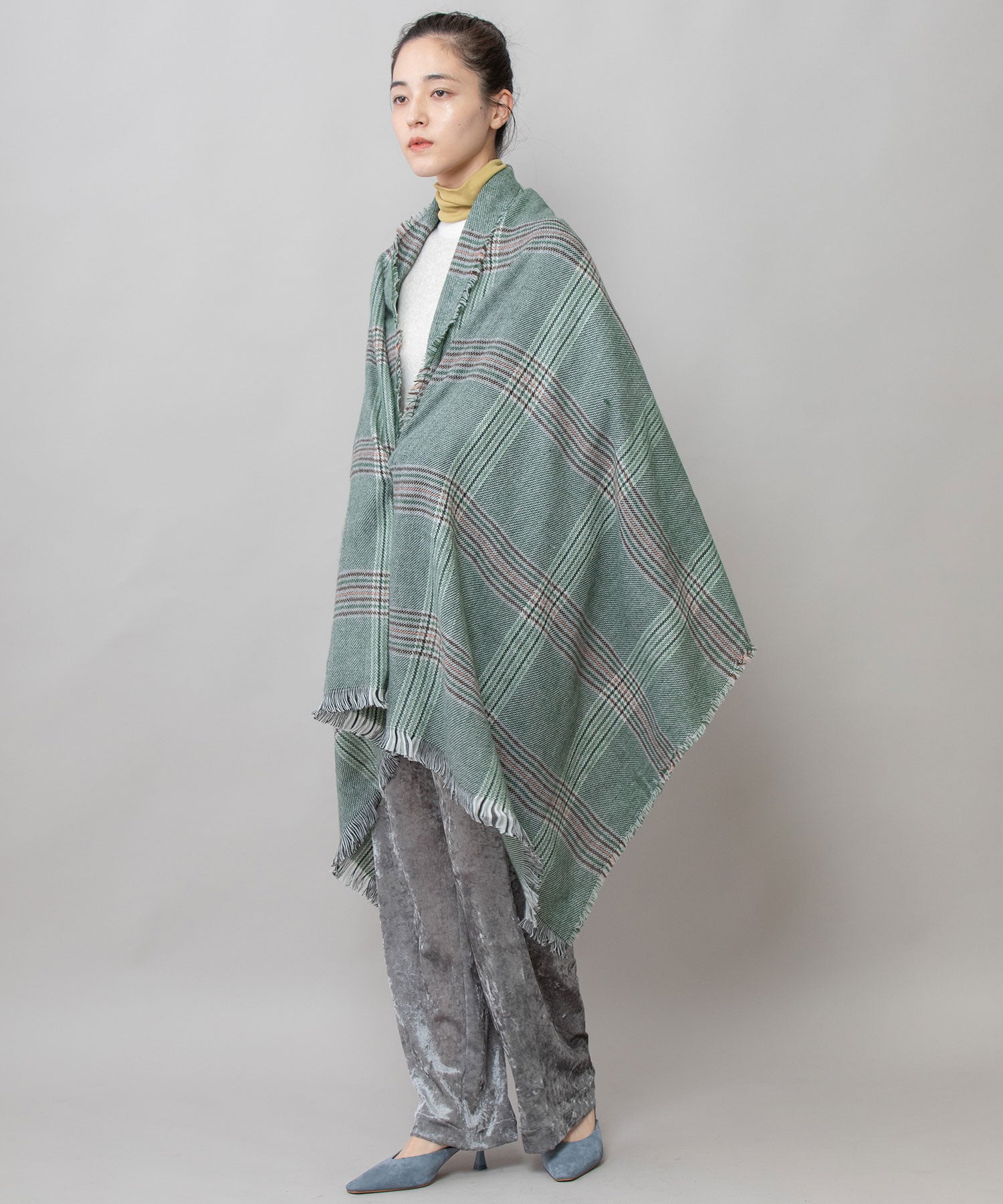 比較的薄手ながらも秋冬シーズンらしい起毛感があり、ストール使い&マフラー使い両方楽しめるアイテムです。