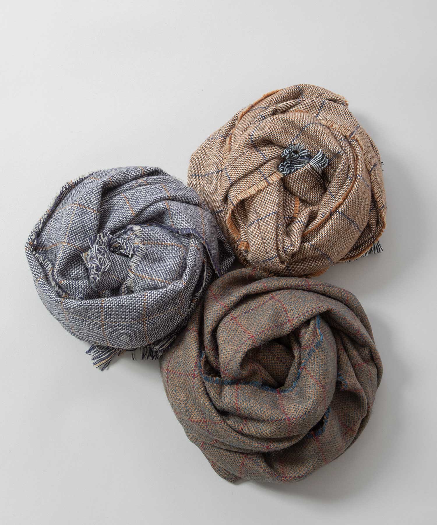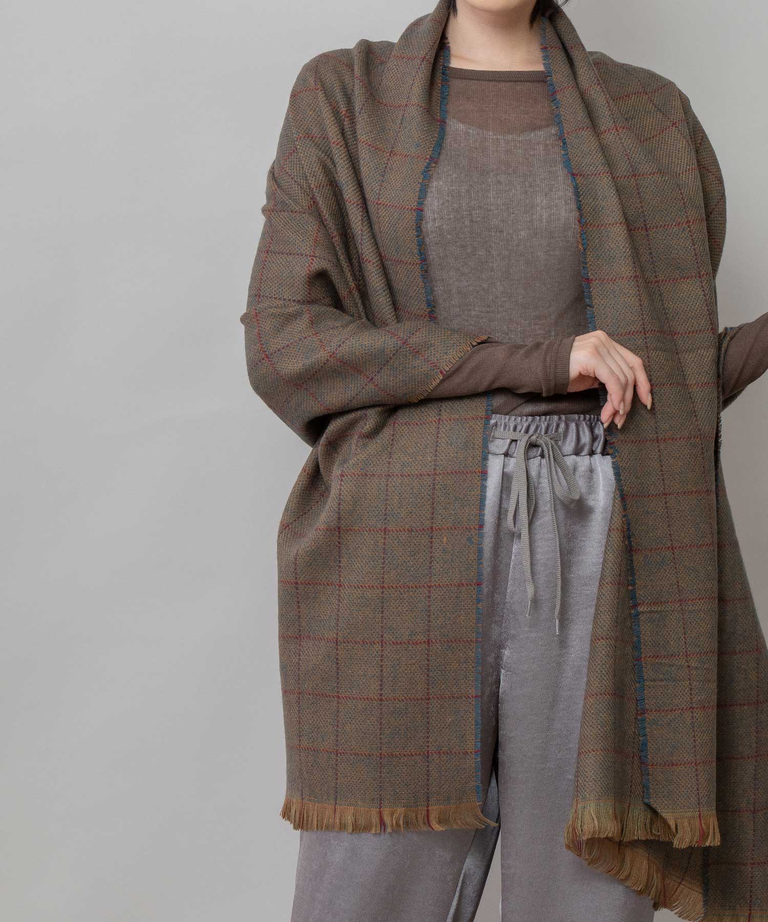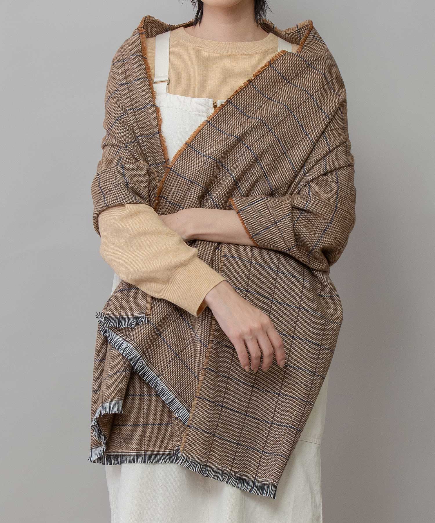 ◆シックな色合いでまとめられたウィンドウペンチェックのストール◆