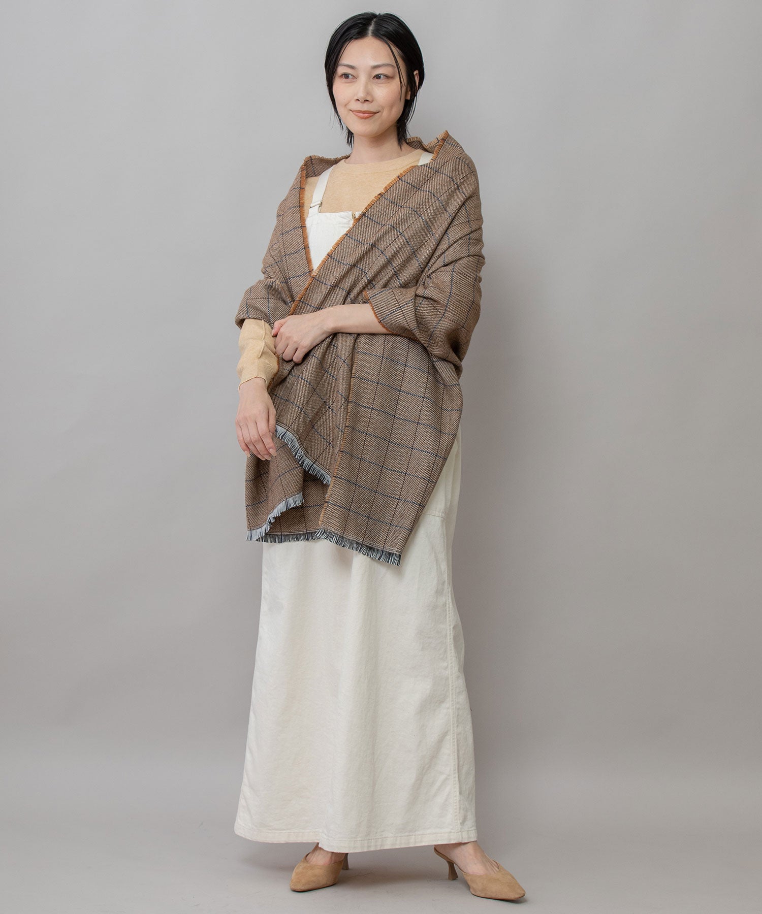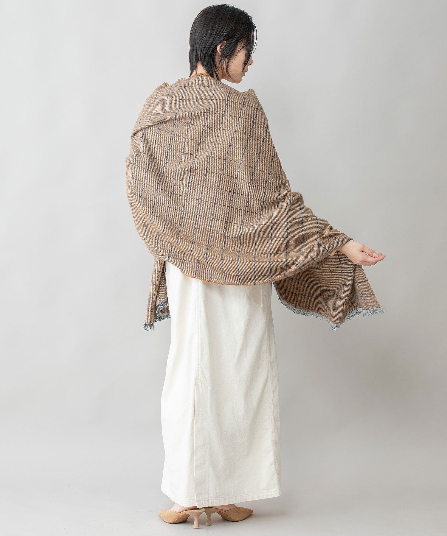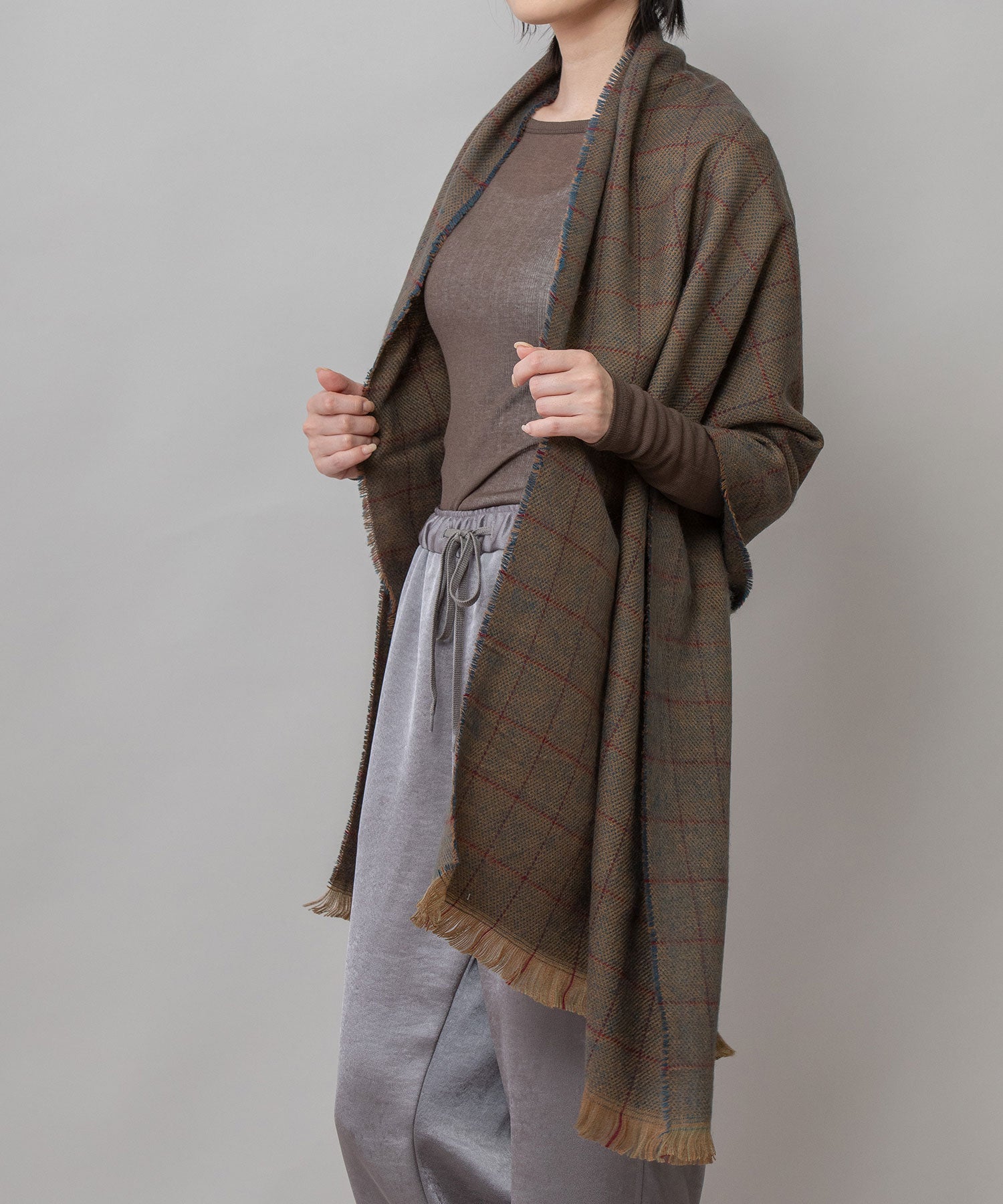 ◆シックな色合いでまとめられたウィンドウペンチェックのストール◆
