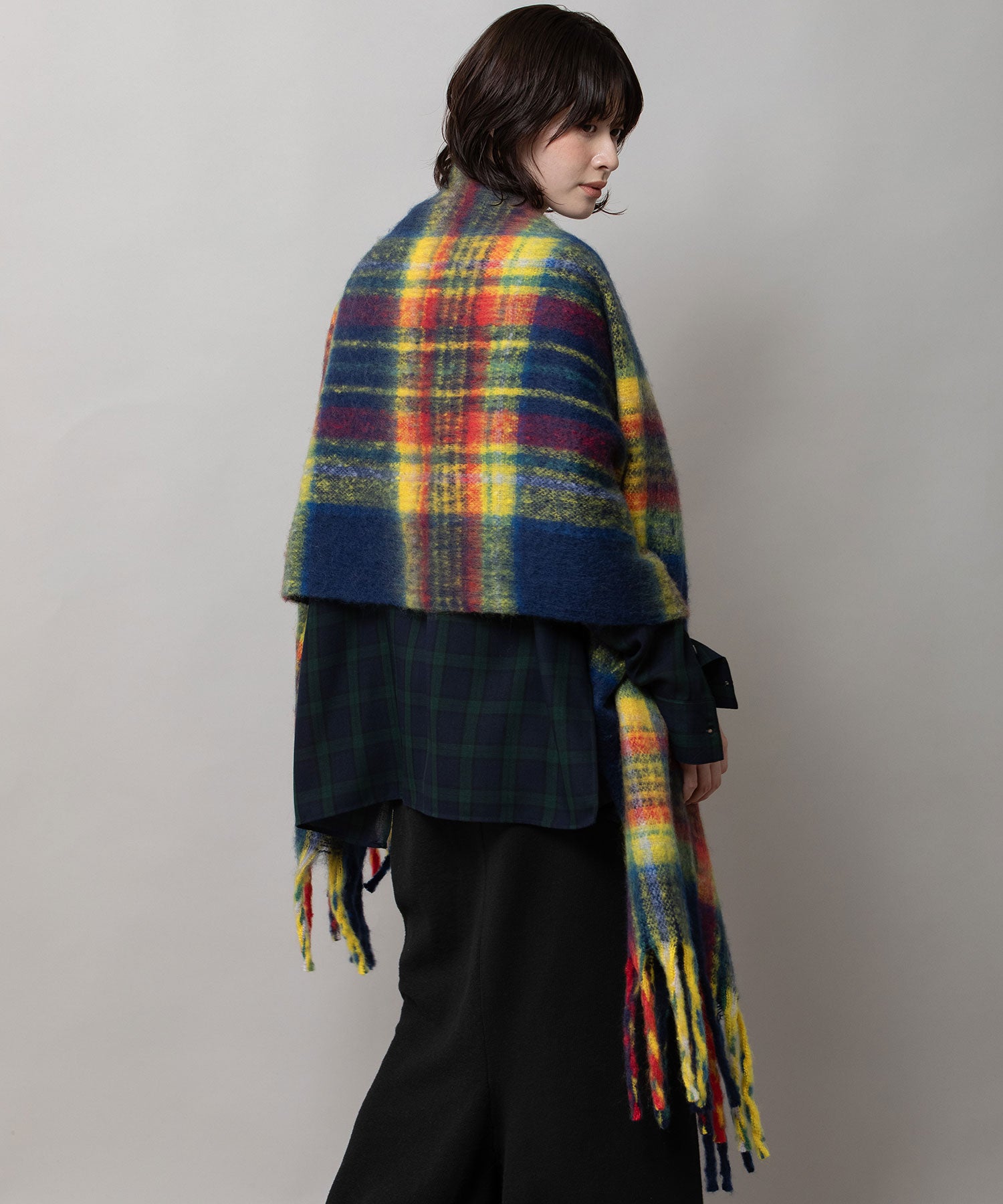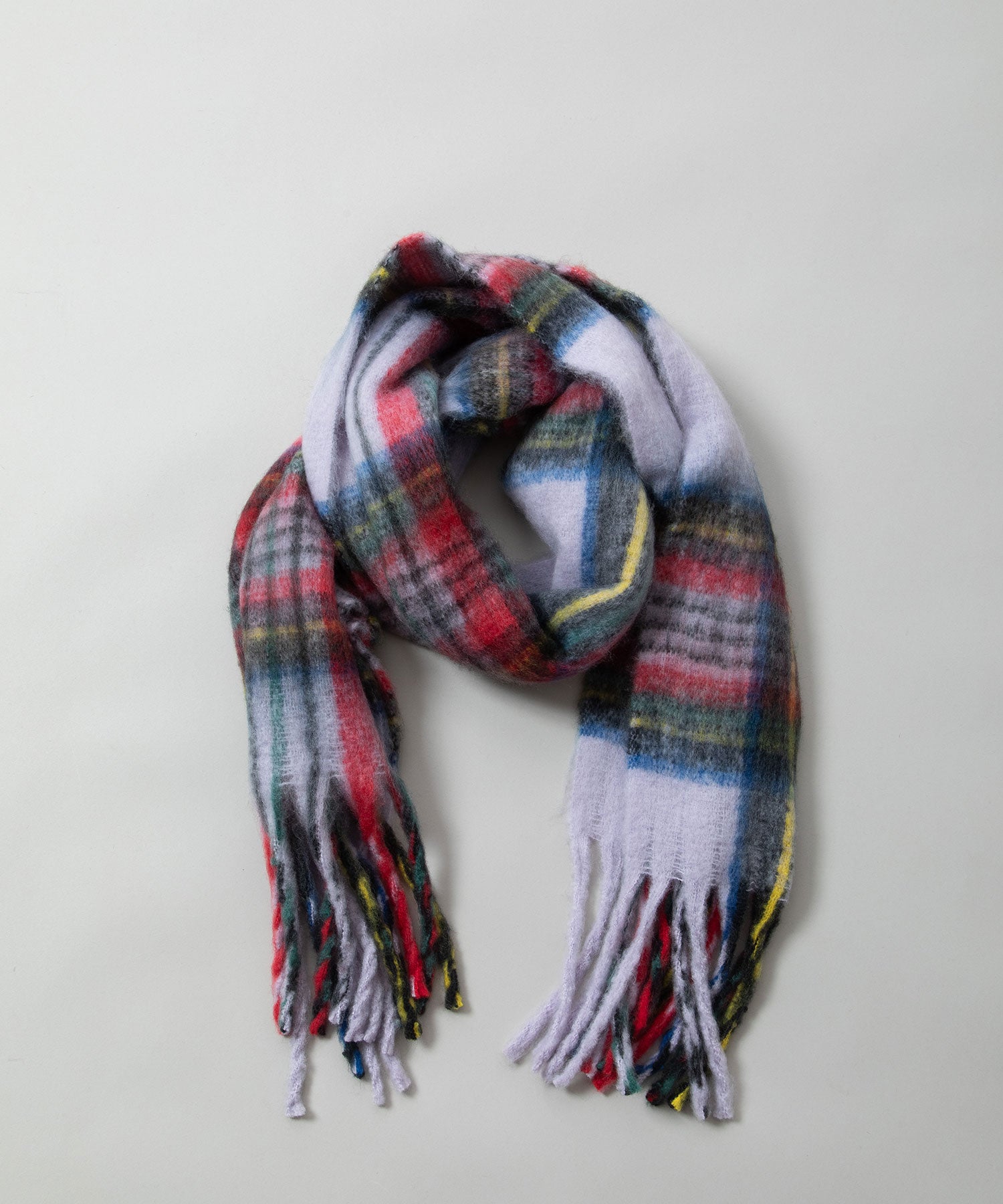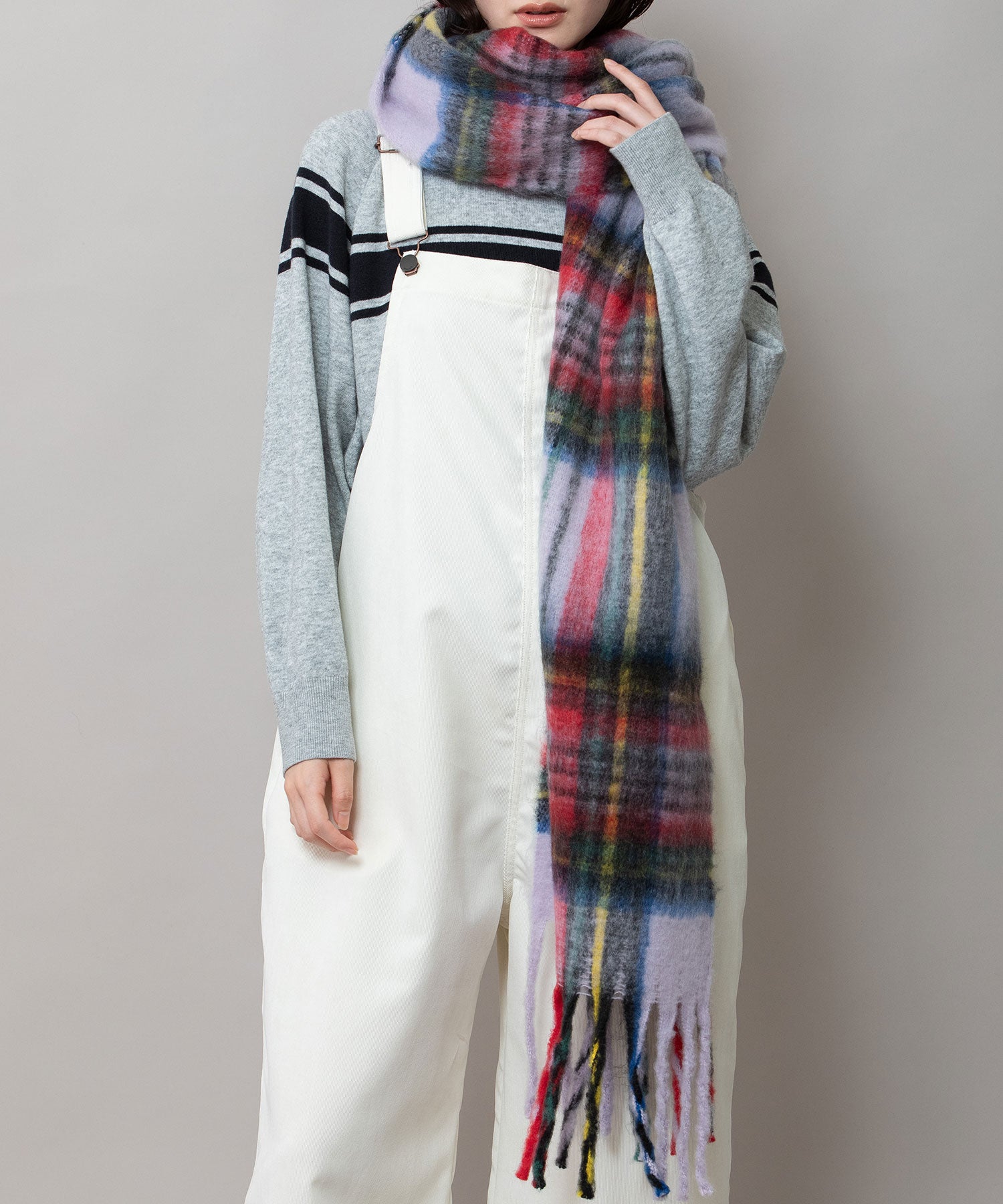 ◆カラフルなチェックのモヘアライクなマフラー◆