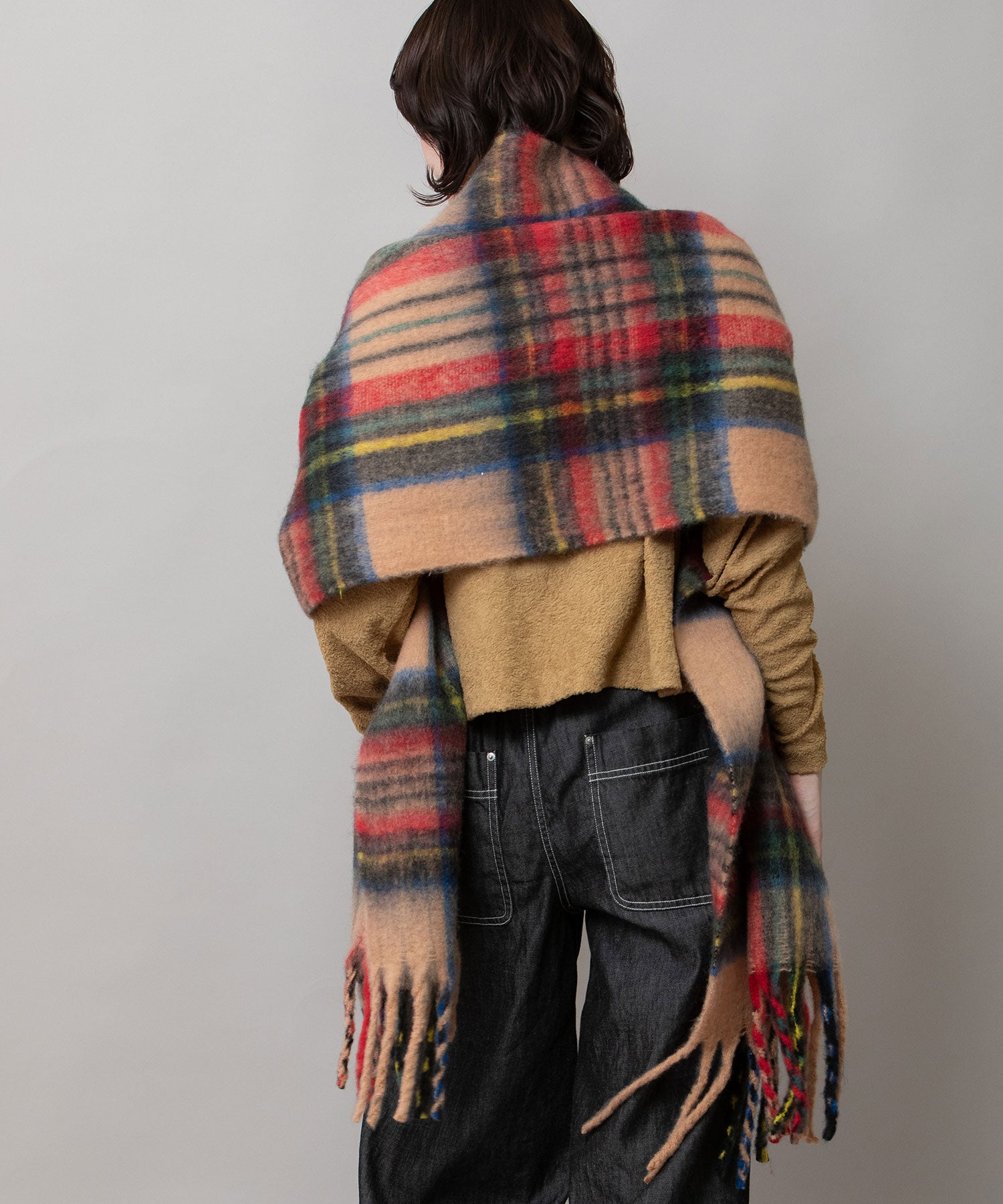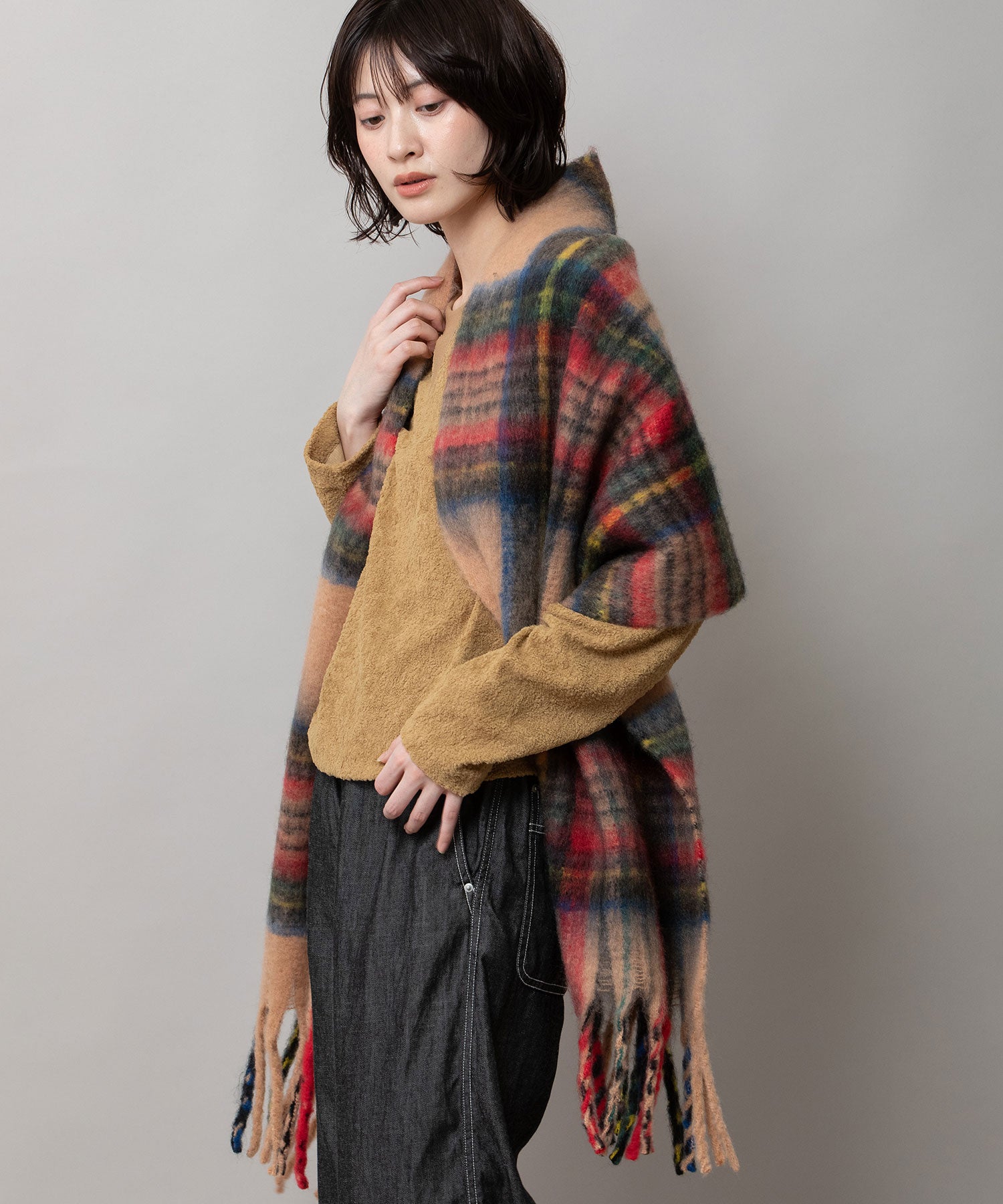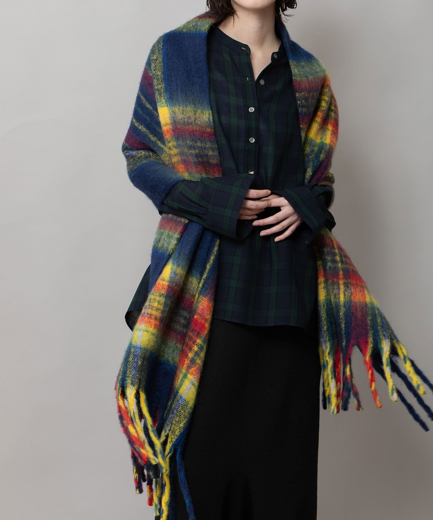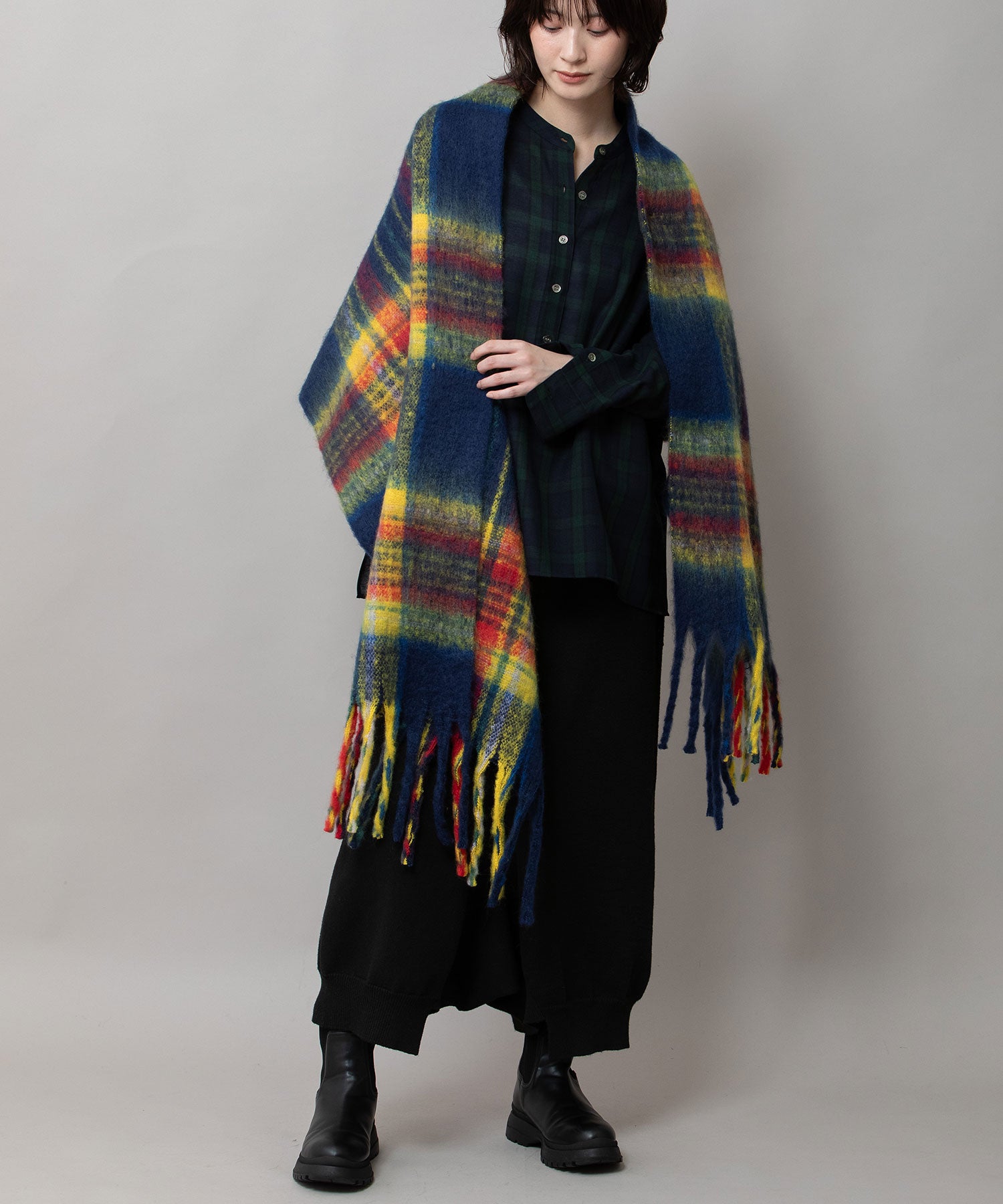 ◆カラフルなチェックのモヘアライクなマフラー◆