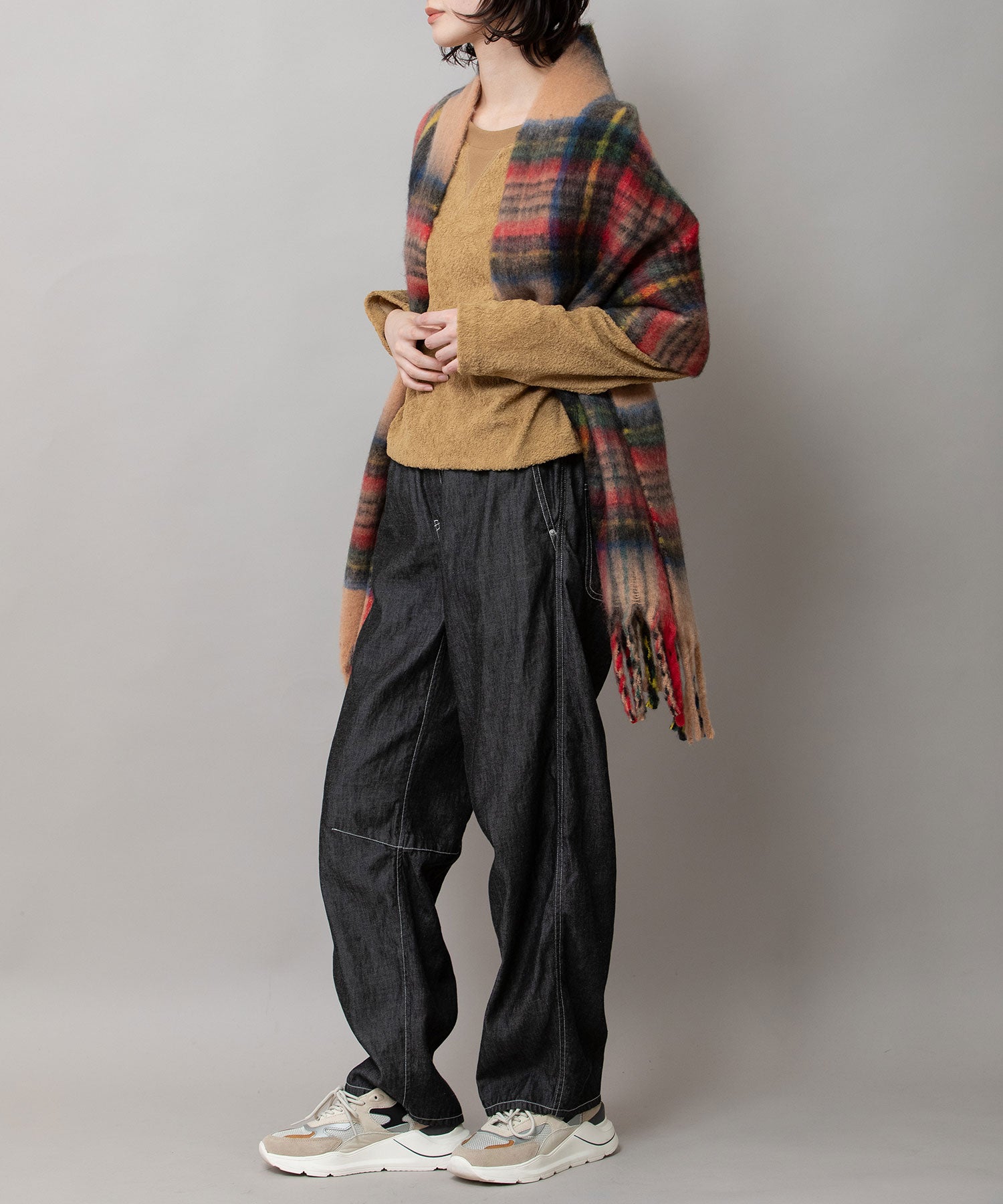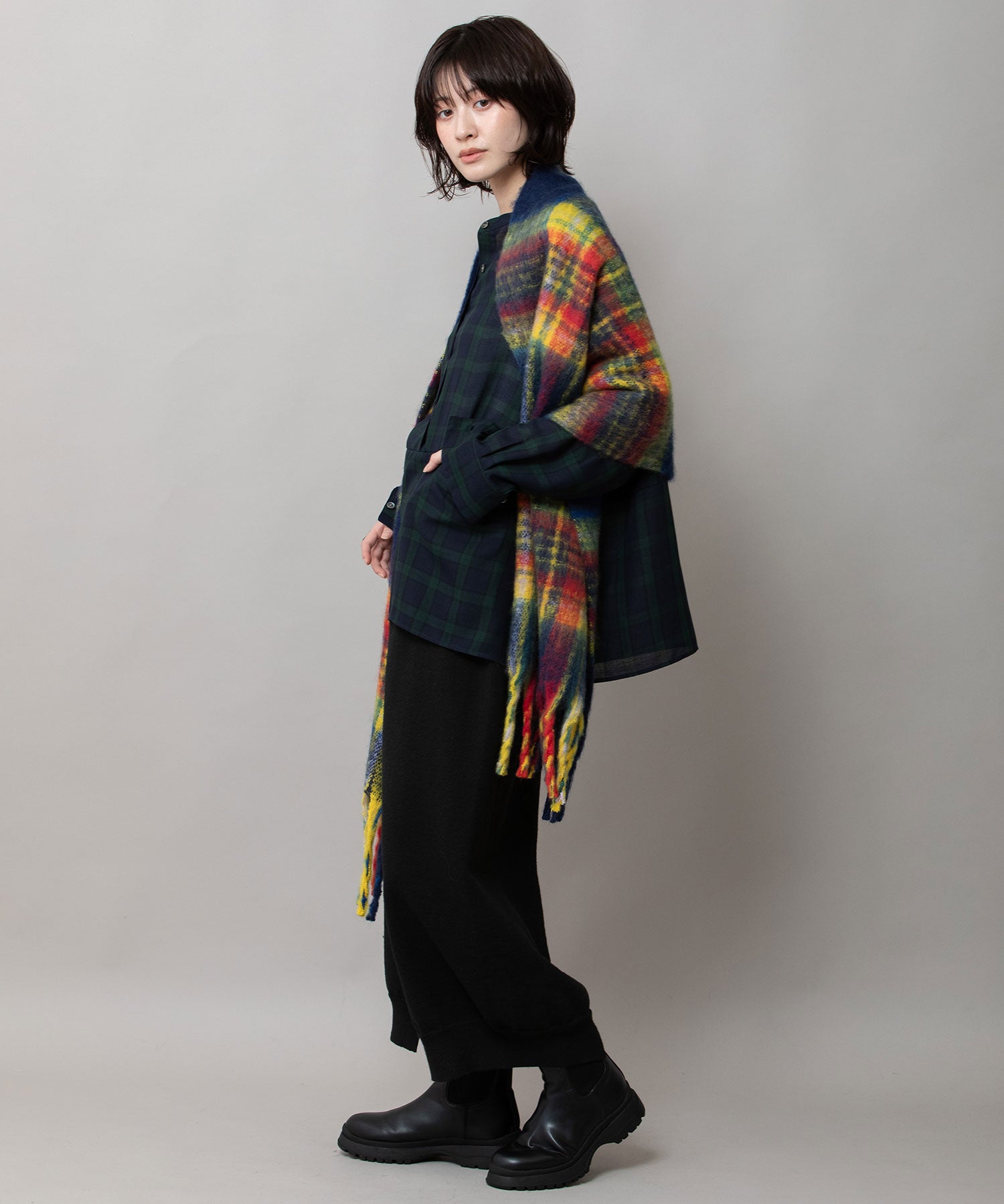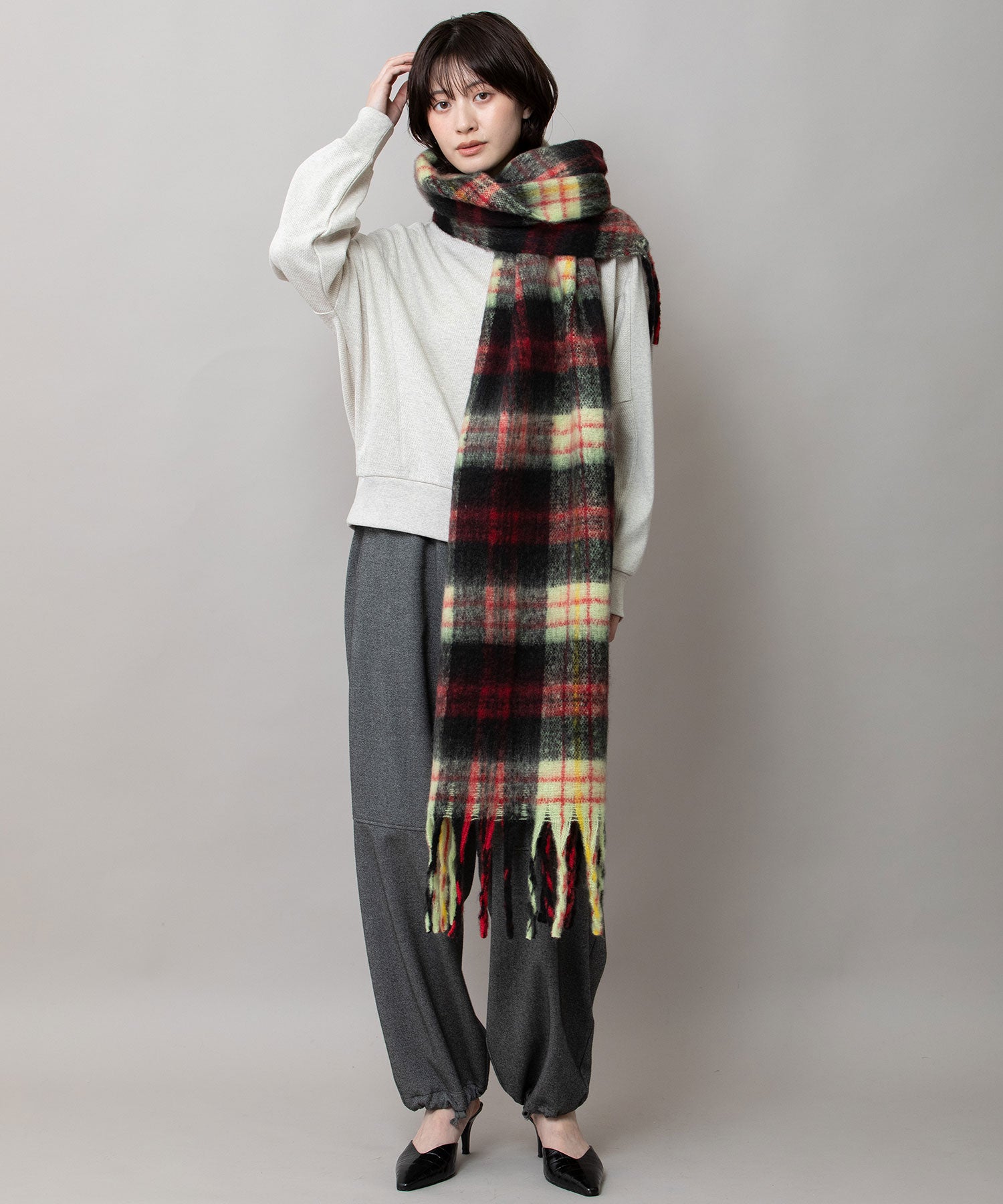 ふんわりしたタッチと印象的な配色のチェックでコーデに温かみをプラスしてくれます。