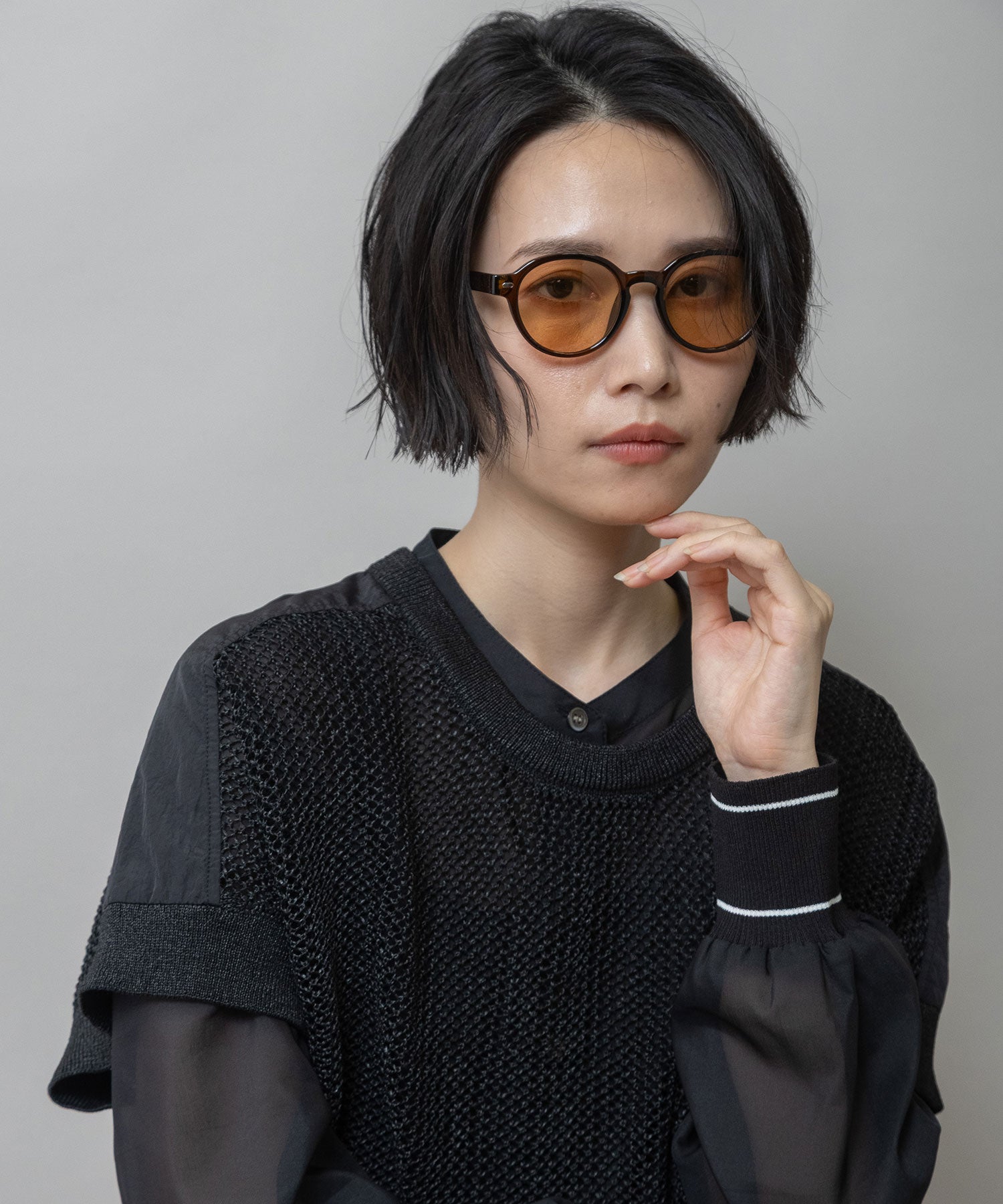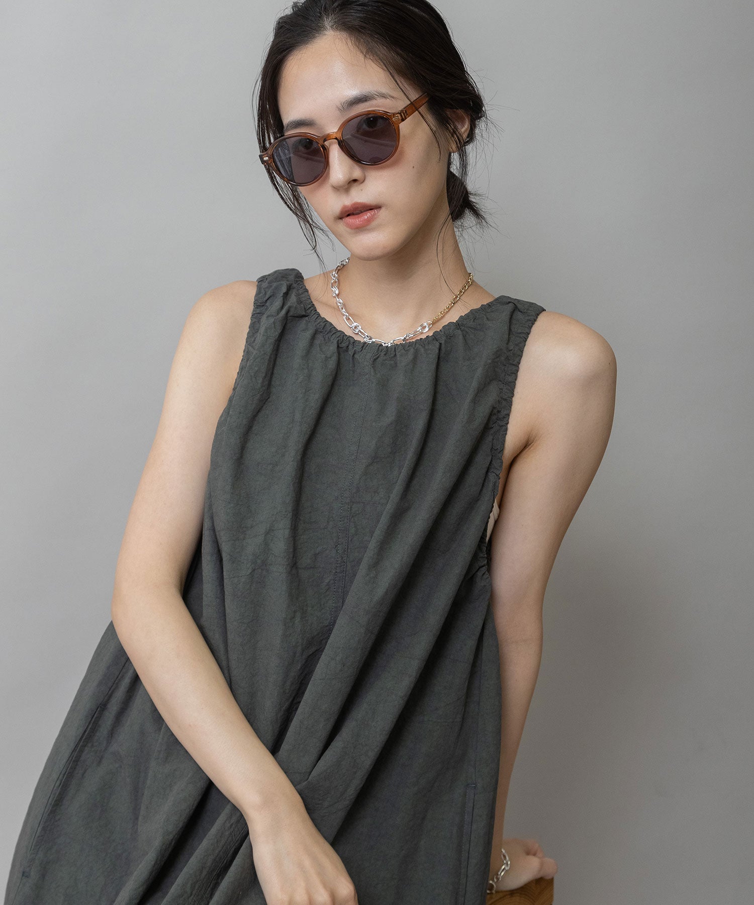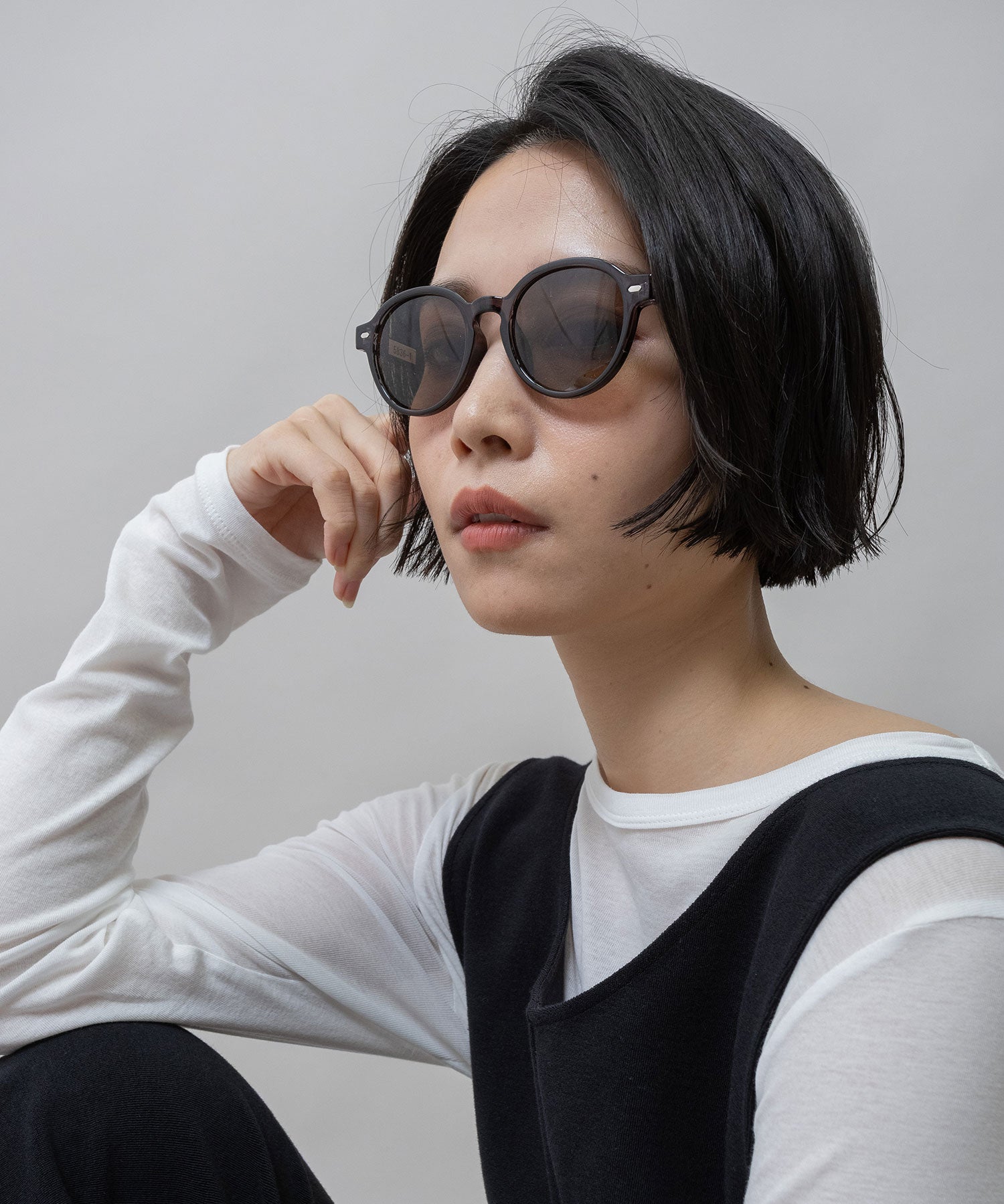 ■ダークグレー:マットなダークグレーフレームにダークレンズを合わせた、シャープでモード感のあるカラー
