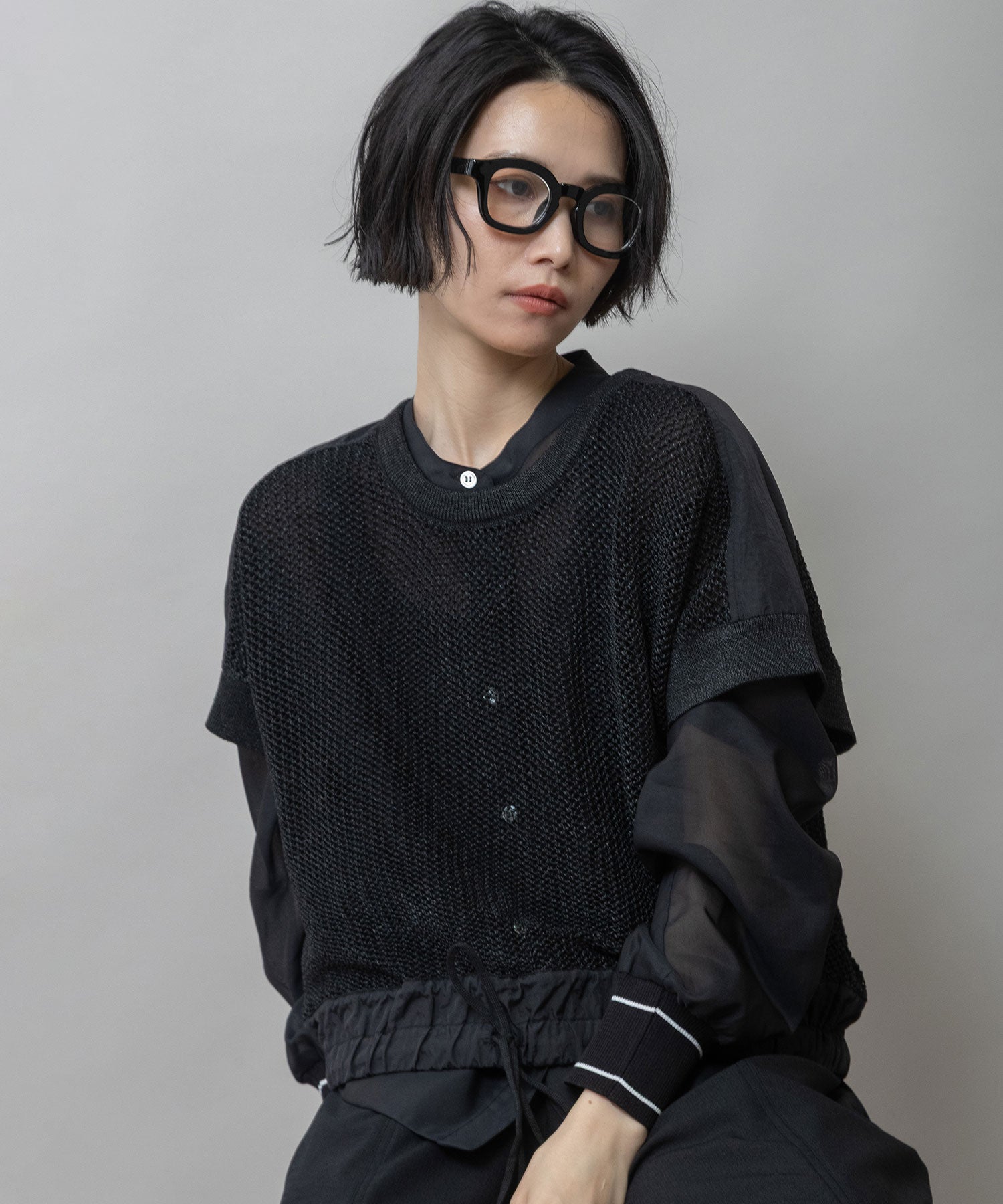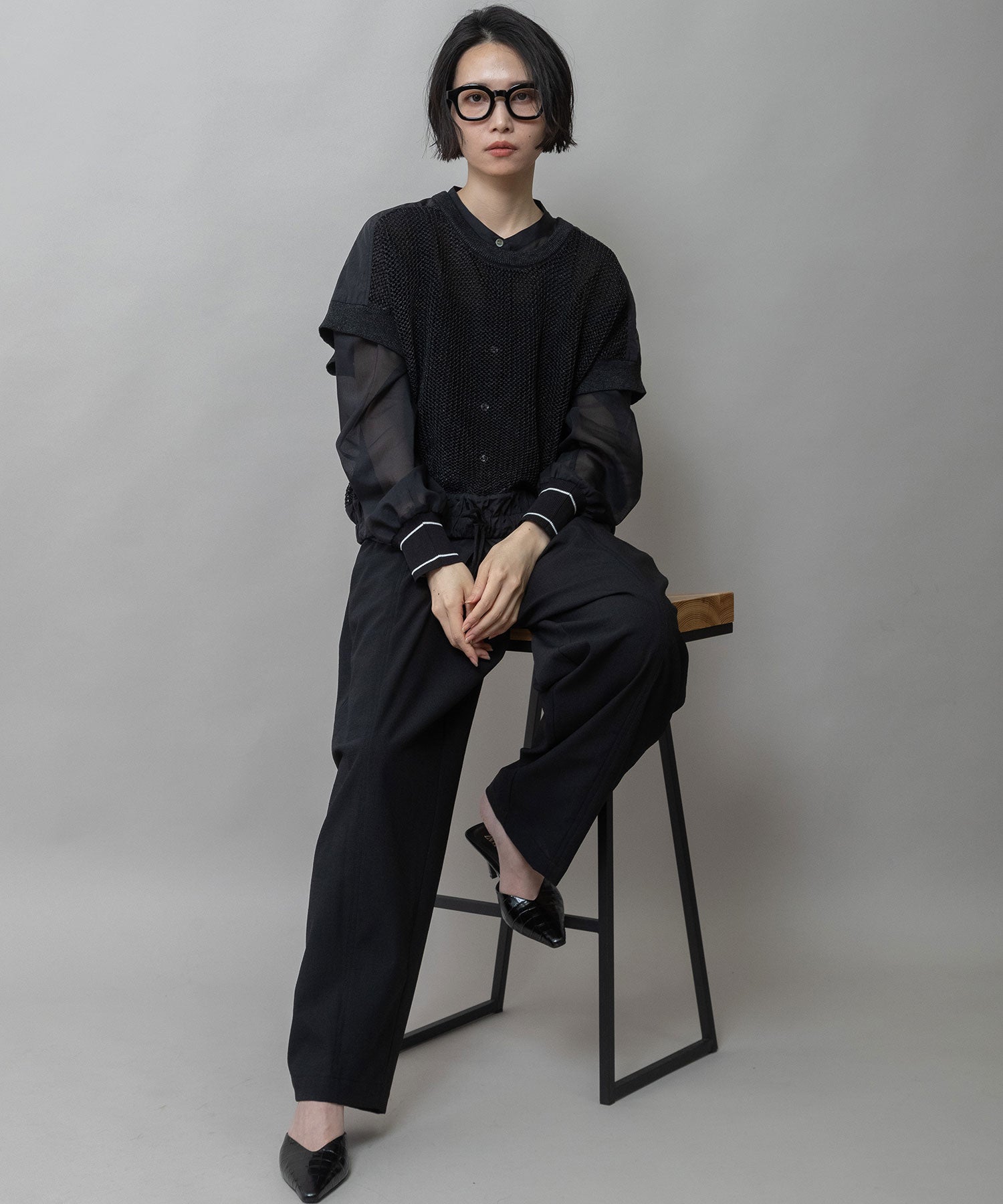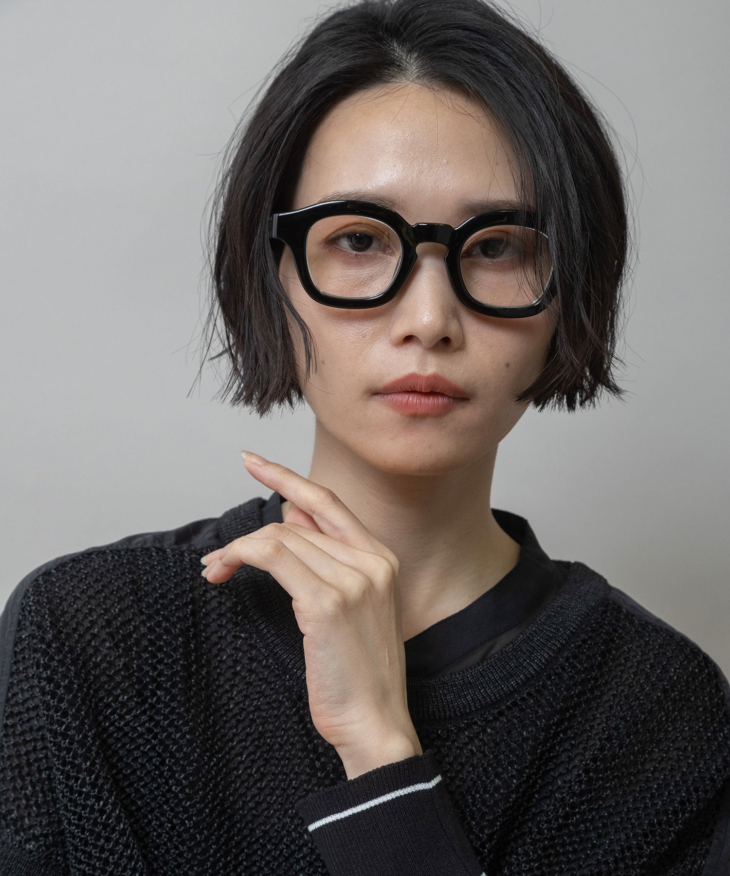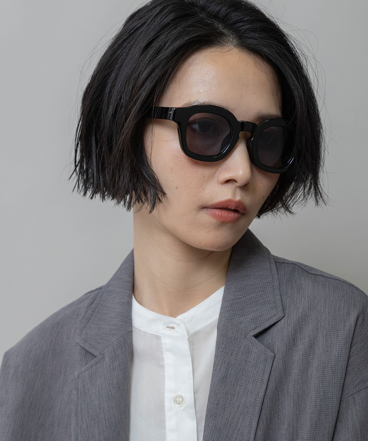 ■ブラック:ブラックフレームにダークレンズを合わせた、モード感とシャープさが際立つ定番カラー