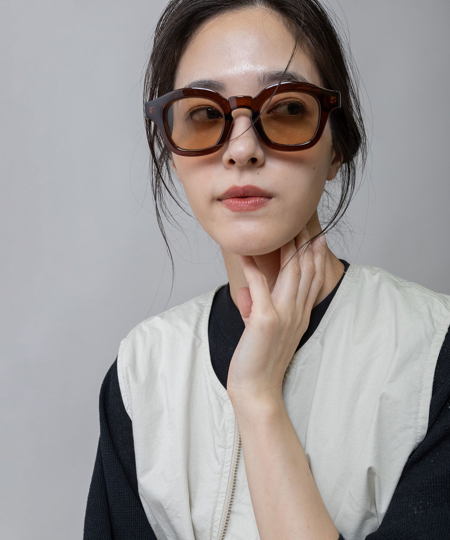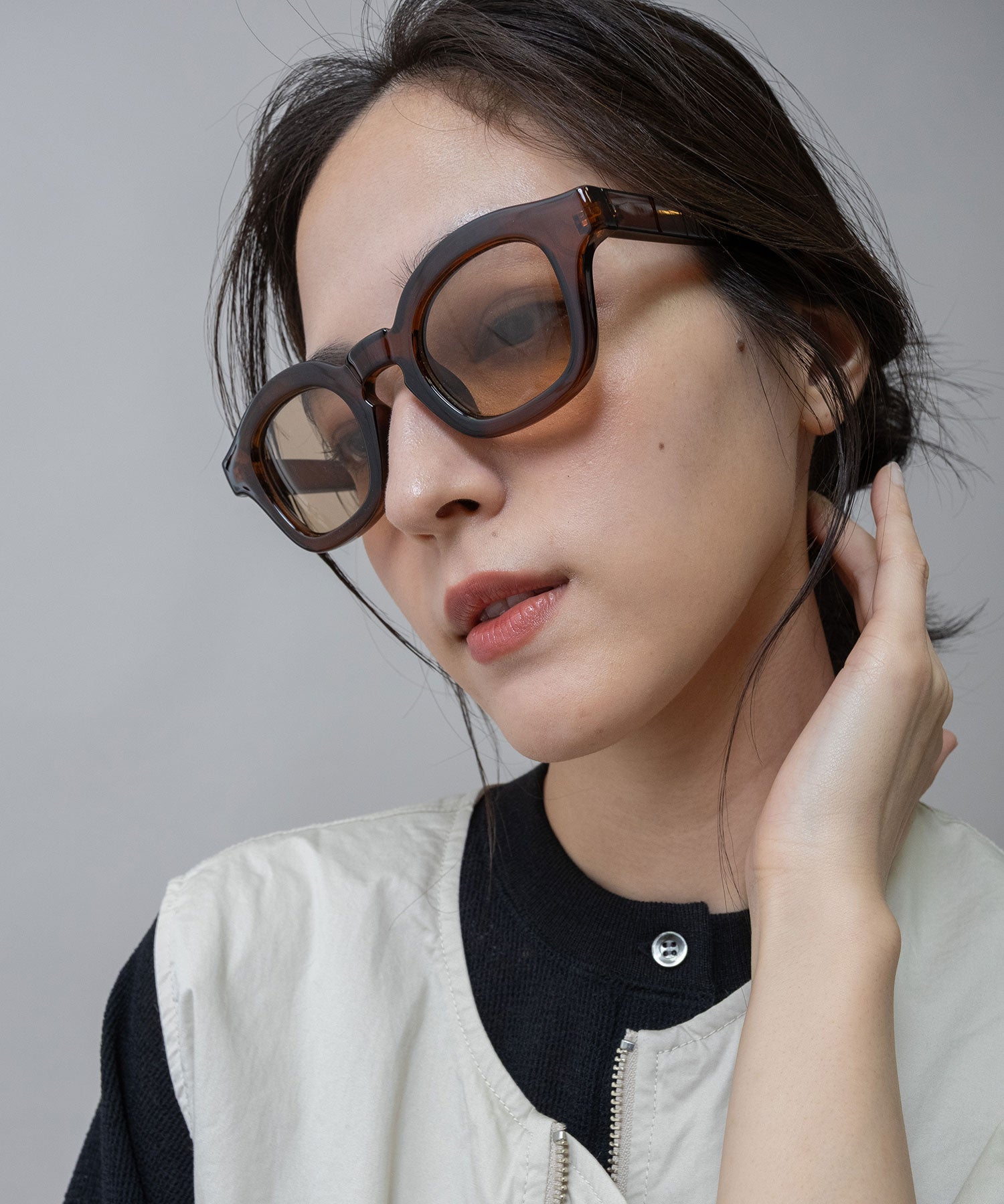 ■ライトグレー:ライトグレーフレームに同系色のレンズを合わせた、ニュートラルで柔らかなカラー