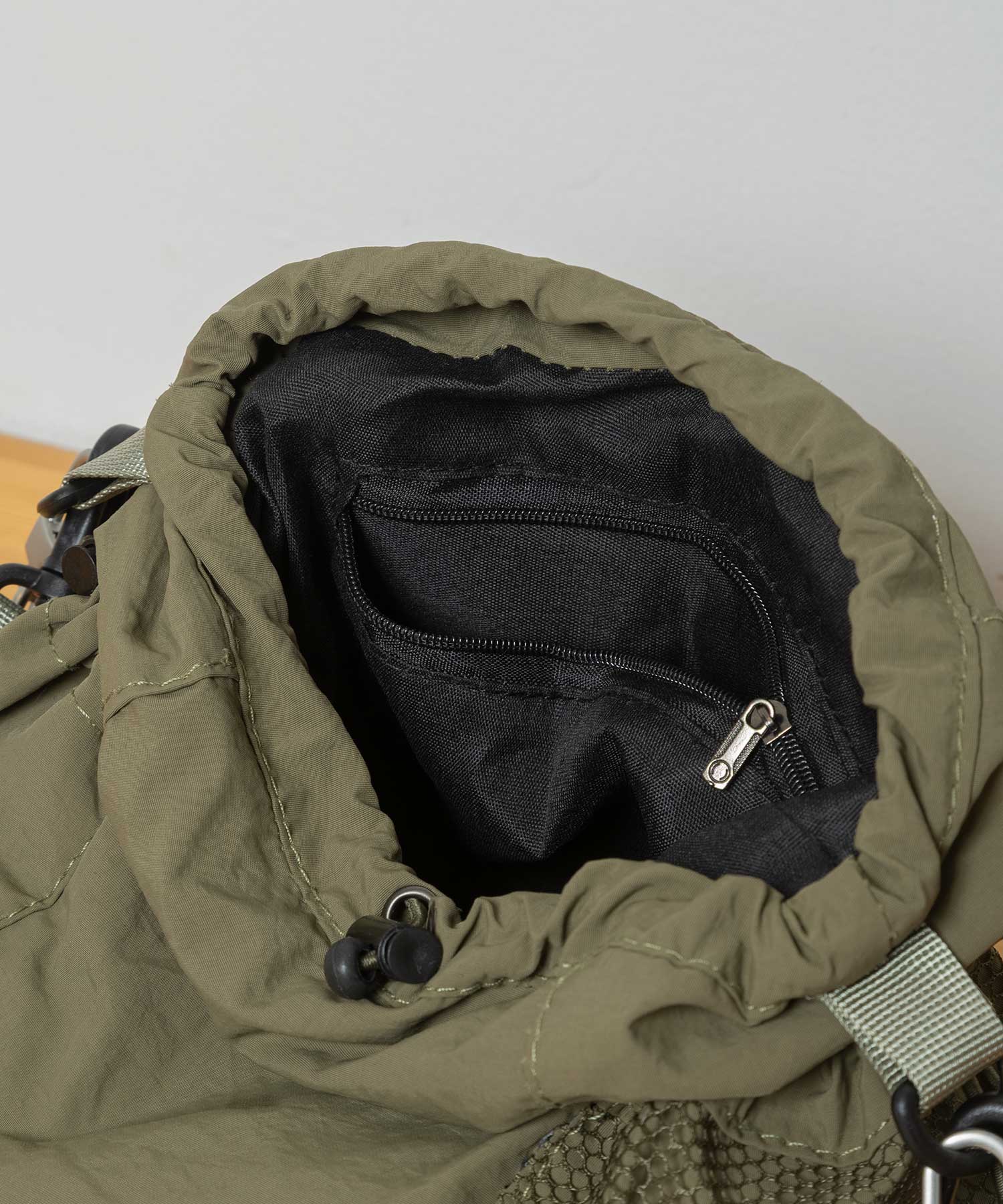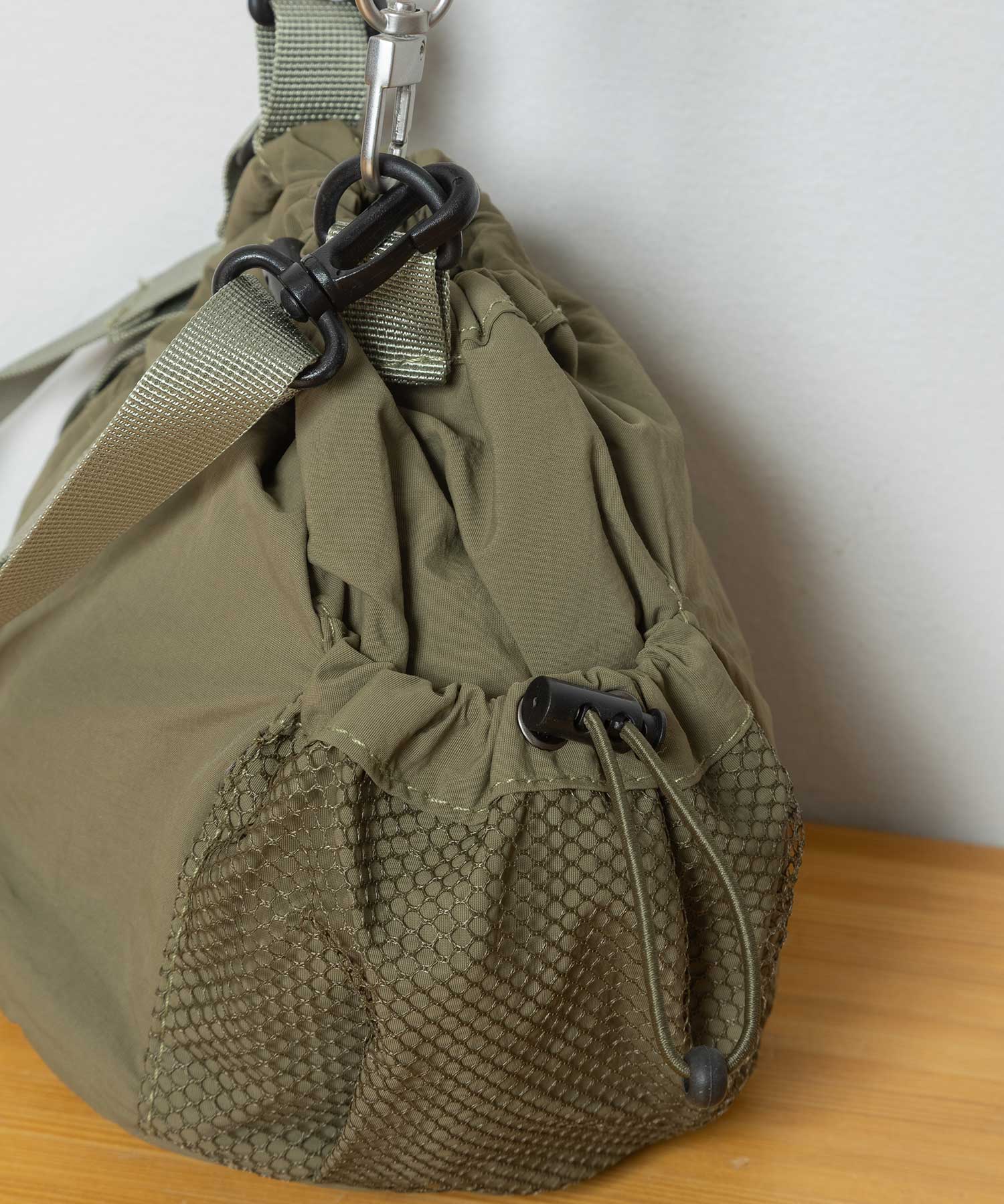 小さめながらも丸型の広いマチ、両サイドにポケット付きで荷物がしまいやすくキャッチーなデザイン。