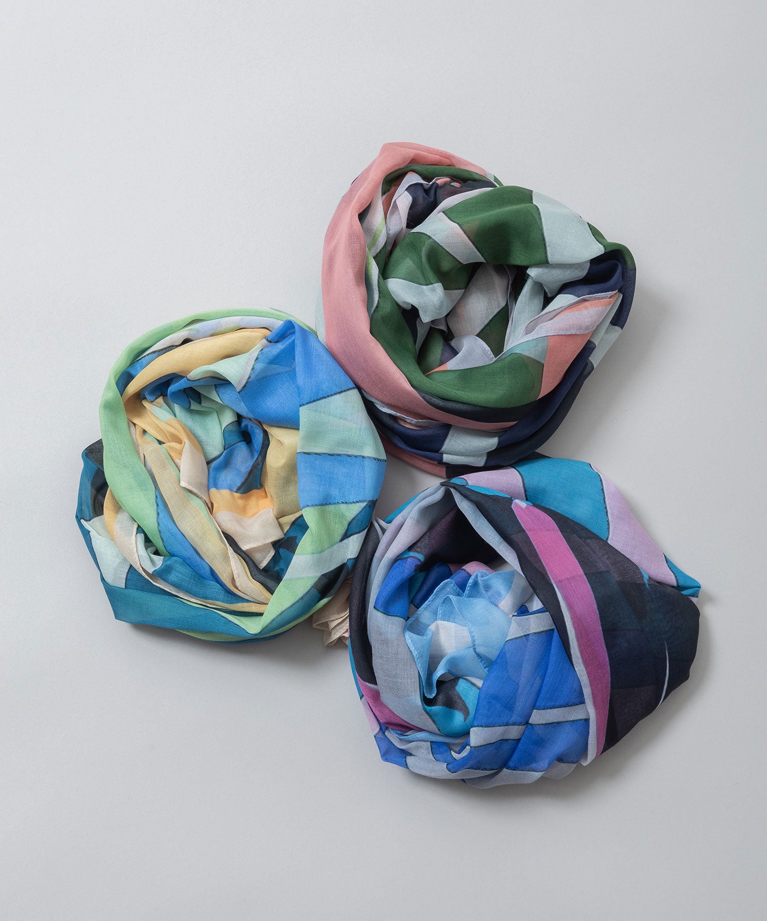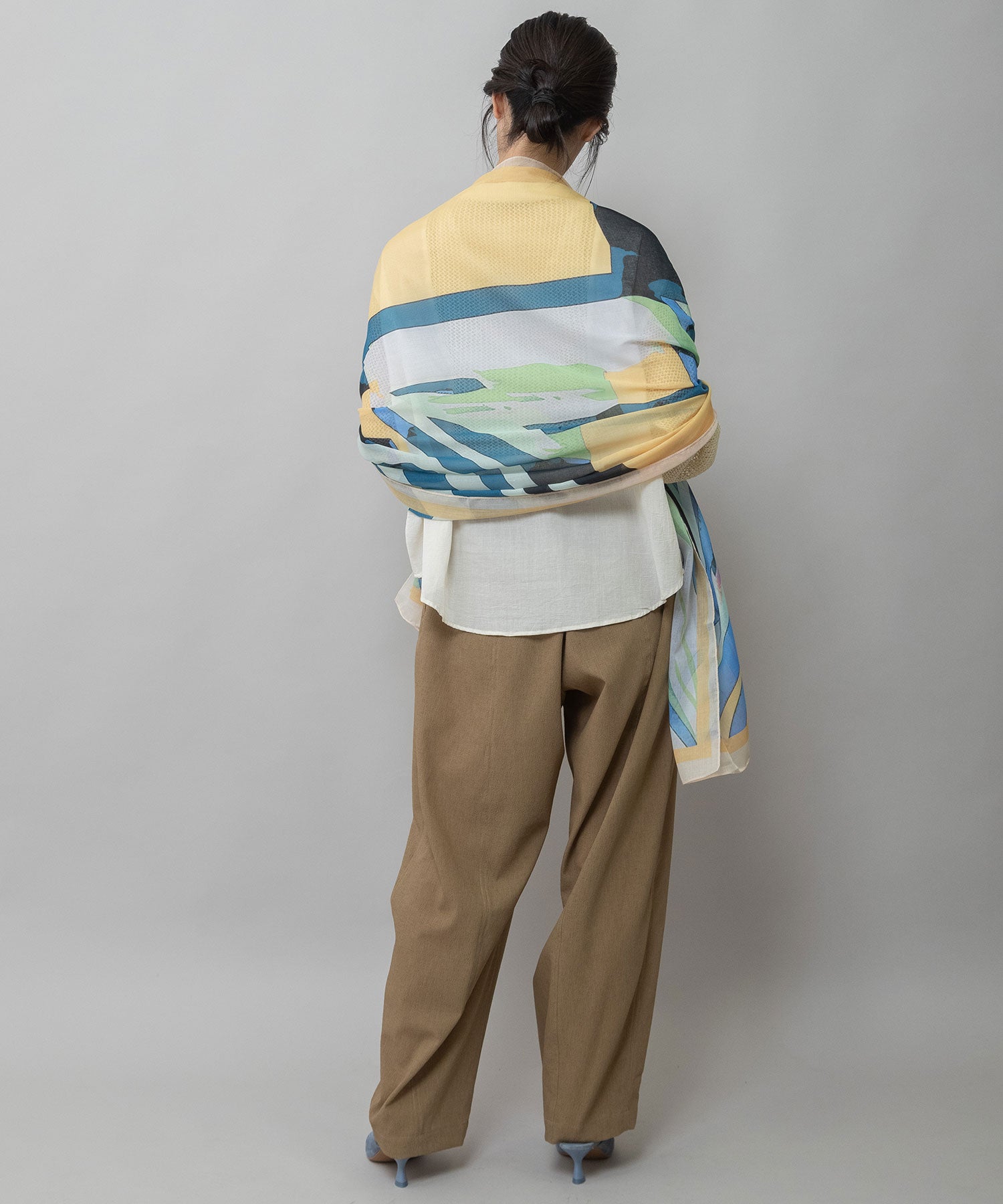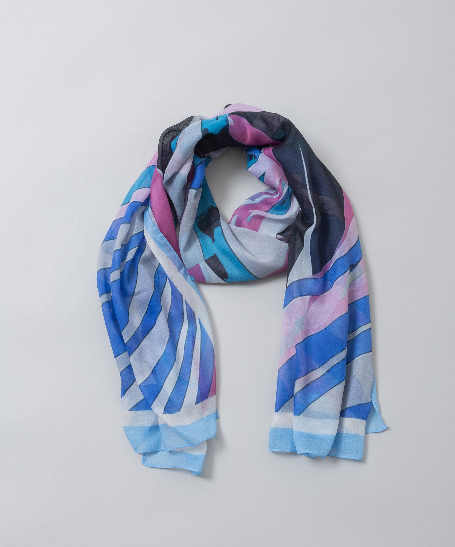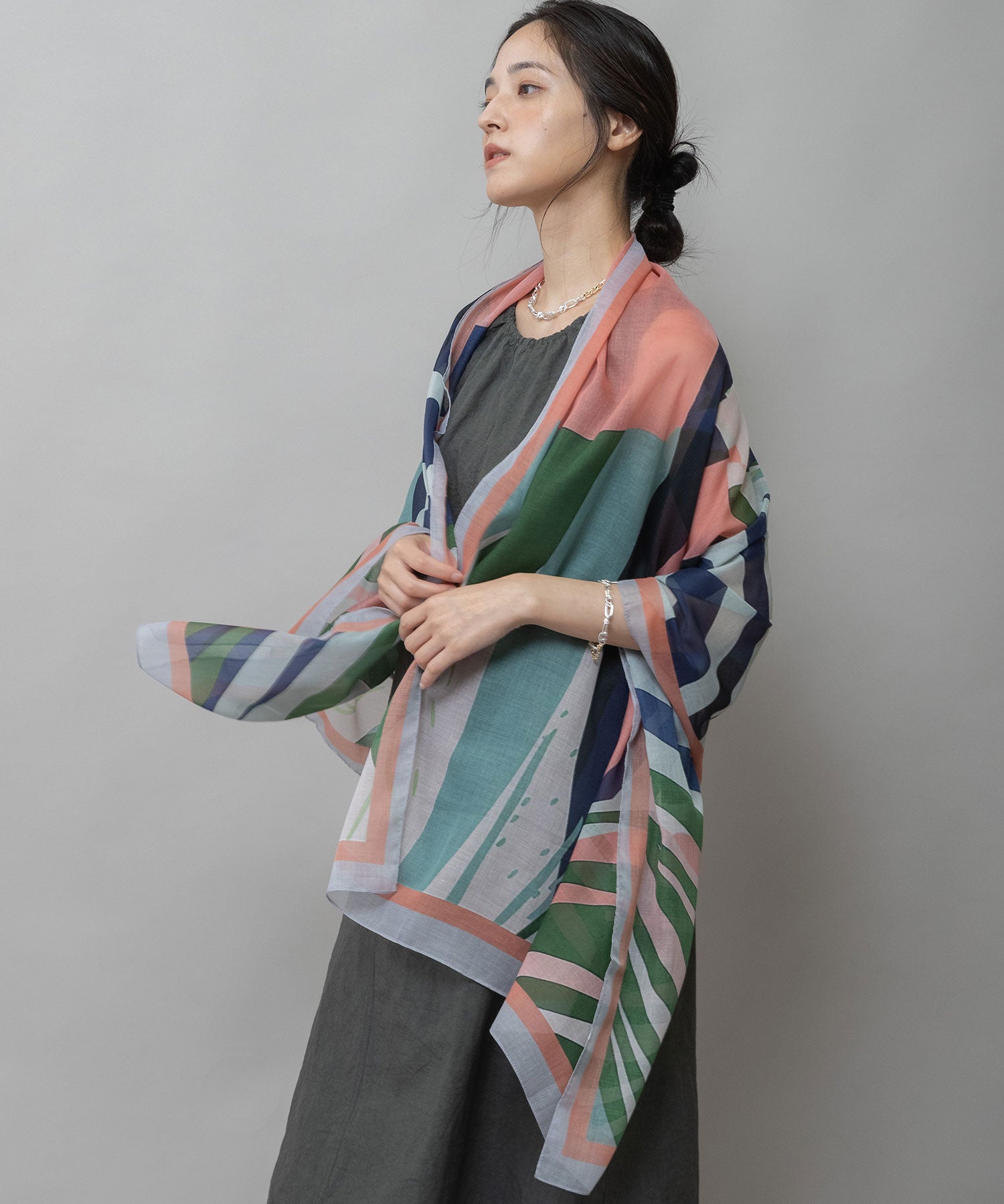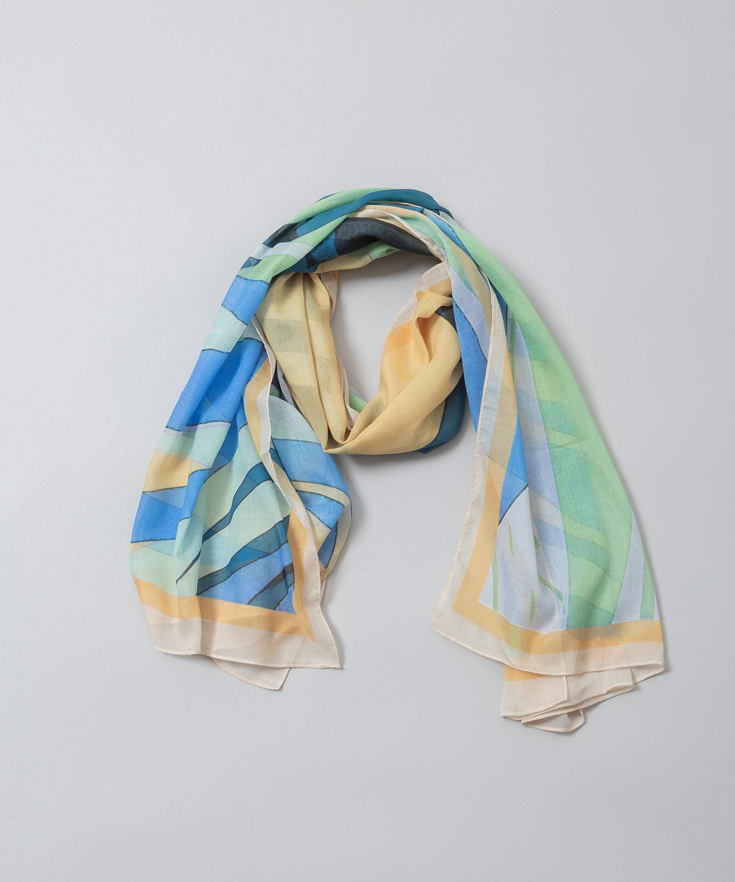 植物の葉を思わせる抽象的なボタニカル調プリントのストール。