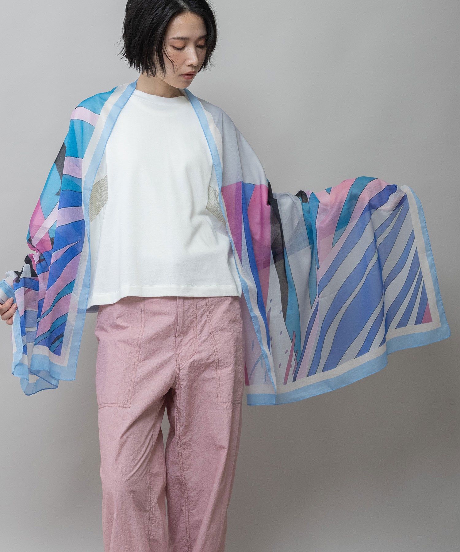 元気が出るカラフルな配色で、夏の羽織がわり&コーディネートのアクセントにぴったりです。