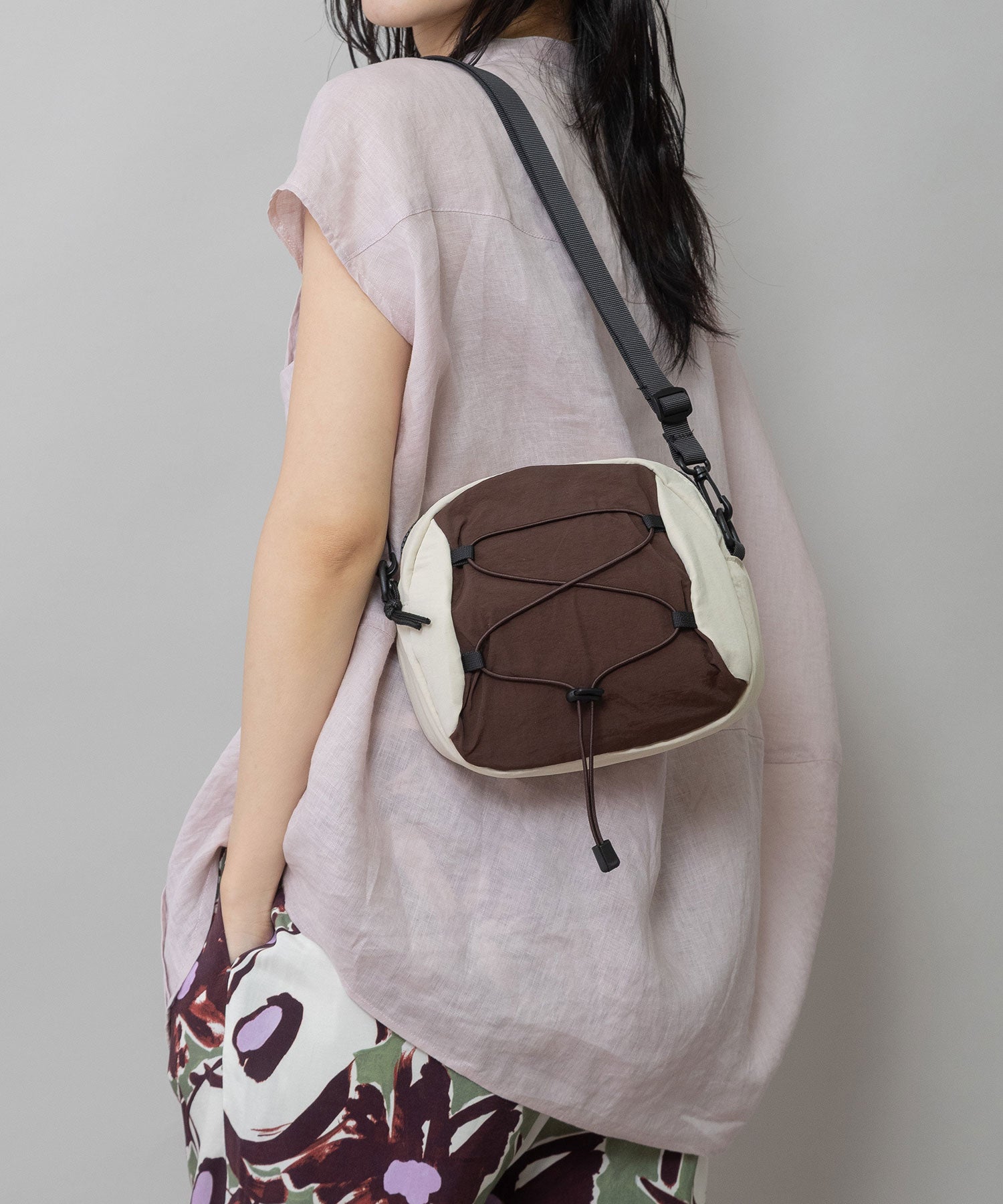 ◆マットな質感と編み上げ風コードがポイント。軽くて持ちやすいミニショルダーバッグ◆