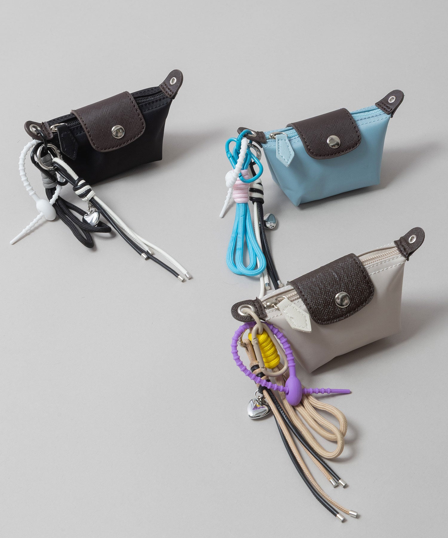 それぞれのチャームやポーチは取り外し可能で、自由に組み合わせてアレンジできるのが魅力。