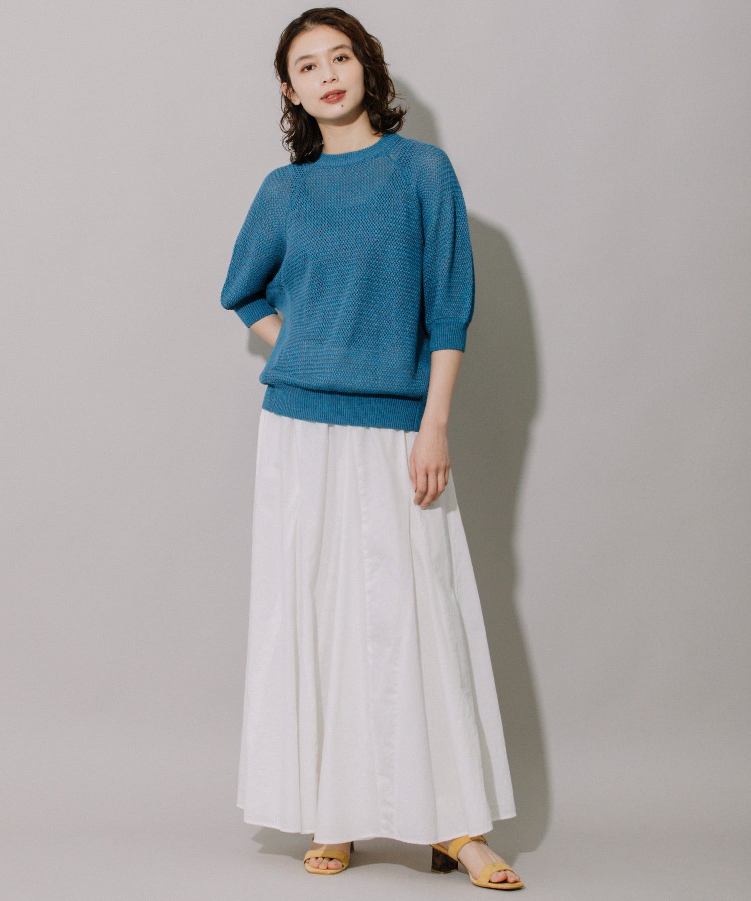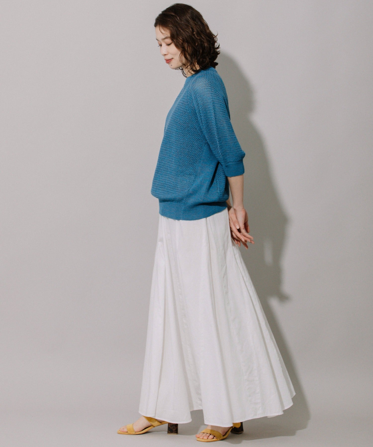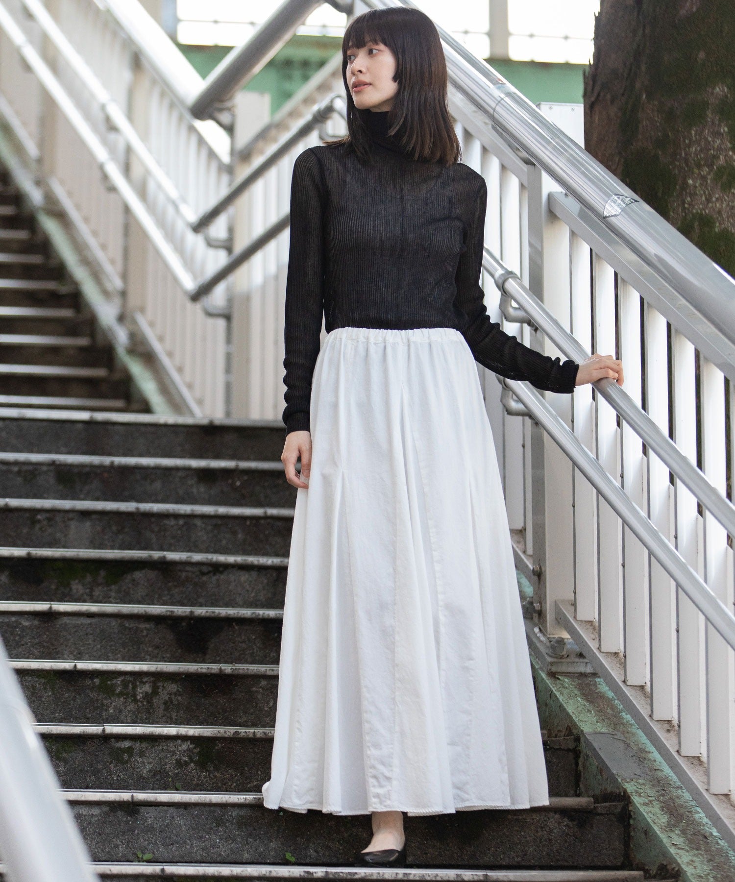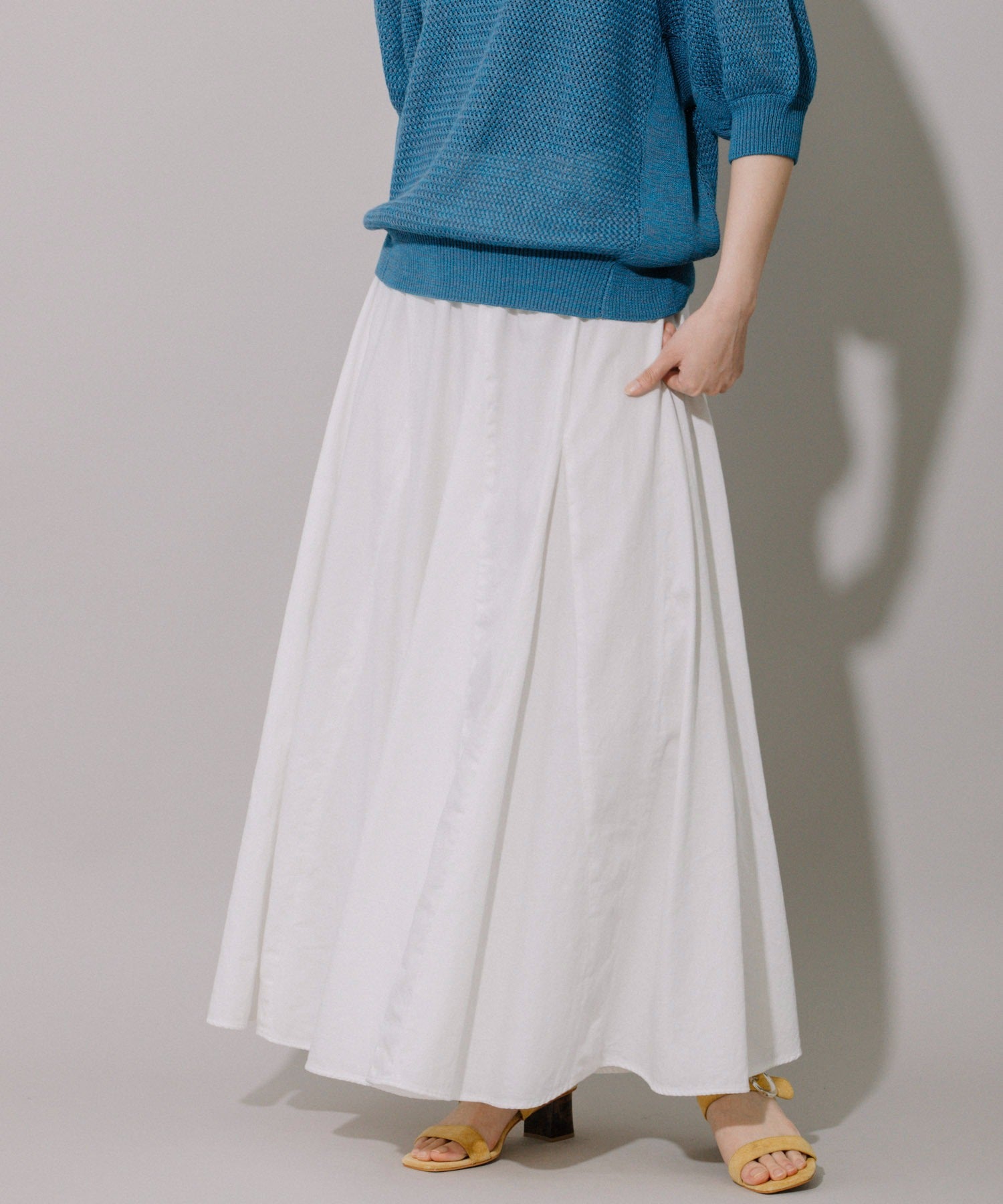 ◆軽さとドレープ性を併せ持った8枚接ぎのシーズレスで使えるライトオンスデニムスカート◆