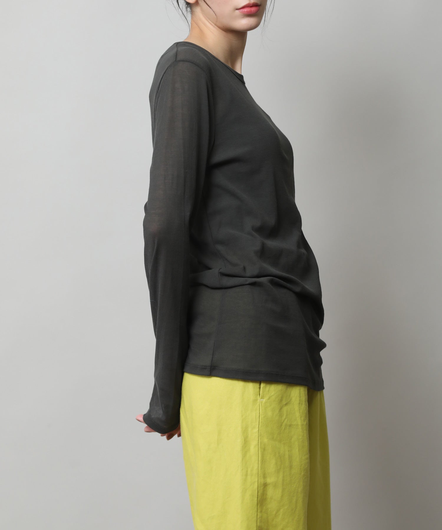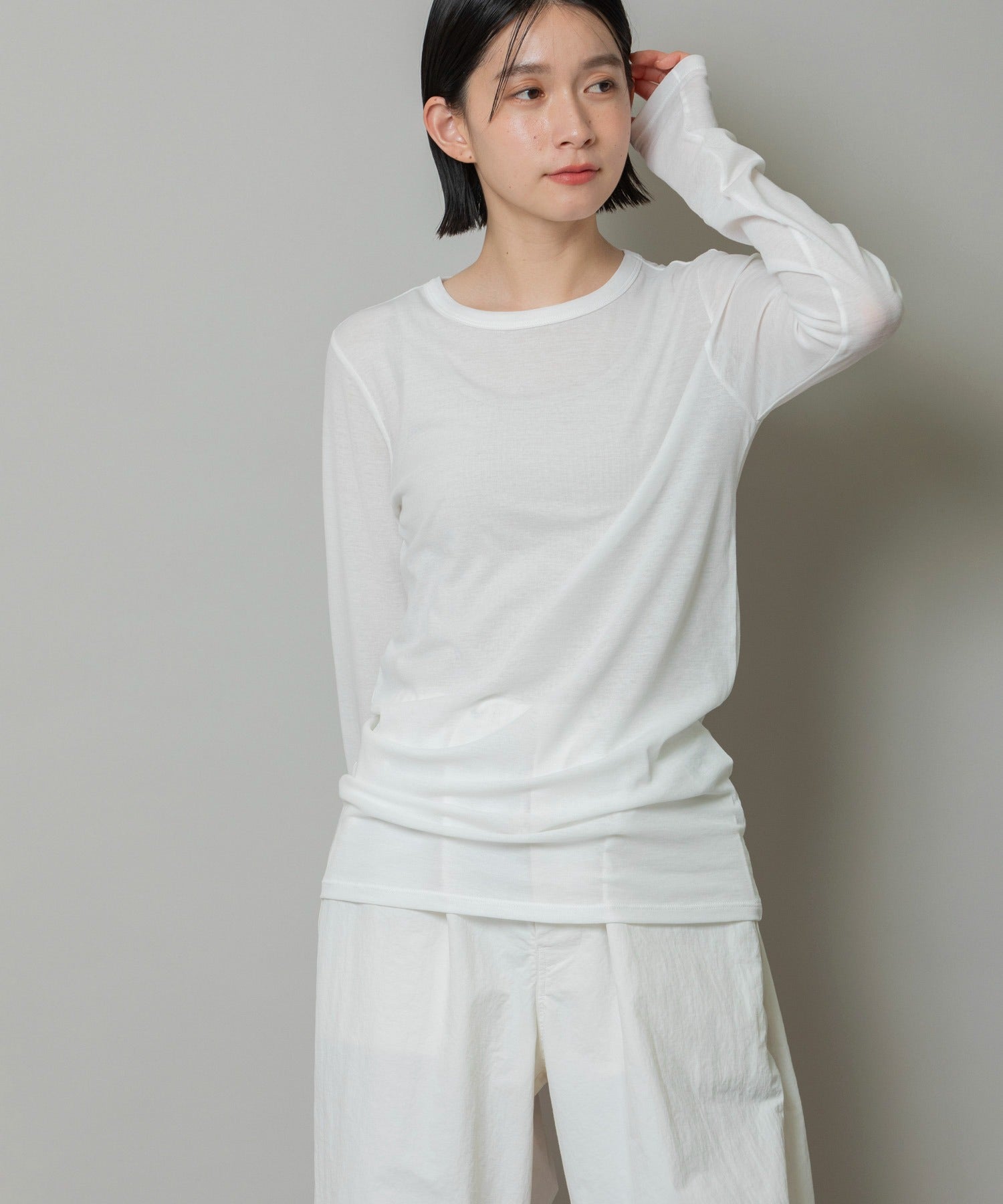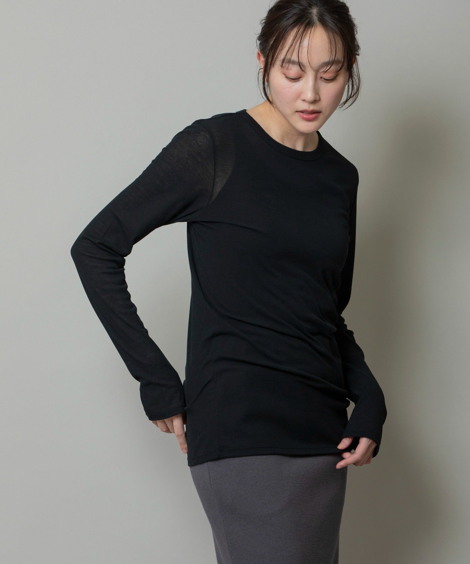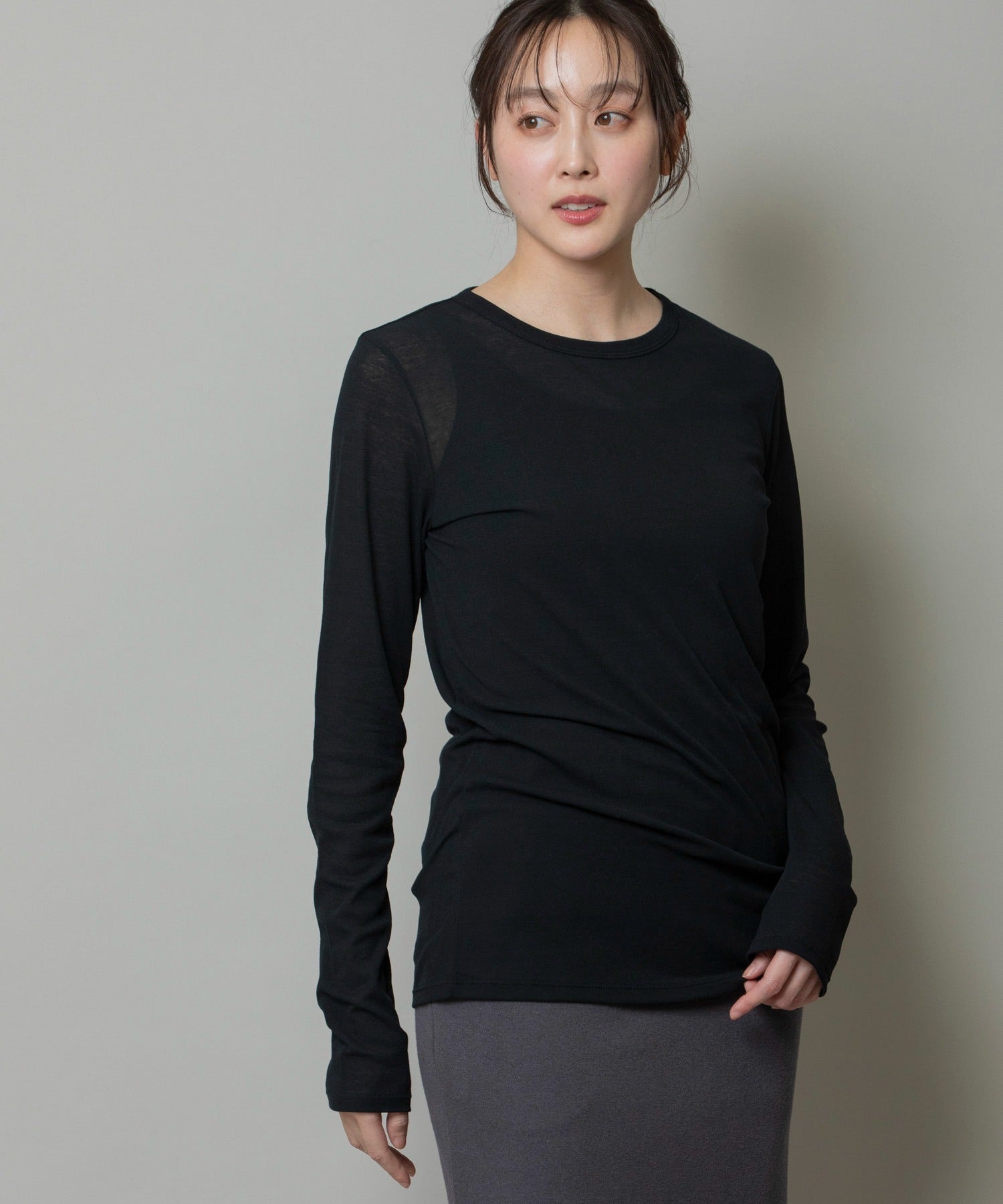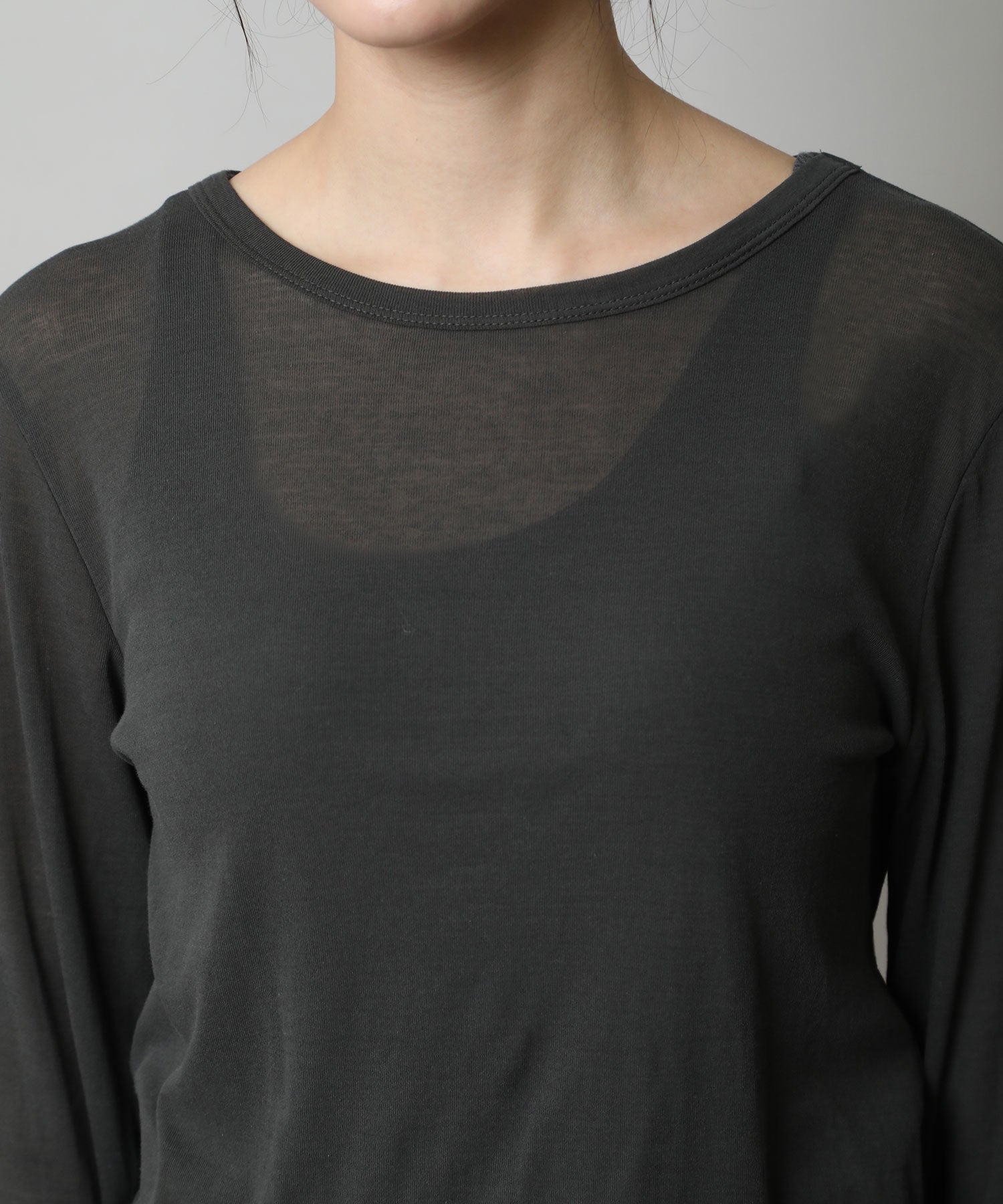 ◆薄手でシャリ感もあるシアーカットソーでケアもしやすくインナーとしてもレイヤードスタイルにも一枚あると便利なトップス◆