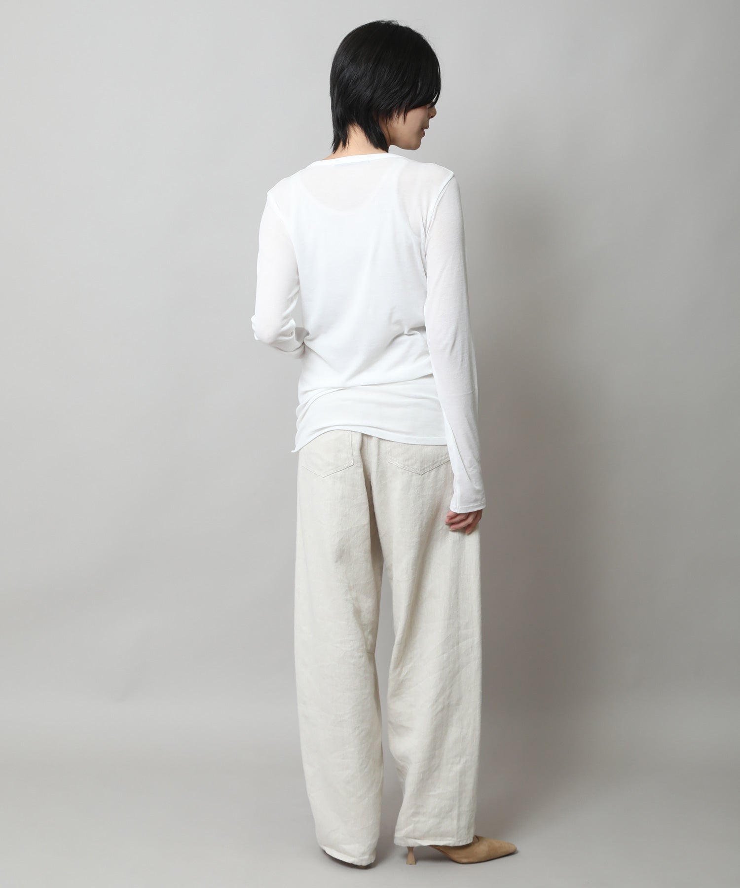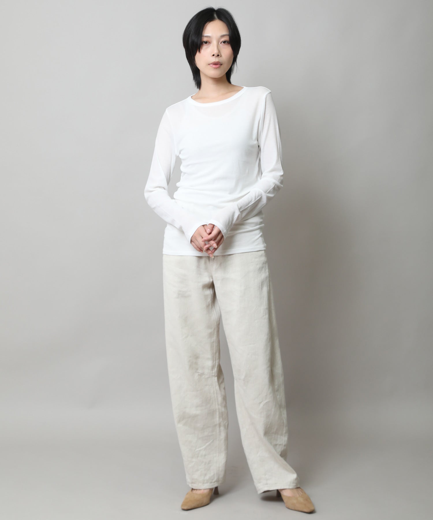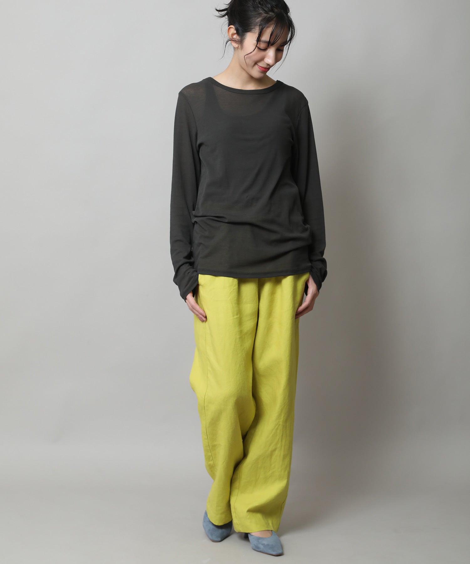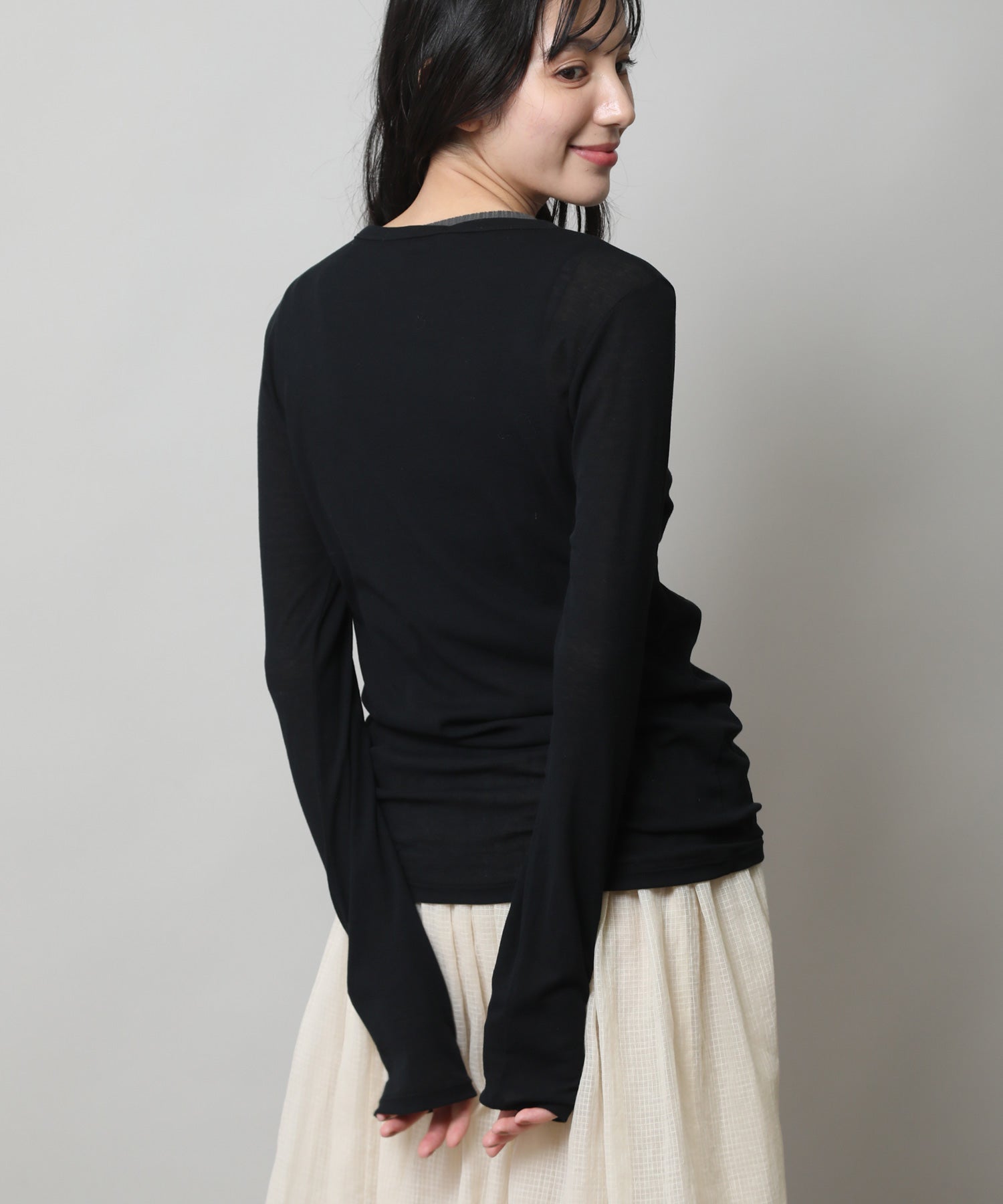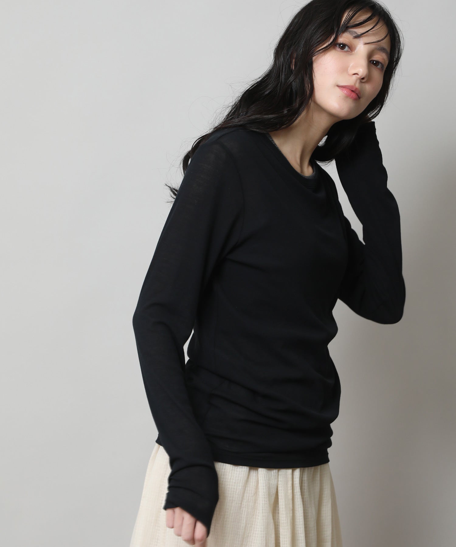 ◆薄手でシャリ感もあるシアーカットソーでケアもしやすくインナーとしてもレイヤードスタイルにも一枚あると便利なトップス◆