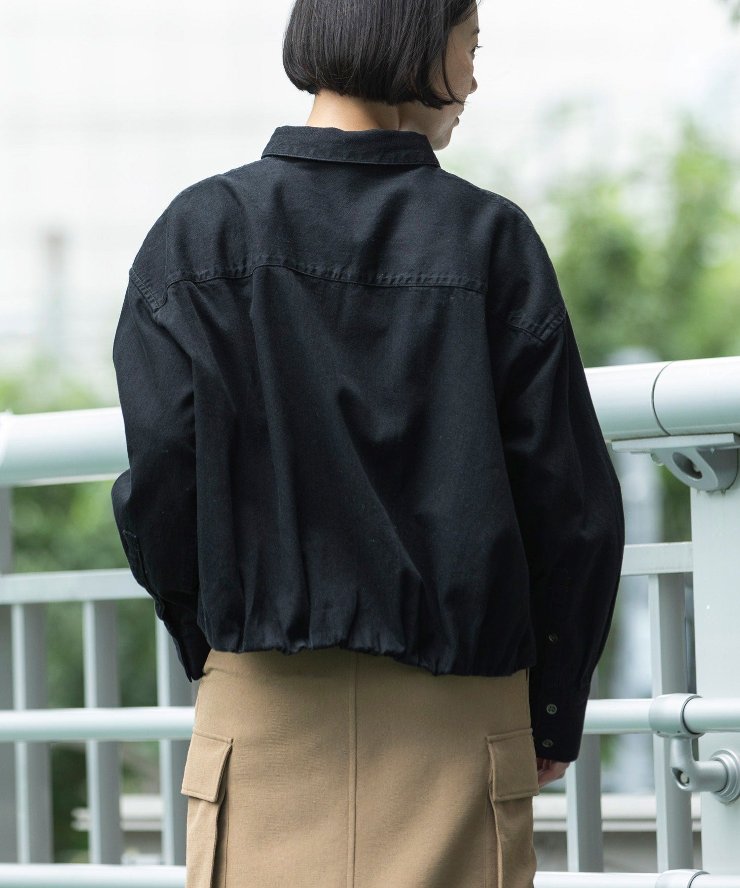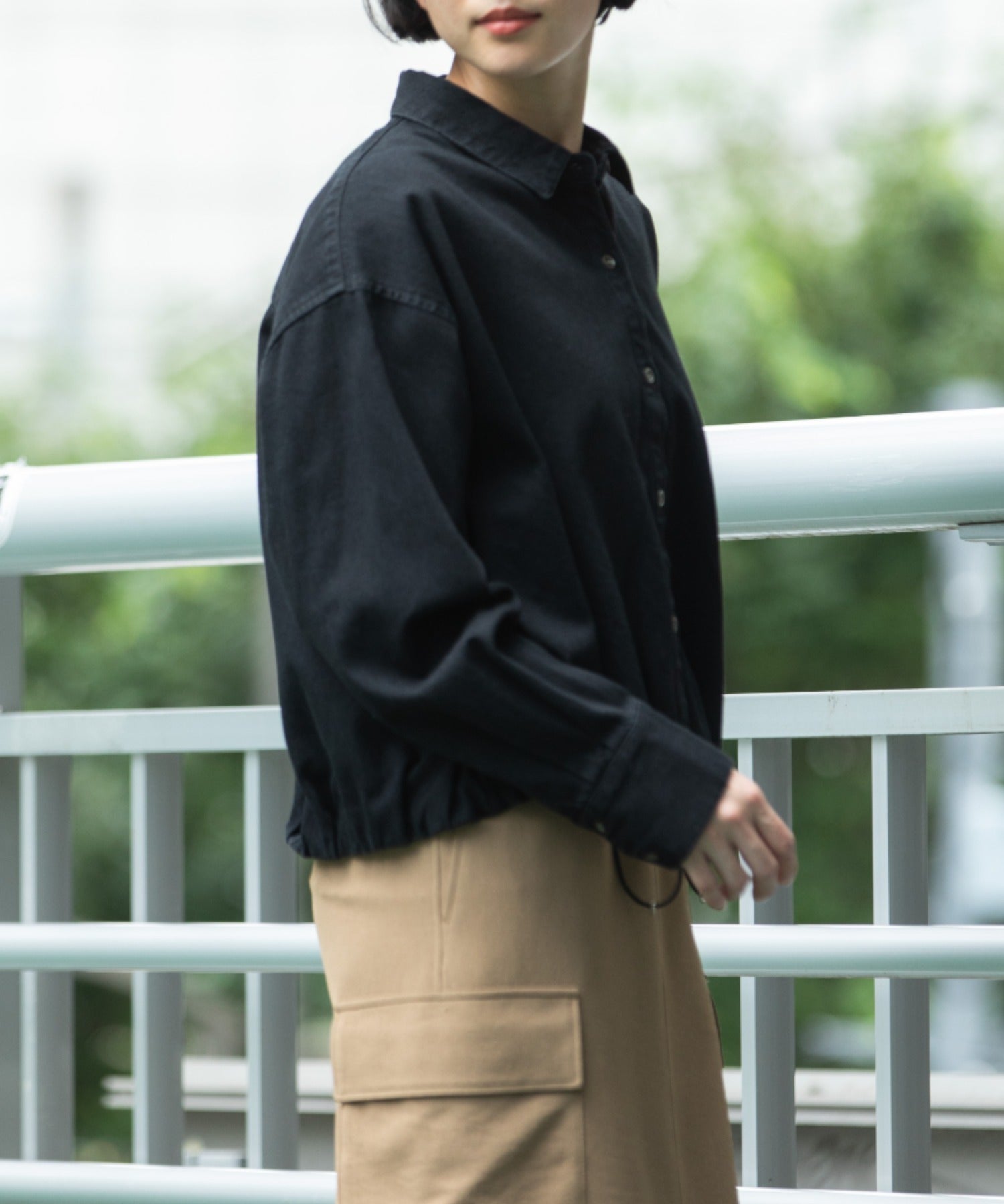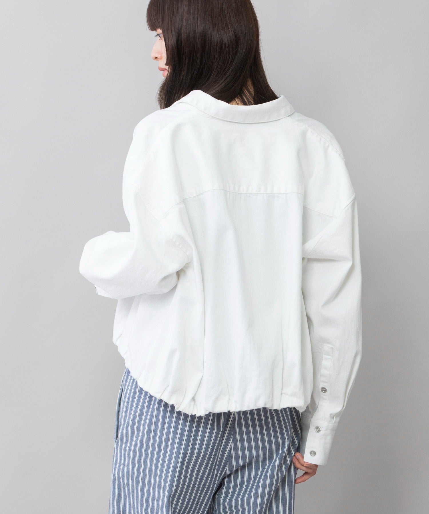 裾をブラウジングさせたショートブルゾンのようなシルエットのシャツです。