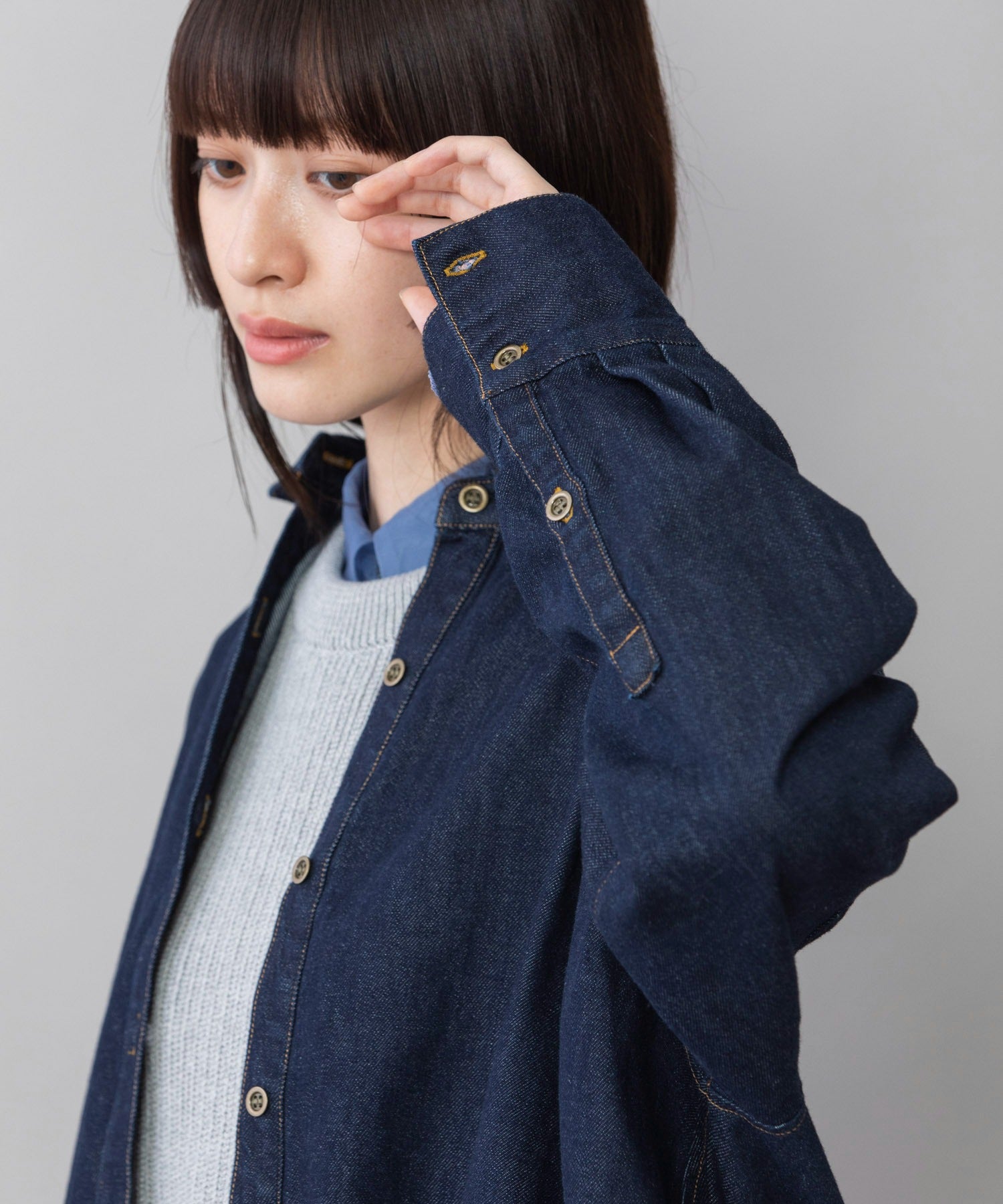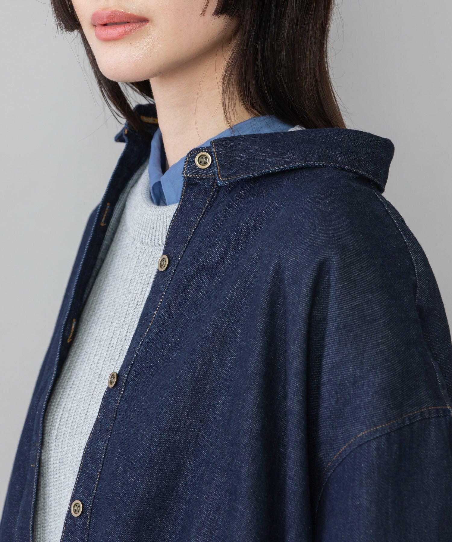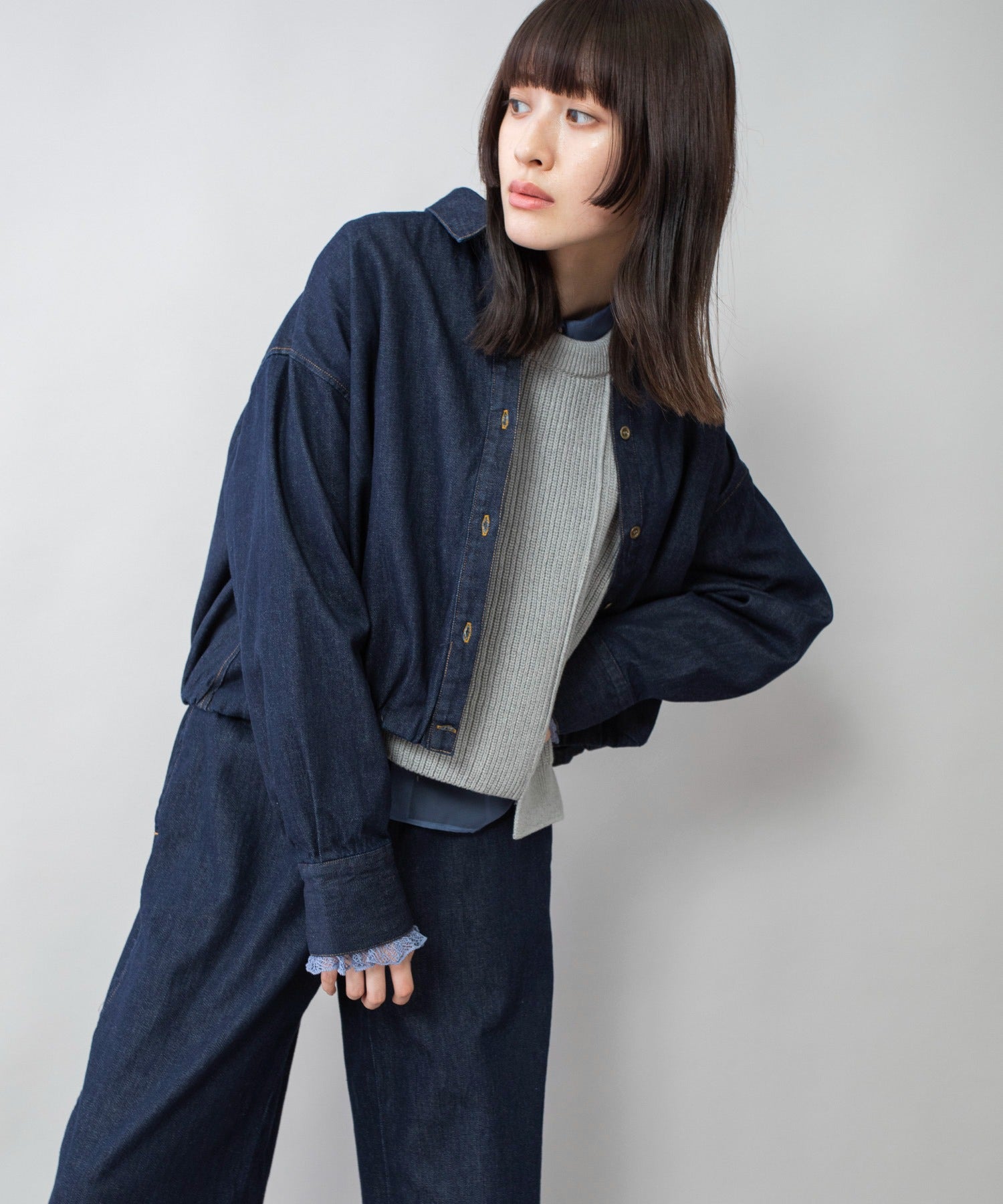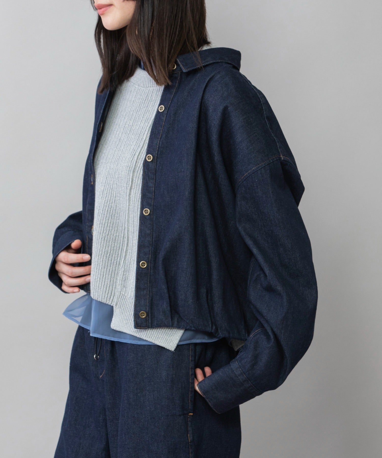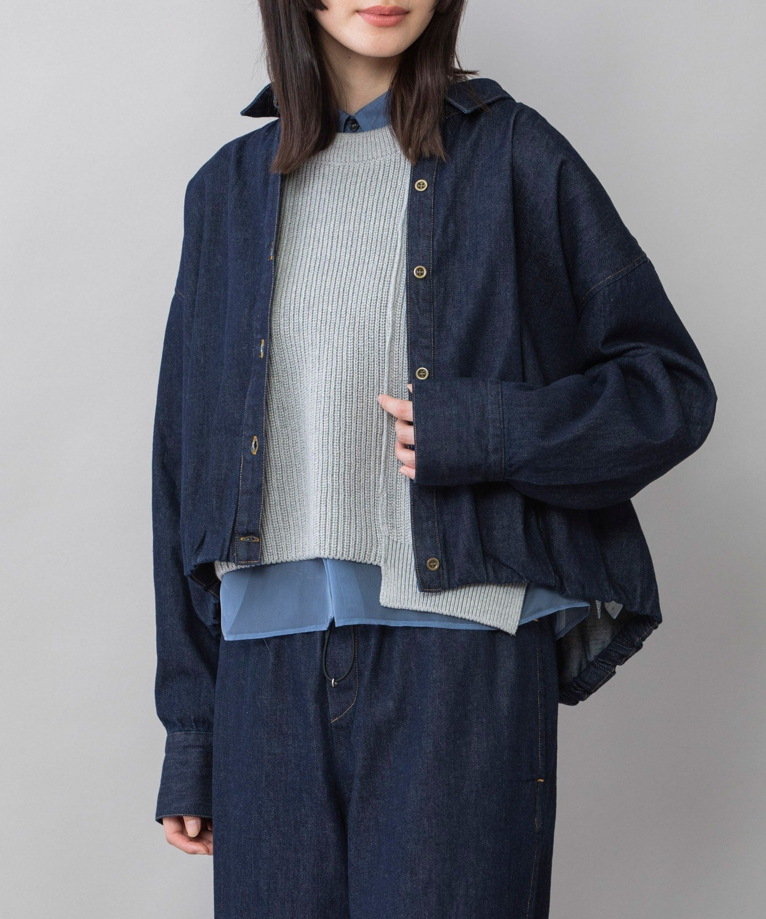 ◆軽くて柔らかなデニム素材で仕上げたブルゾン風ショートシャツ◆