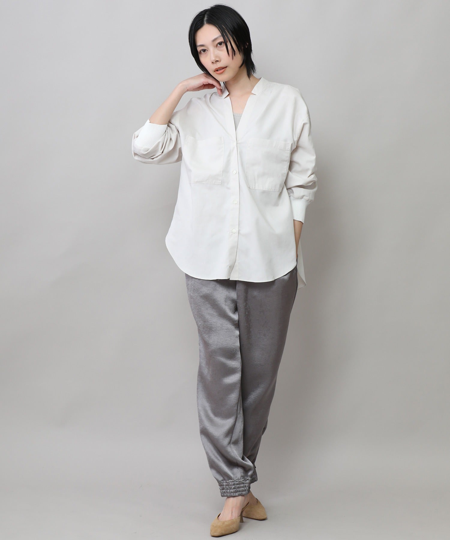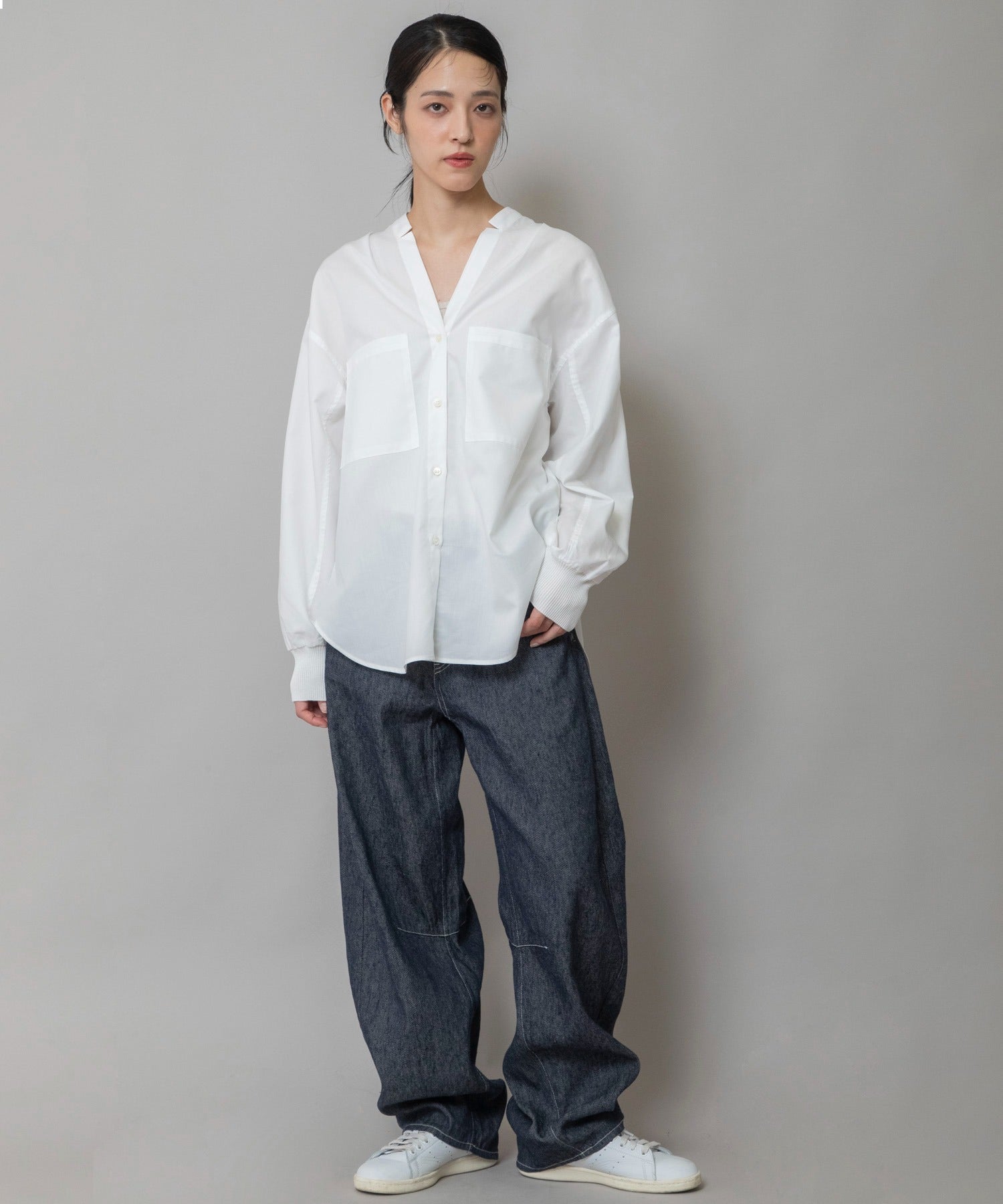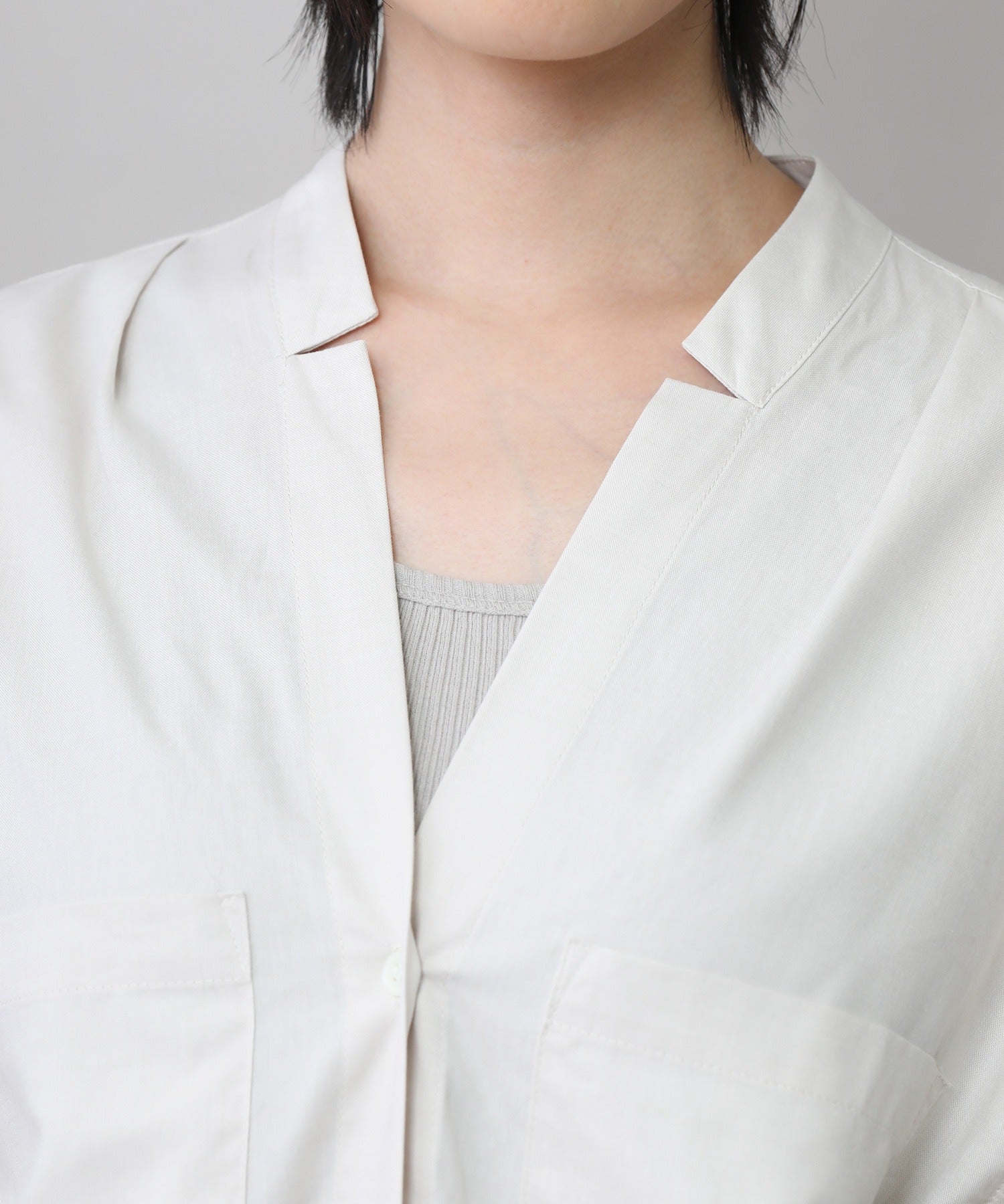 深めのVあきで抜け感のあるリラックスした雰囲気のシャツです。