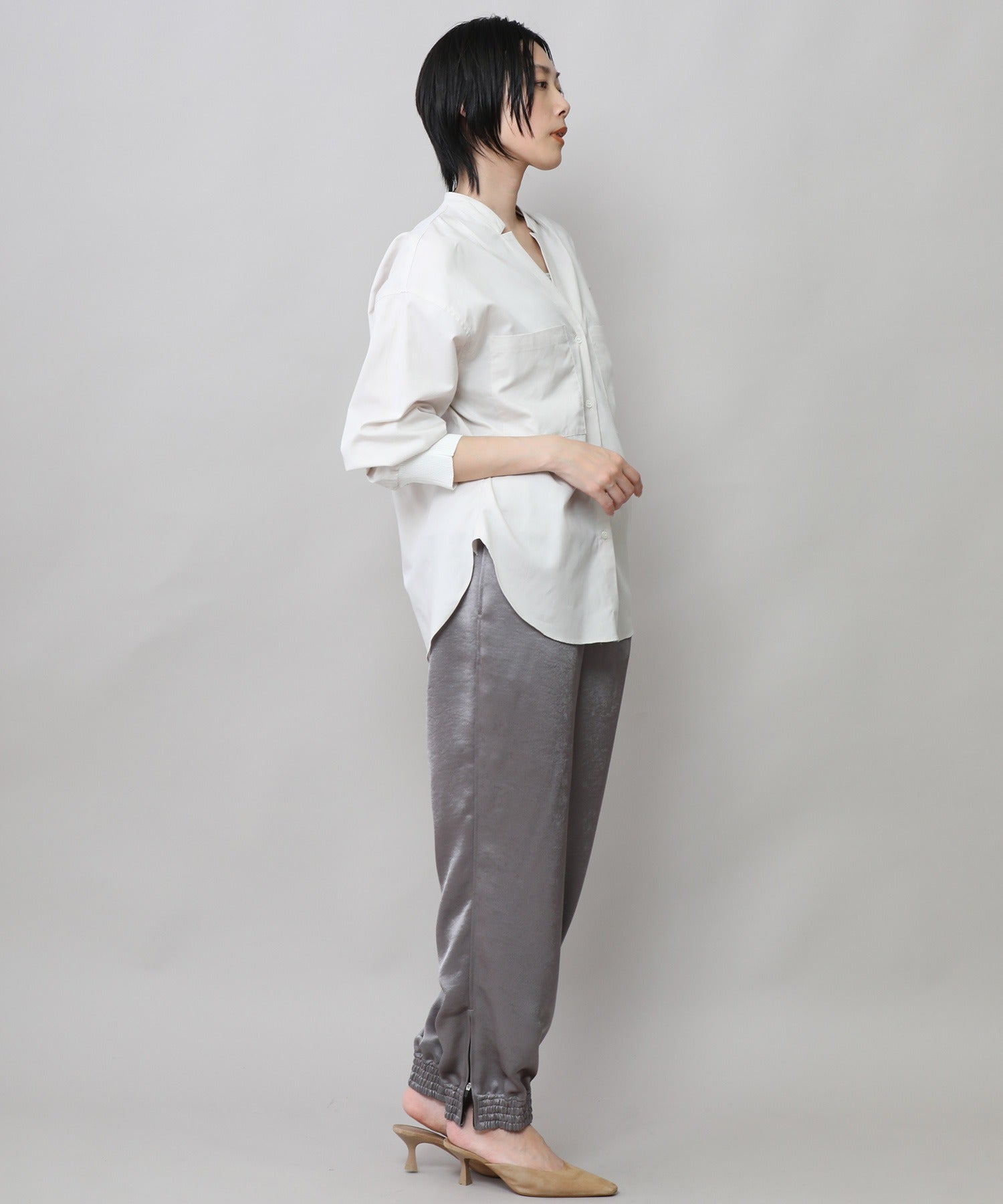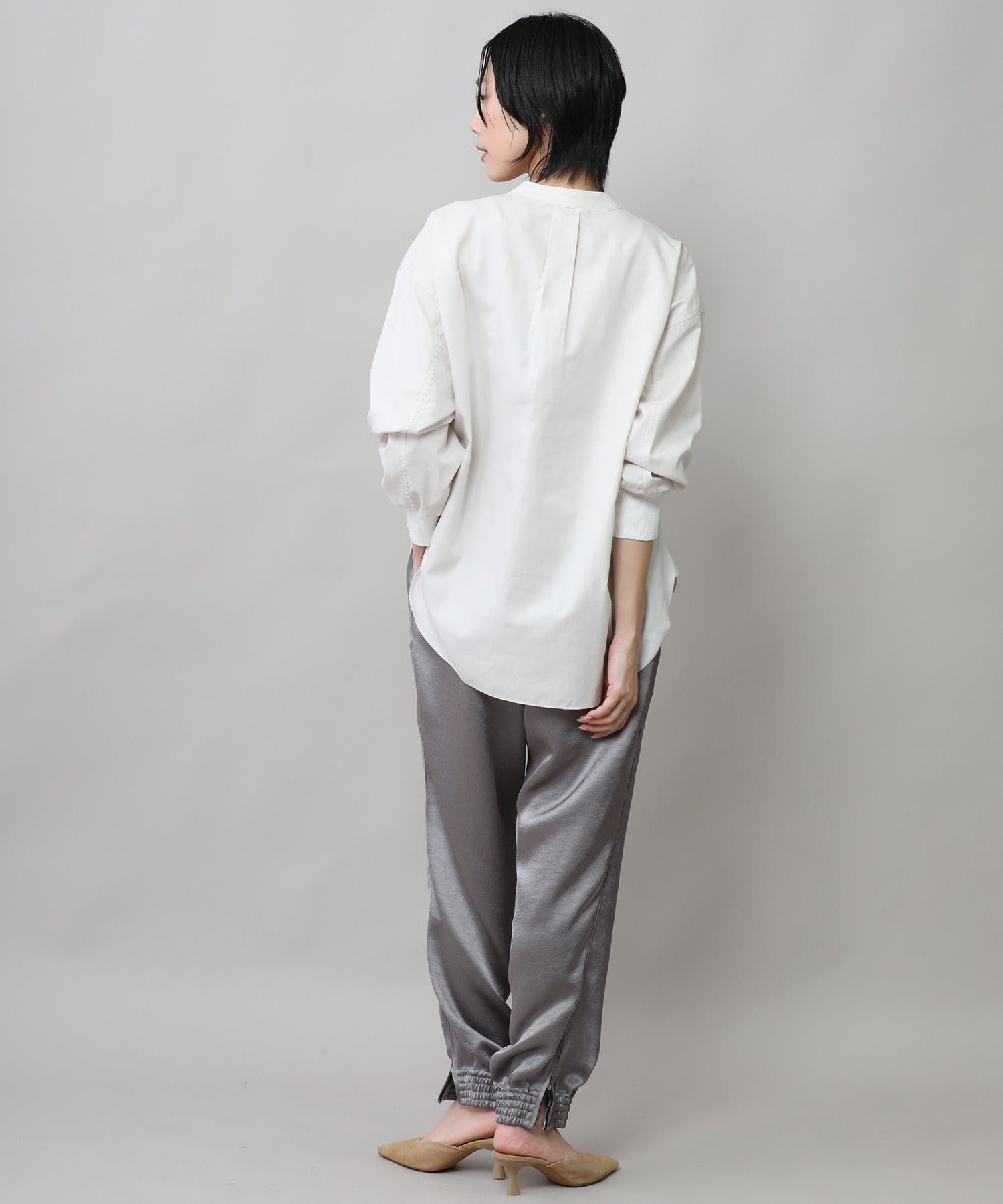 前回の形から袖口をリブに変えていますが、ギャザー分量は抑え、甘さのないすっきりとしたデザインを継承しています。