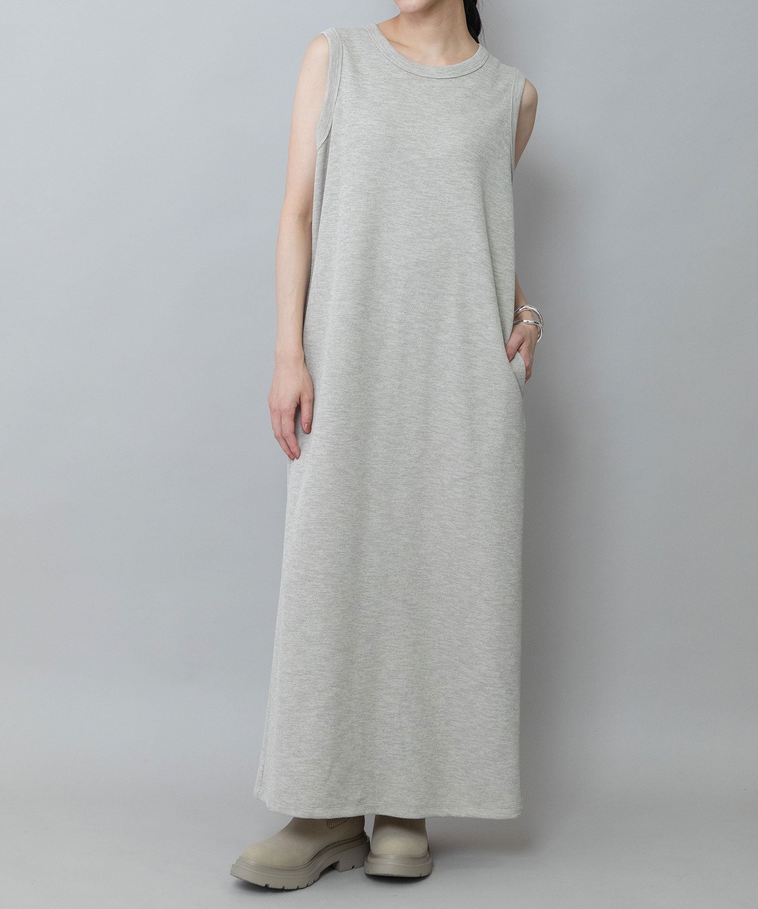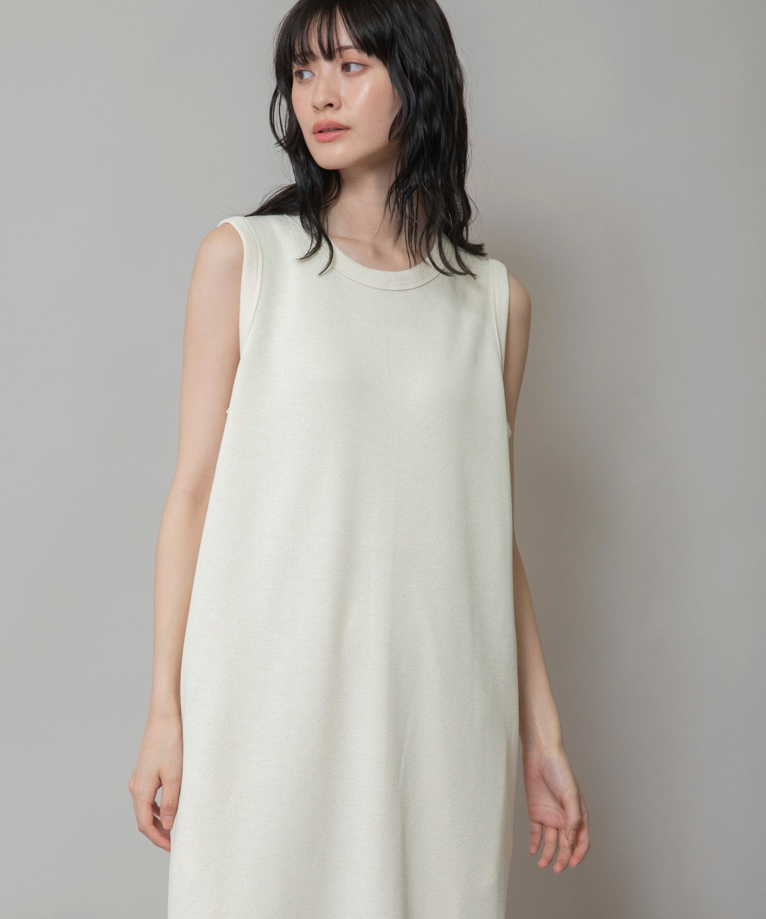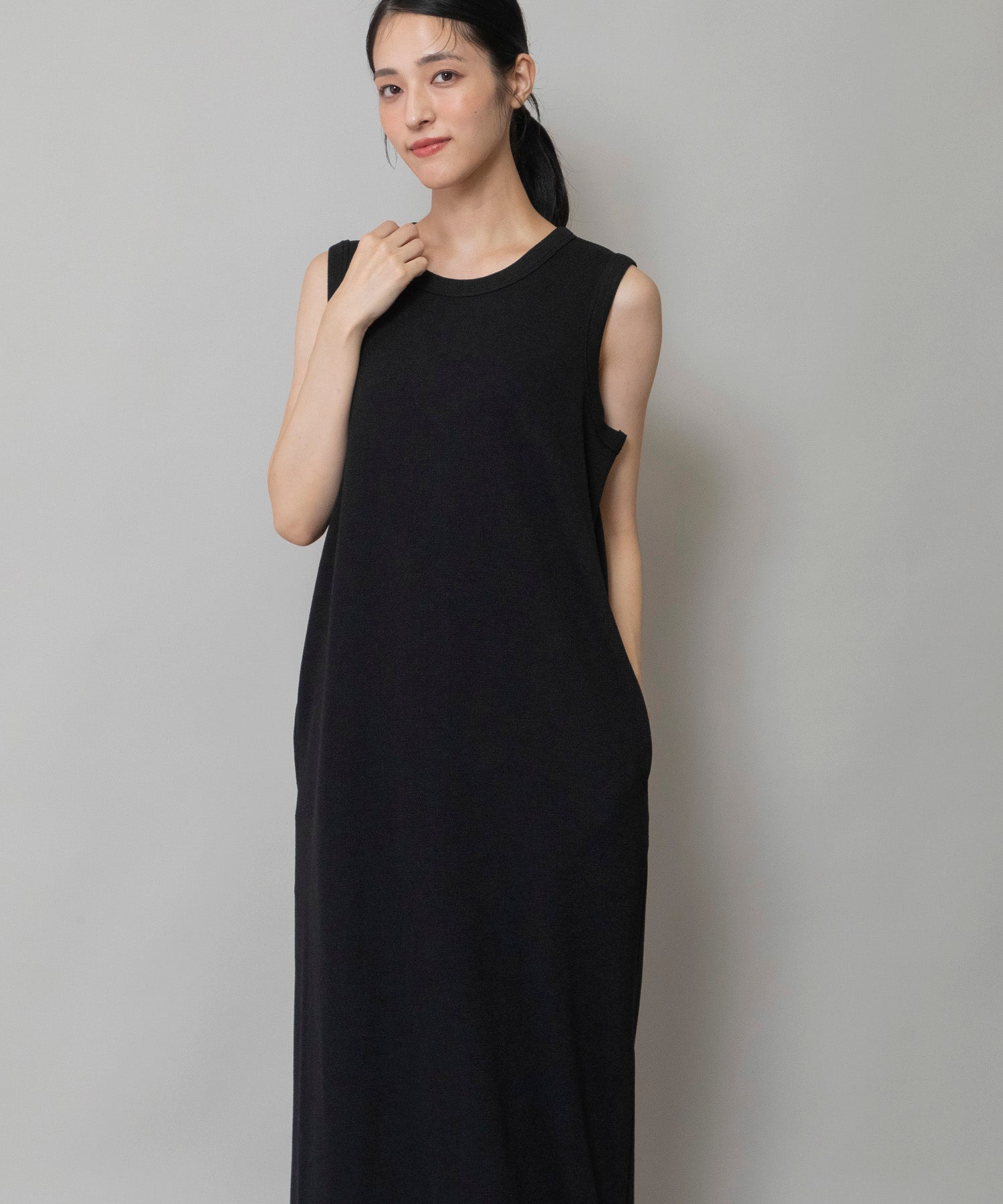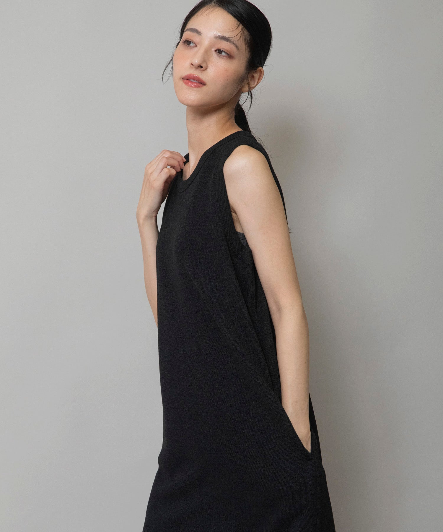 しなやかな落ち感のあるカットソー素材のノースリーブワンピース。