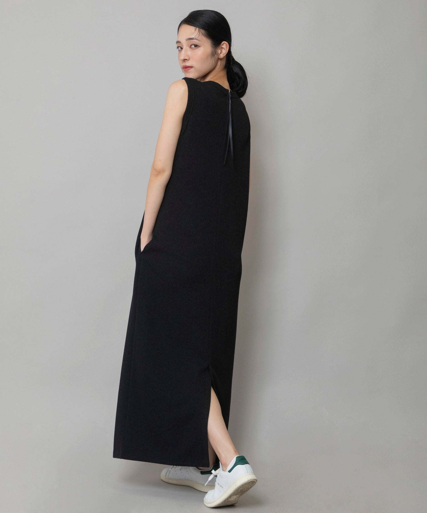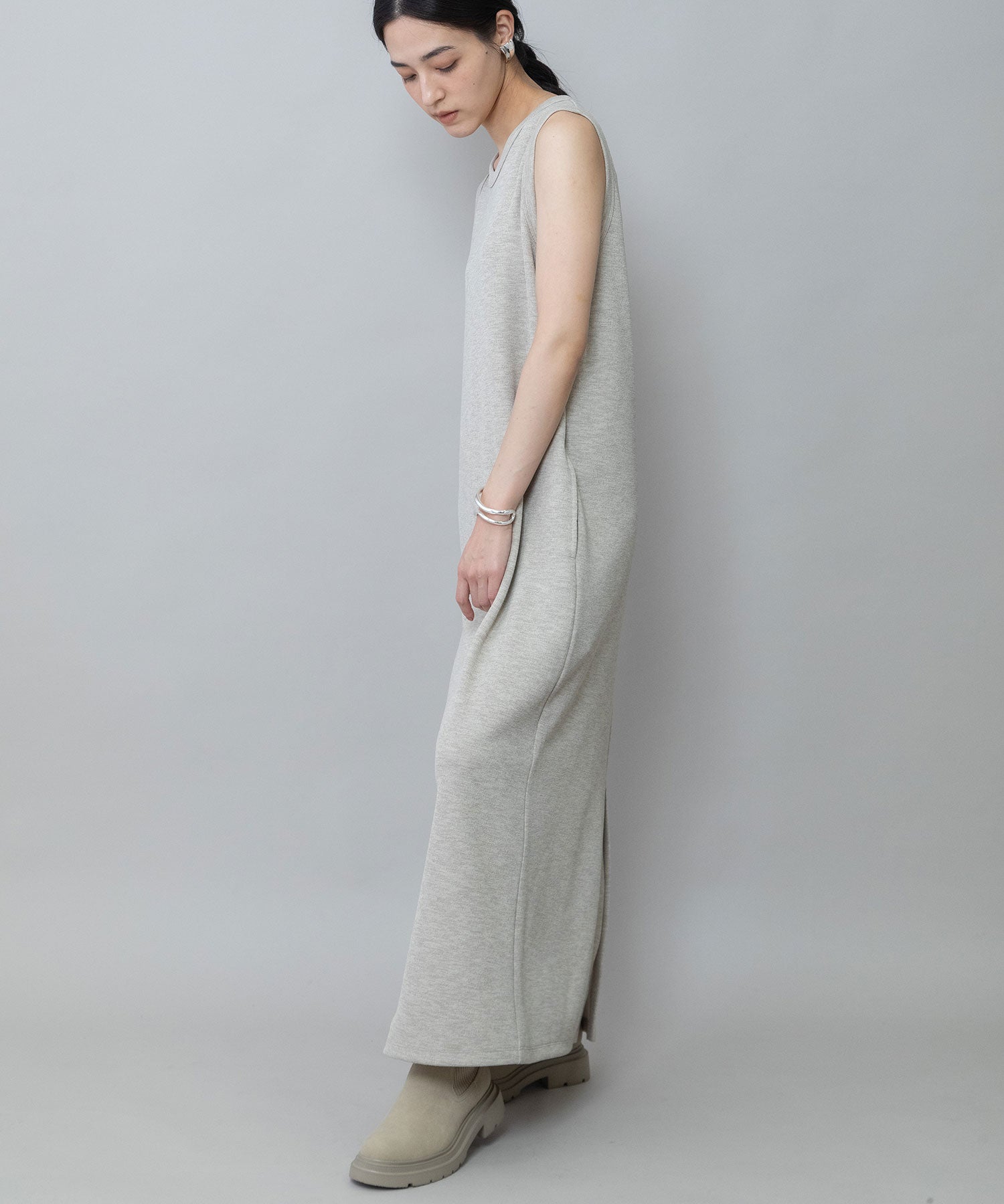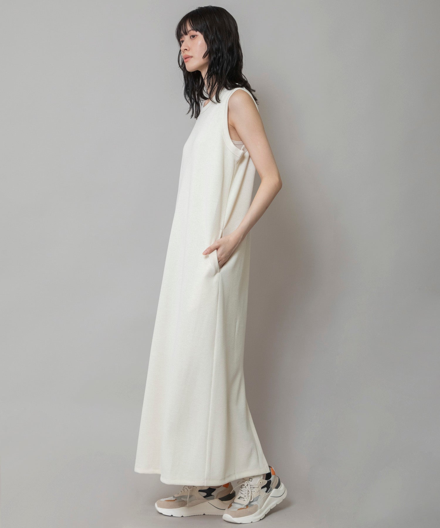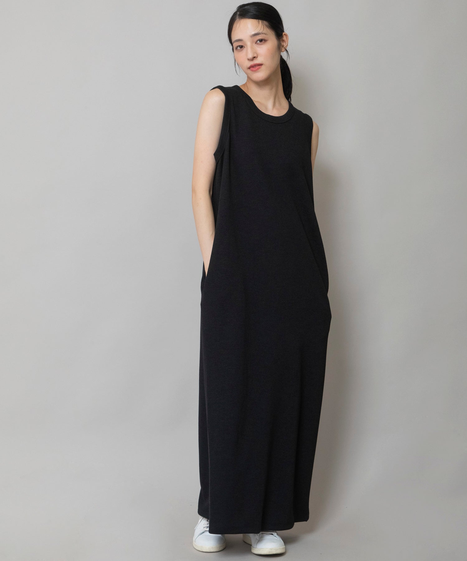 しなやかな落ち感のあるカットソー素材のノースリーブワンピース。