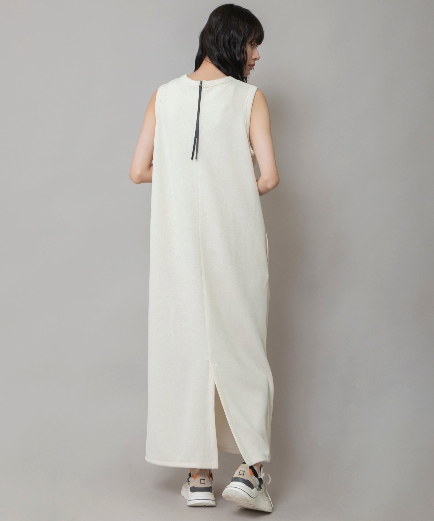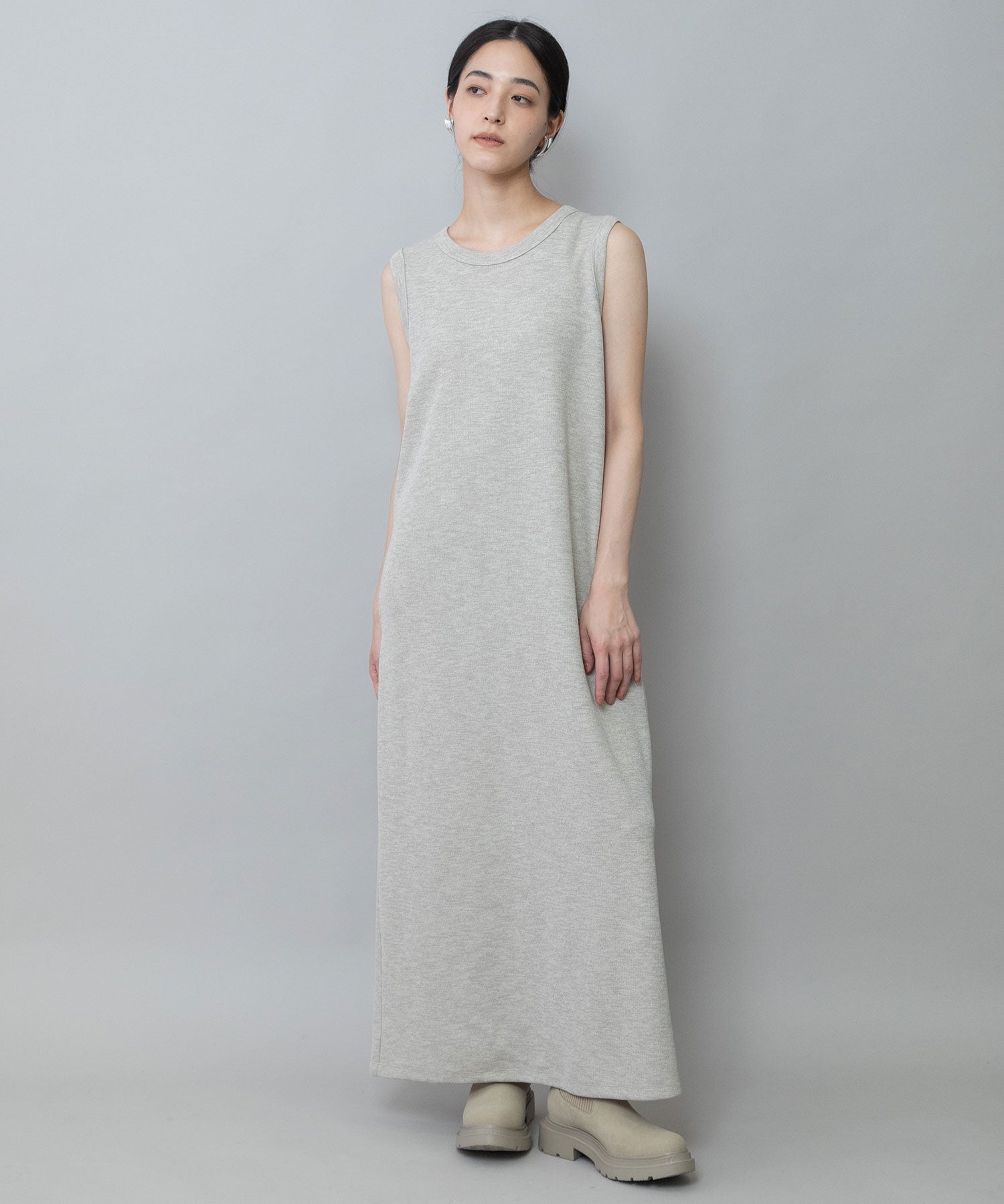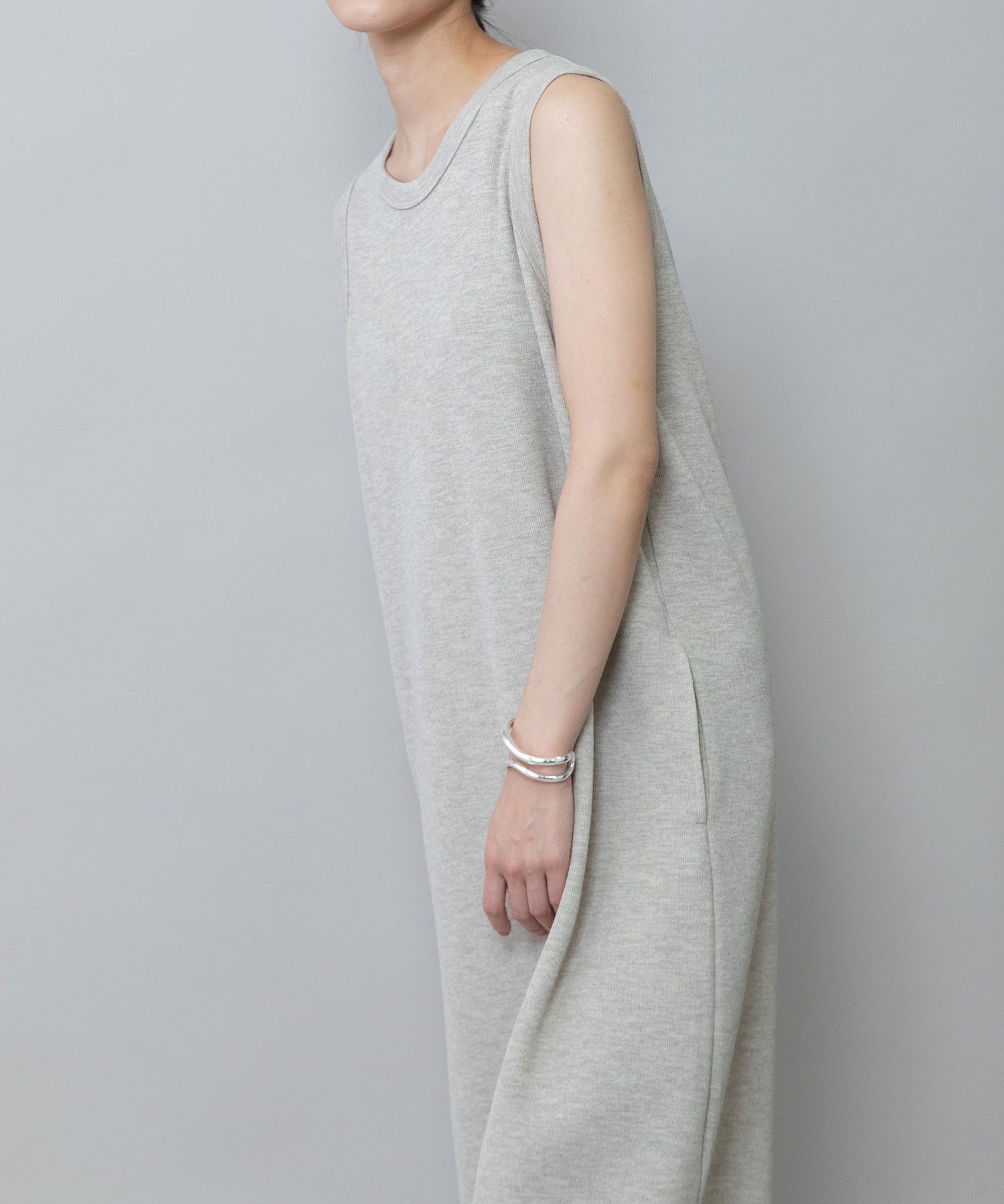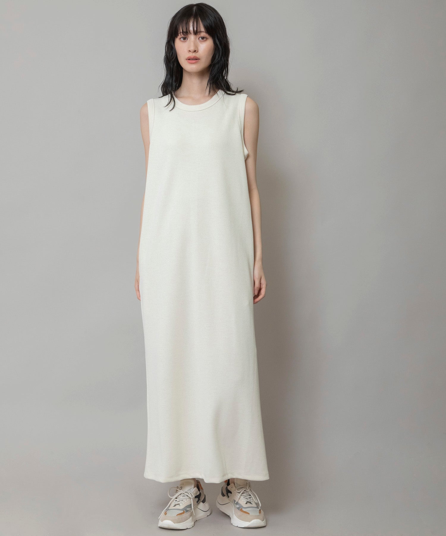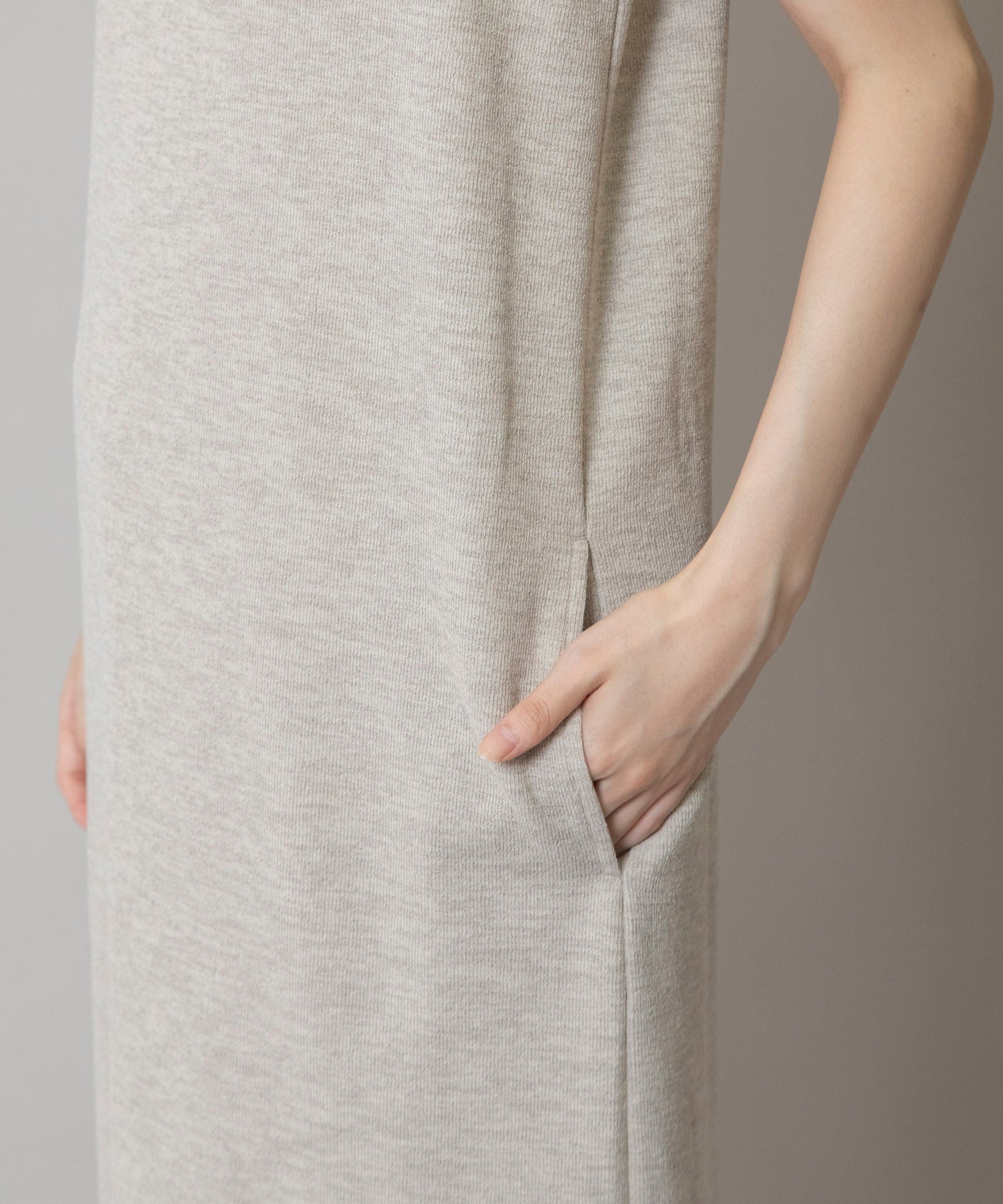 しなやかな落ち感のあるカットソー素材のノースリーブワンピース。