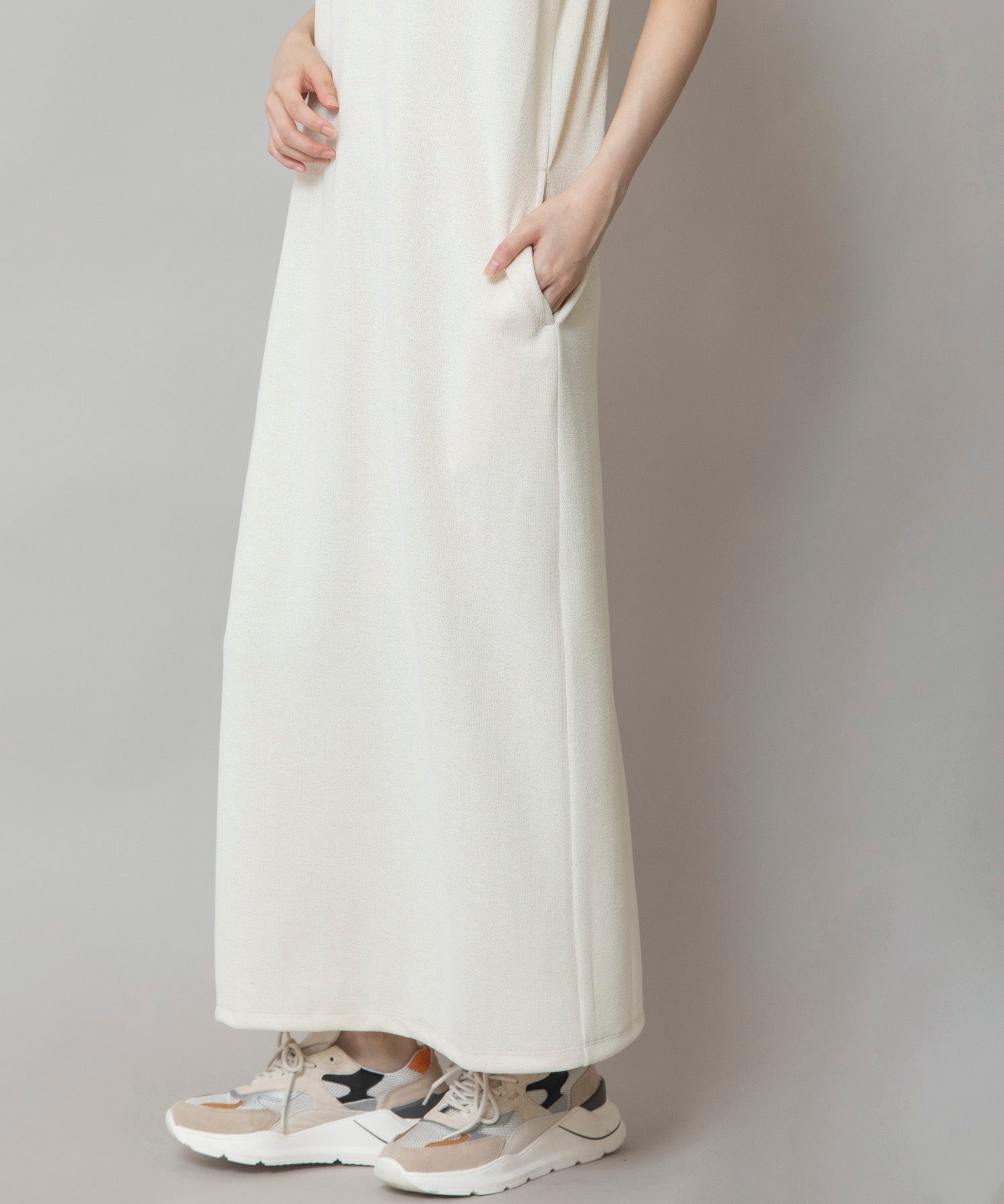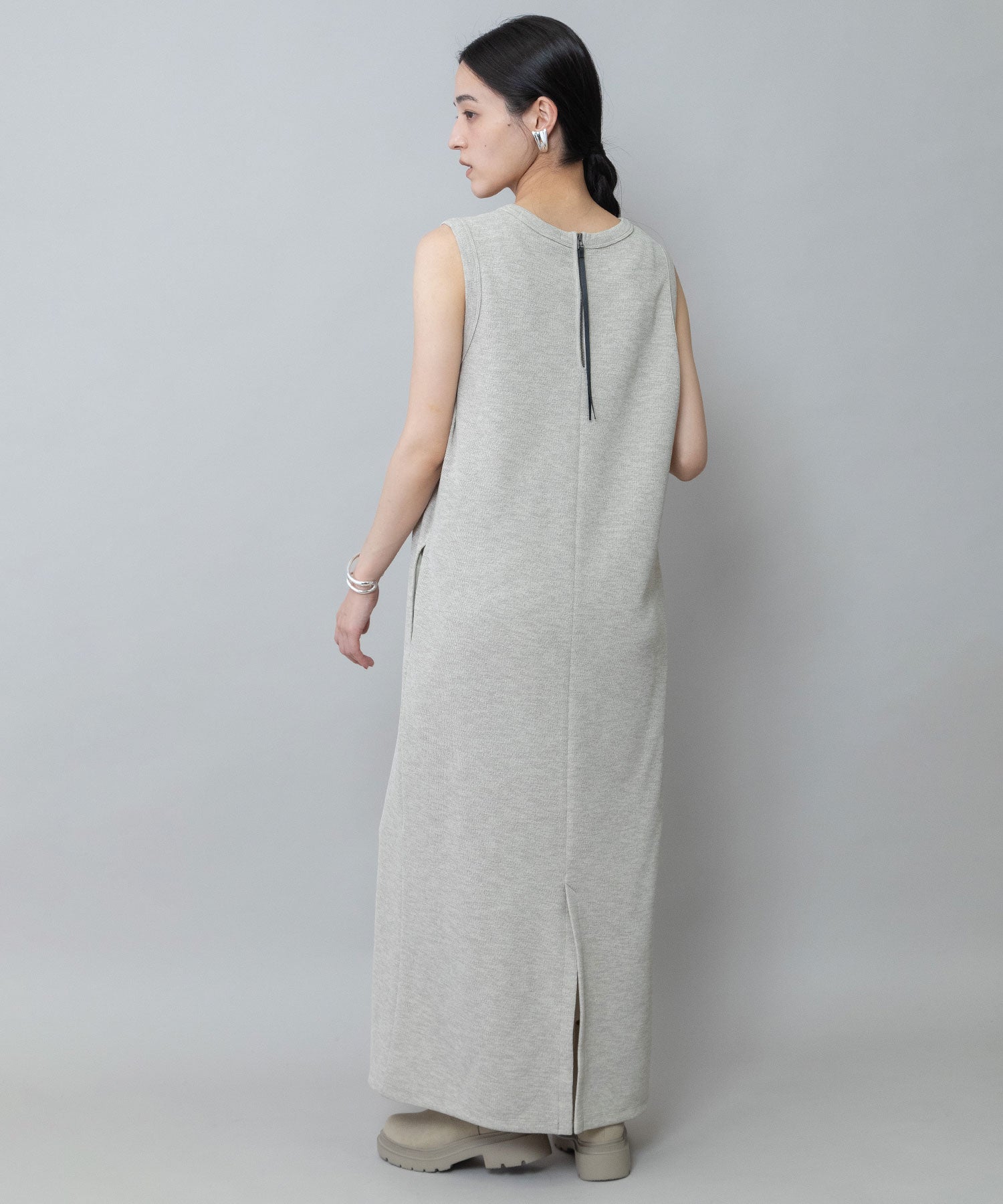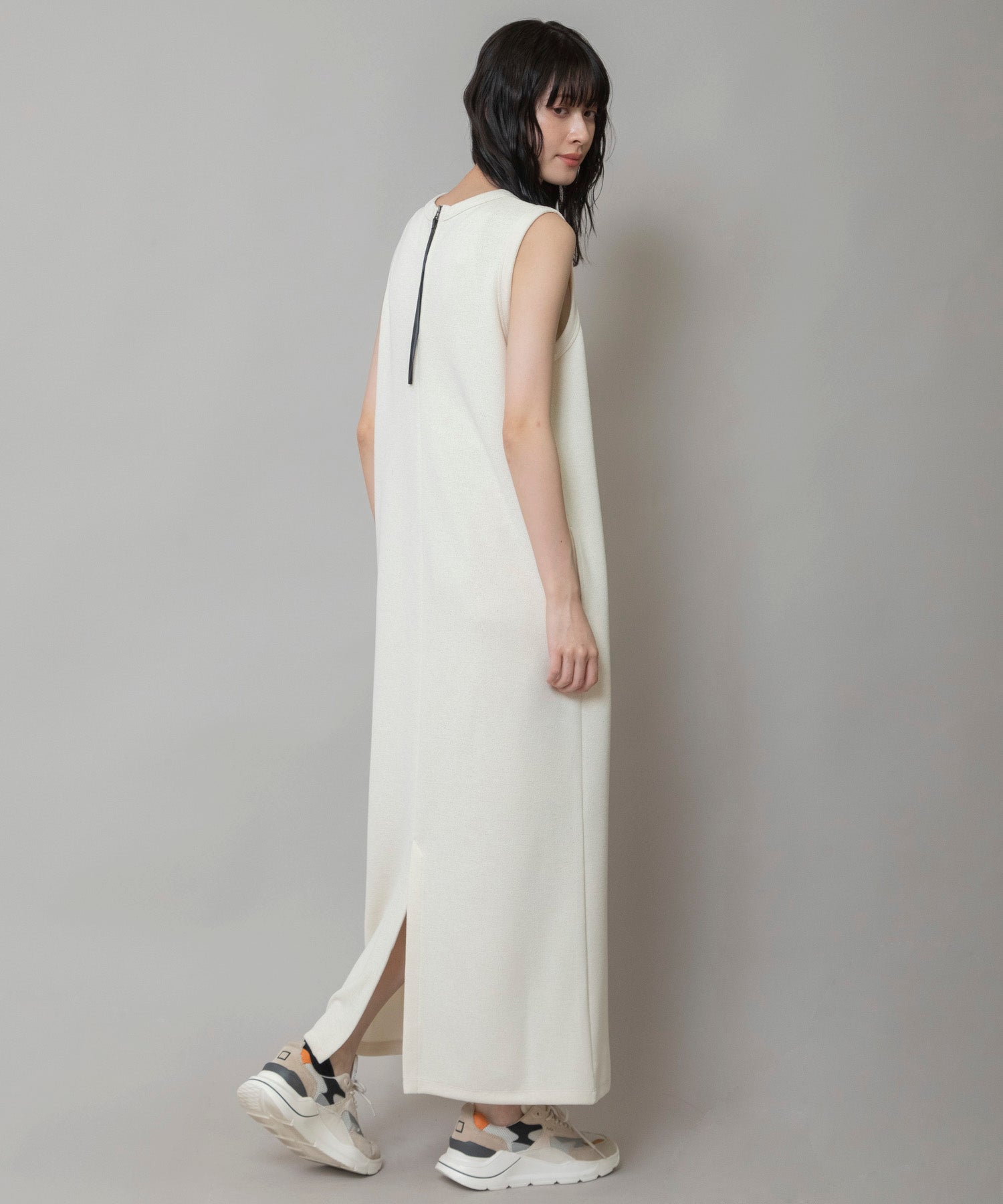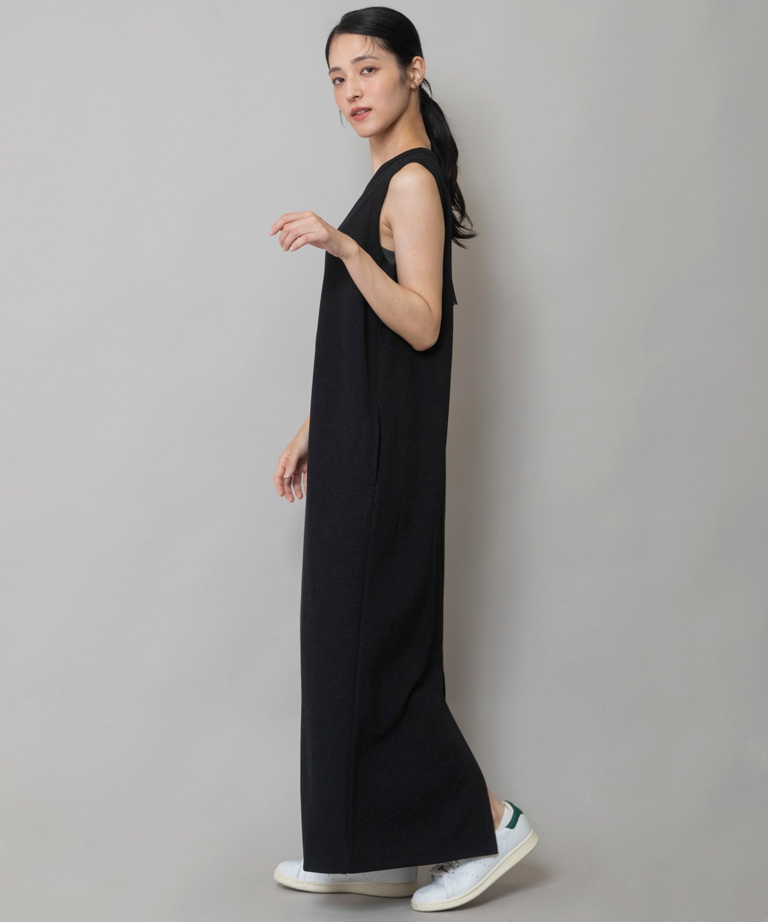 しなやかな落ち感のあるカットソー素材のノースリーブワンピース。