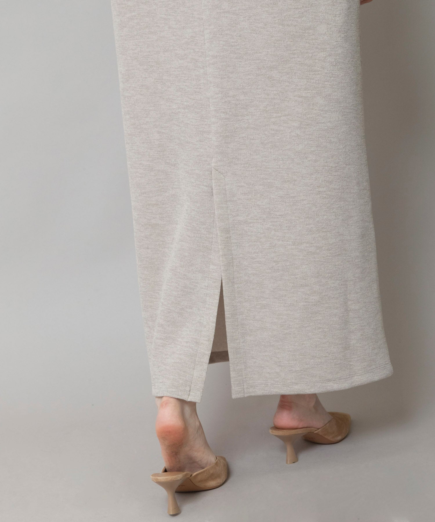 長めのマキシ丈なので脚が見えすぎず、シックな雰囲気で着こなせます。