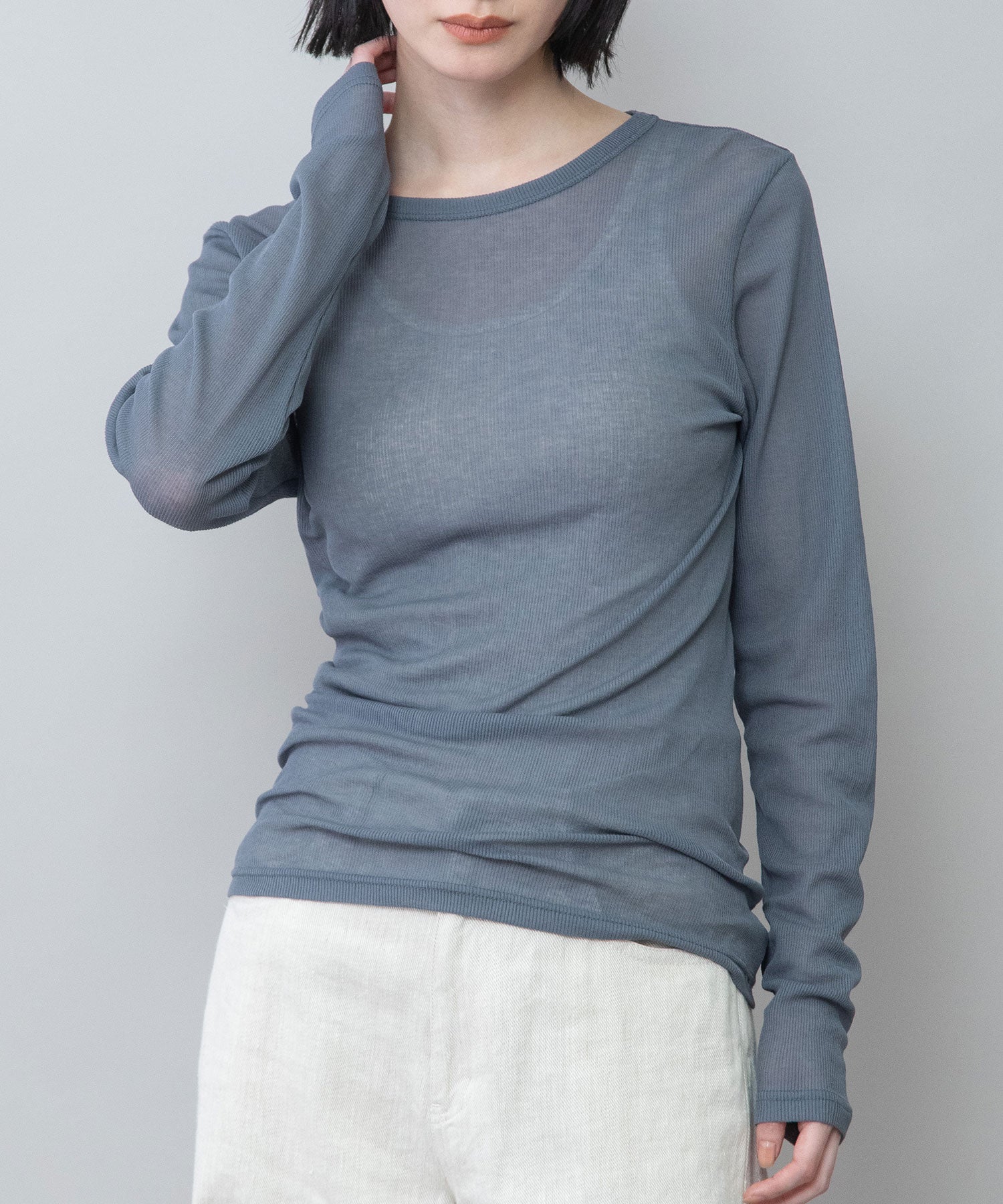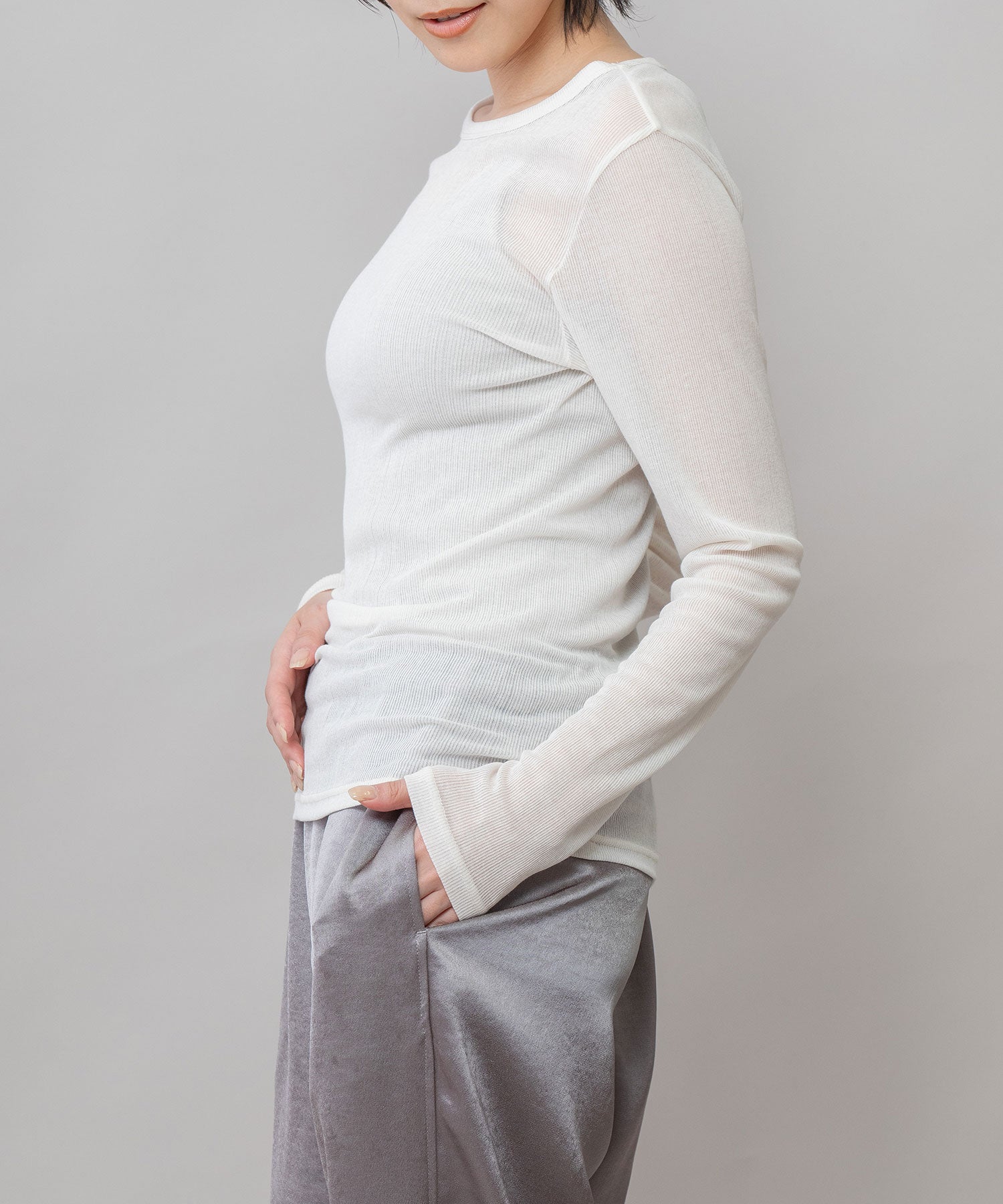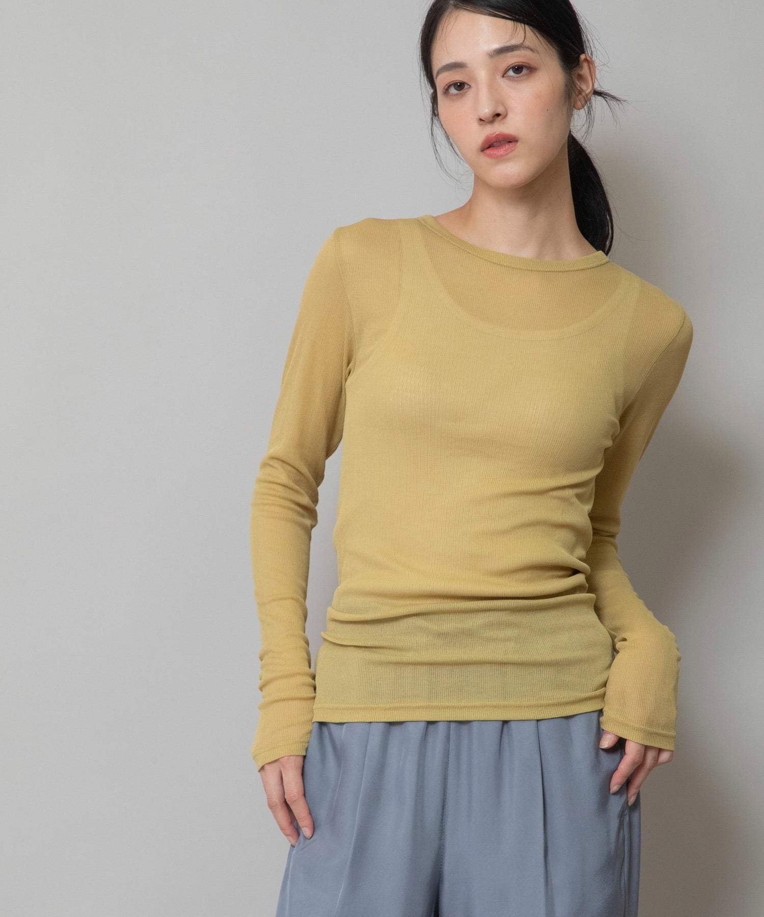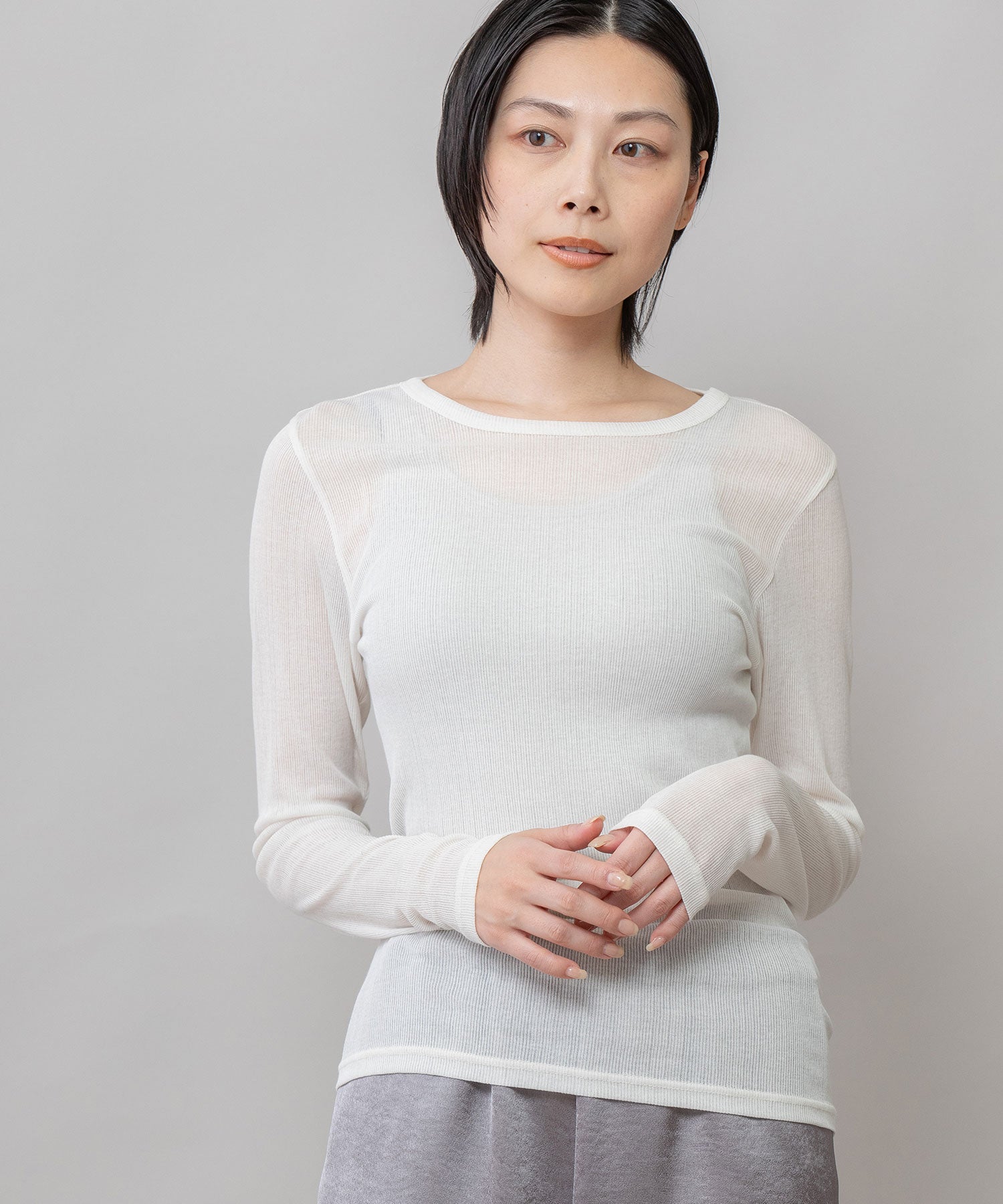 トレンドのシアーな素材感が魅力のクルーネックインナー。