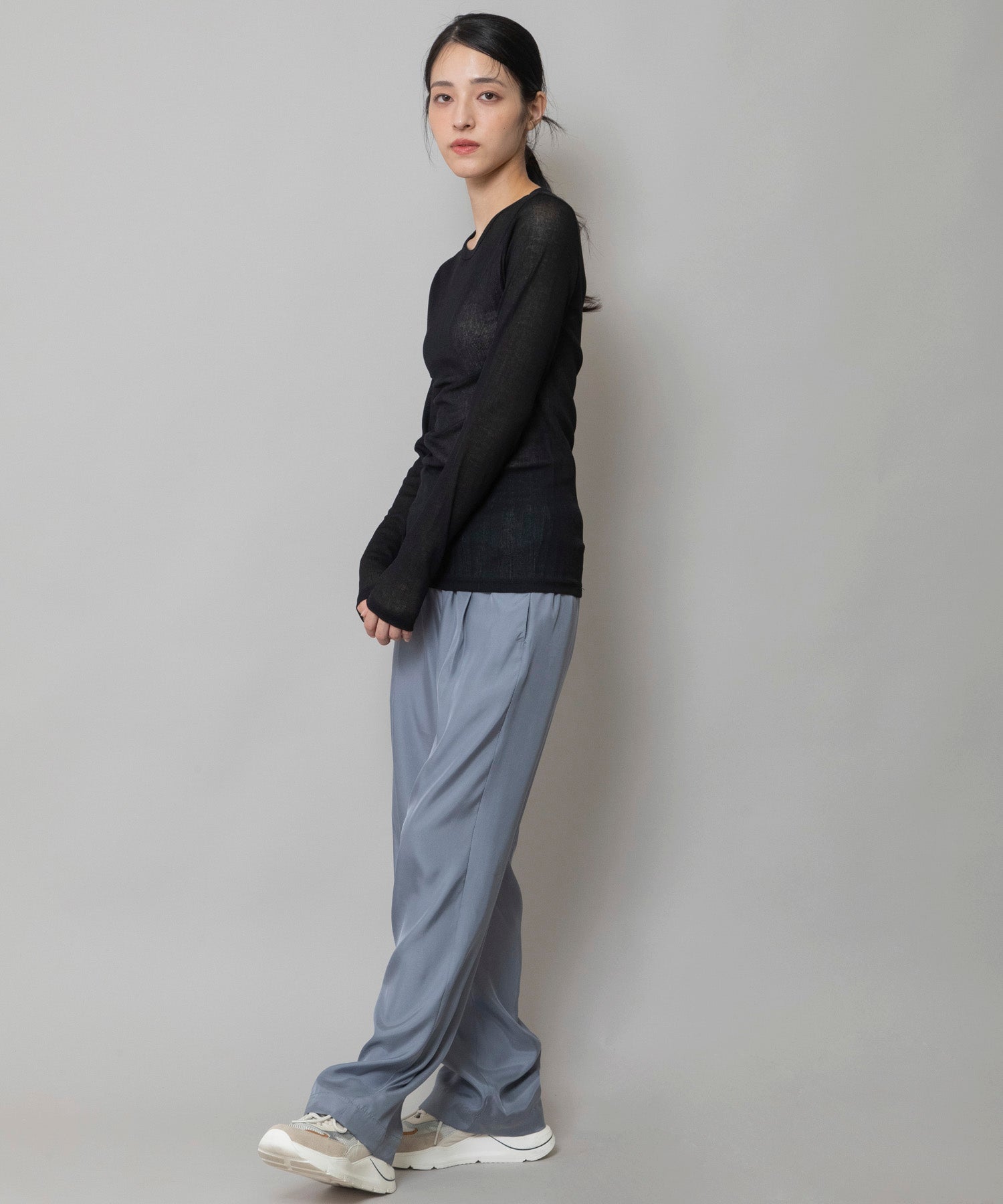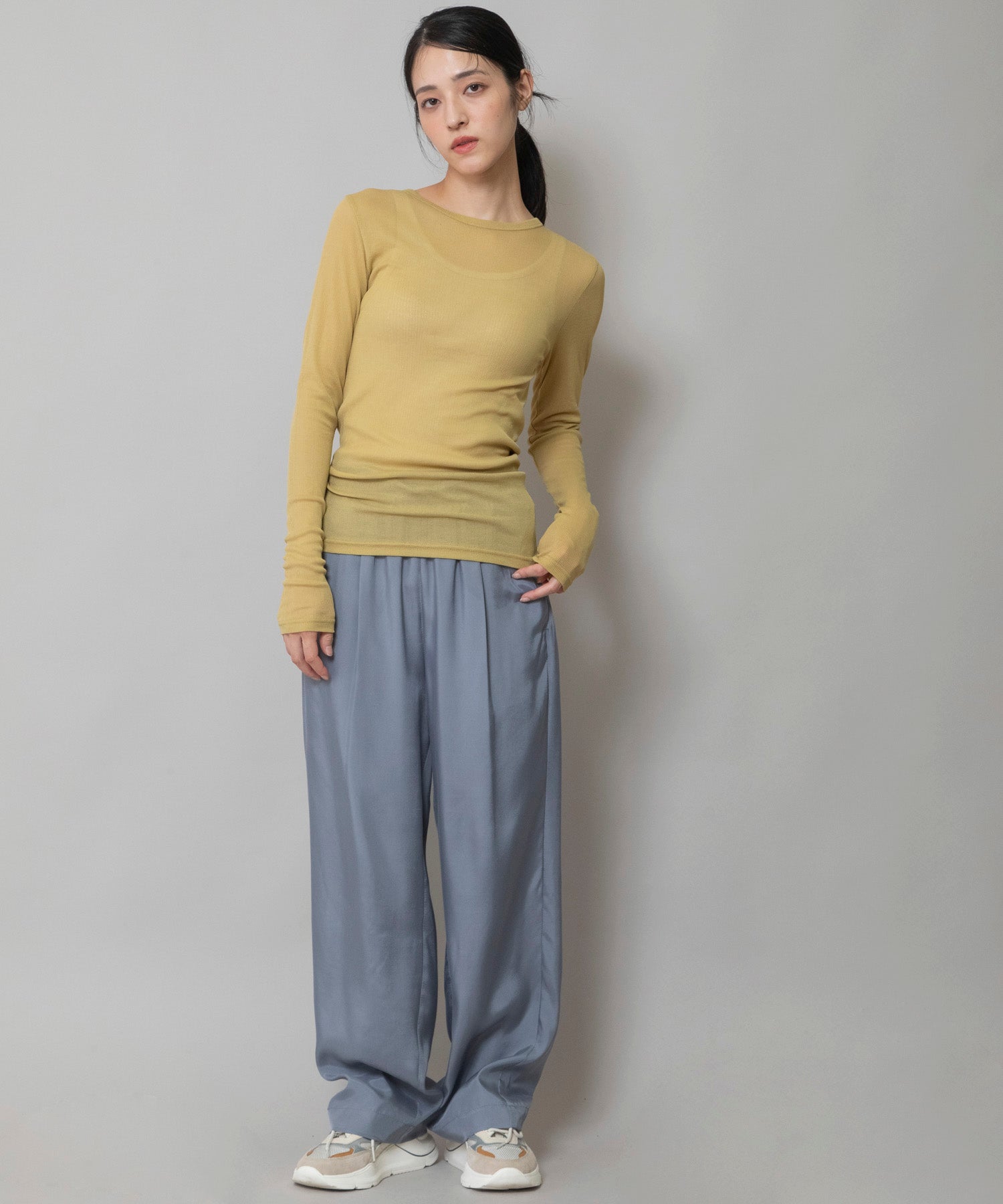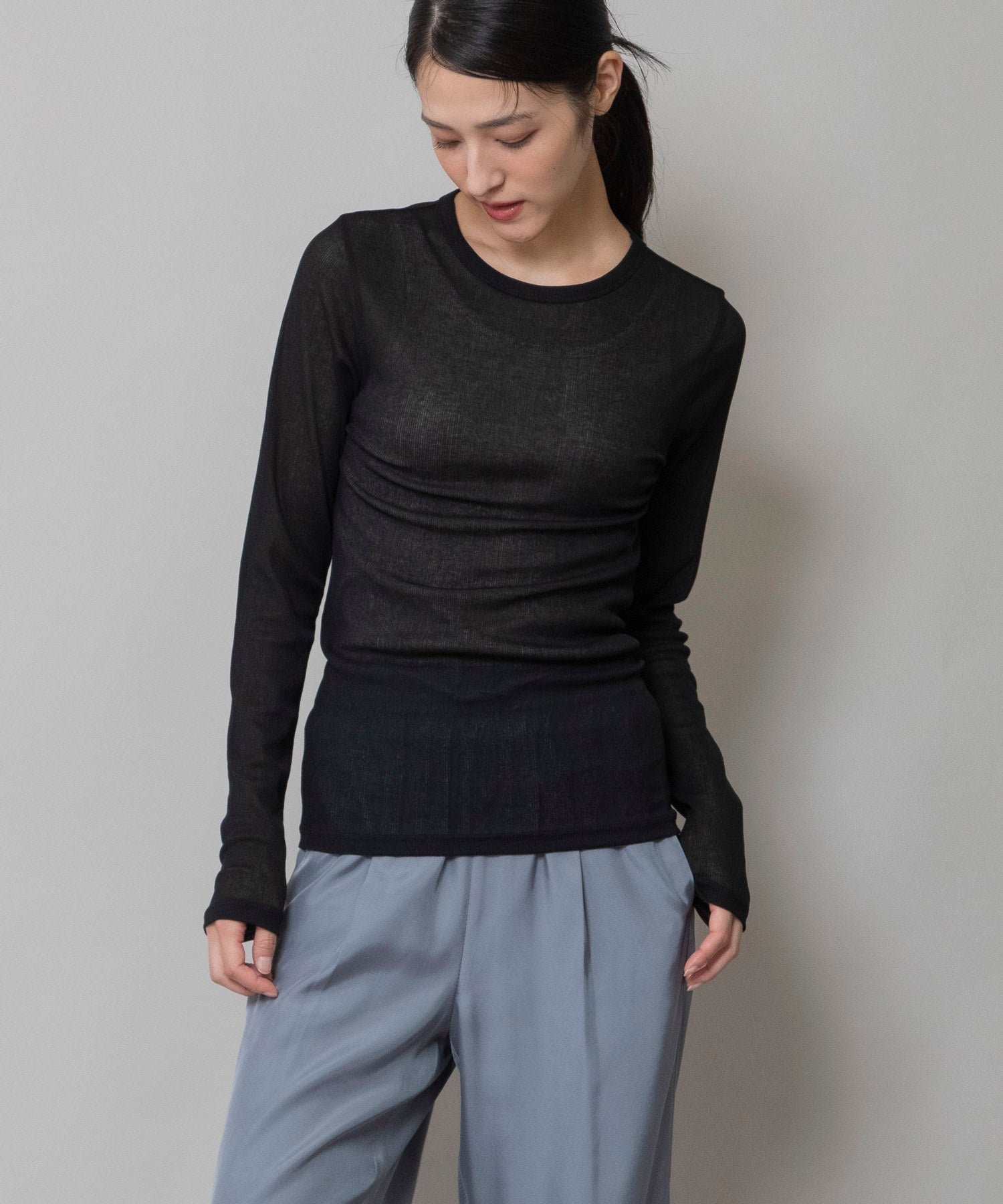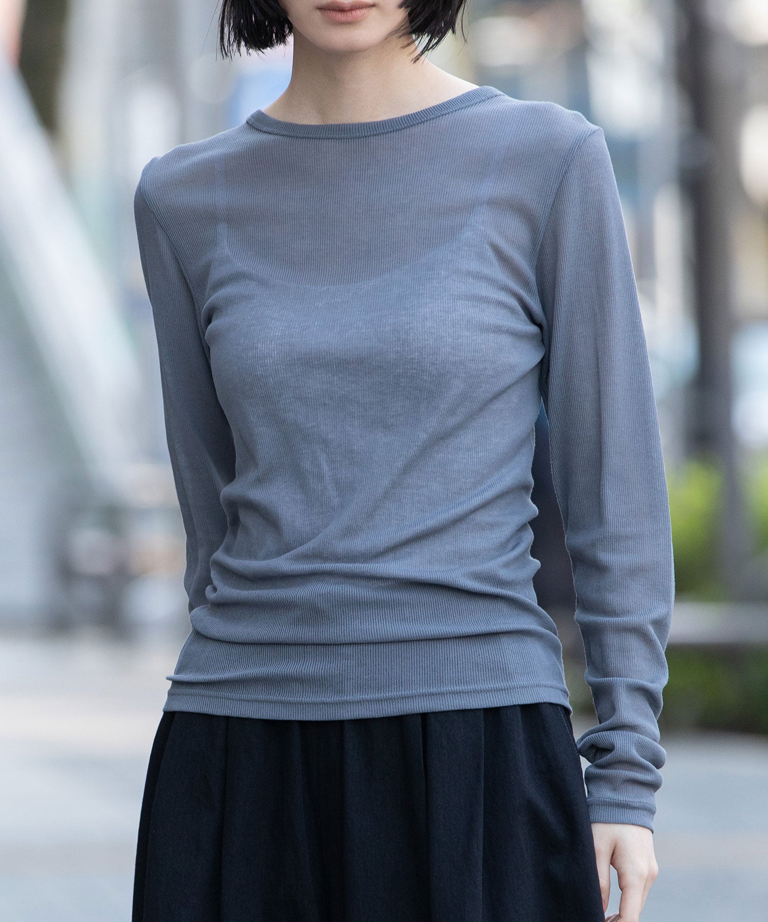 トレンドのシアーな素材感が魅力のクルーネックインナー。