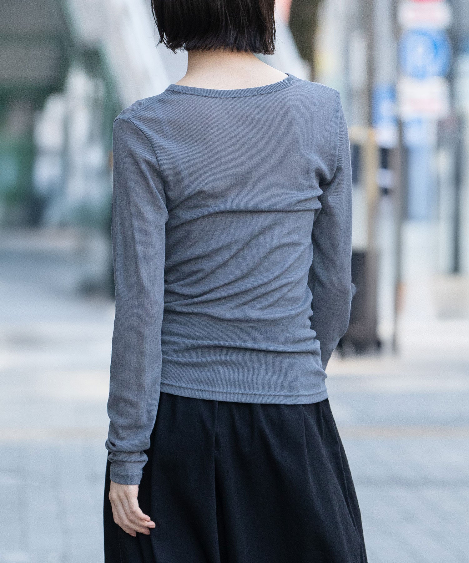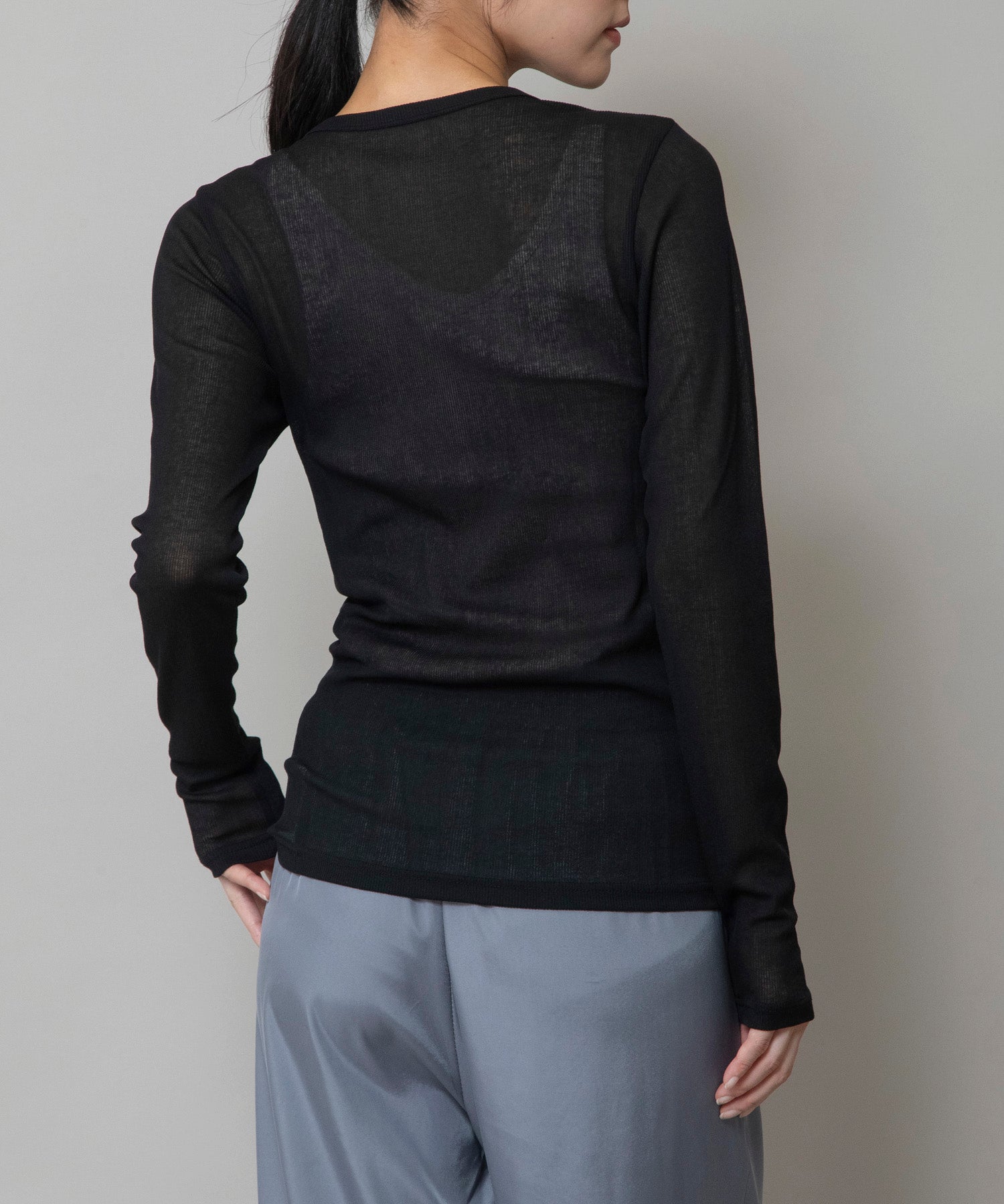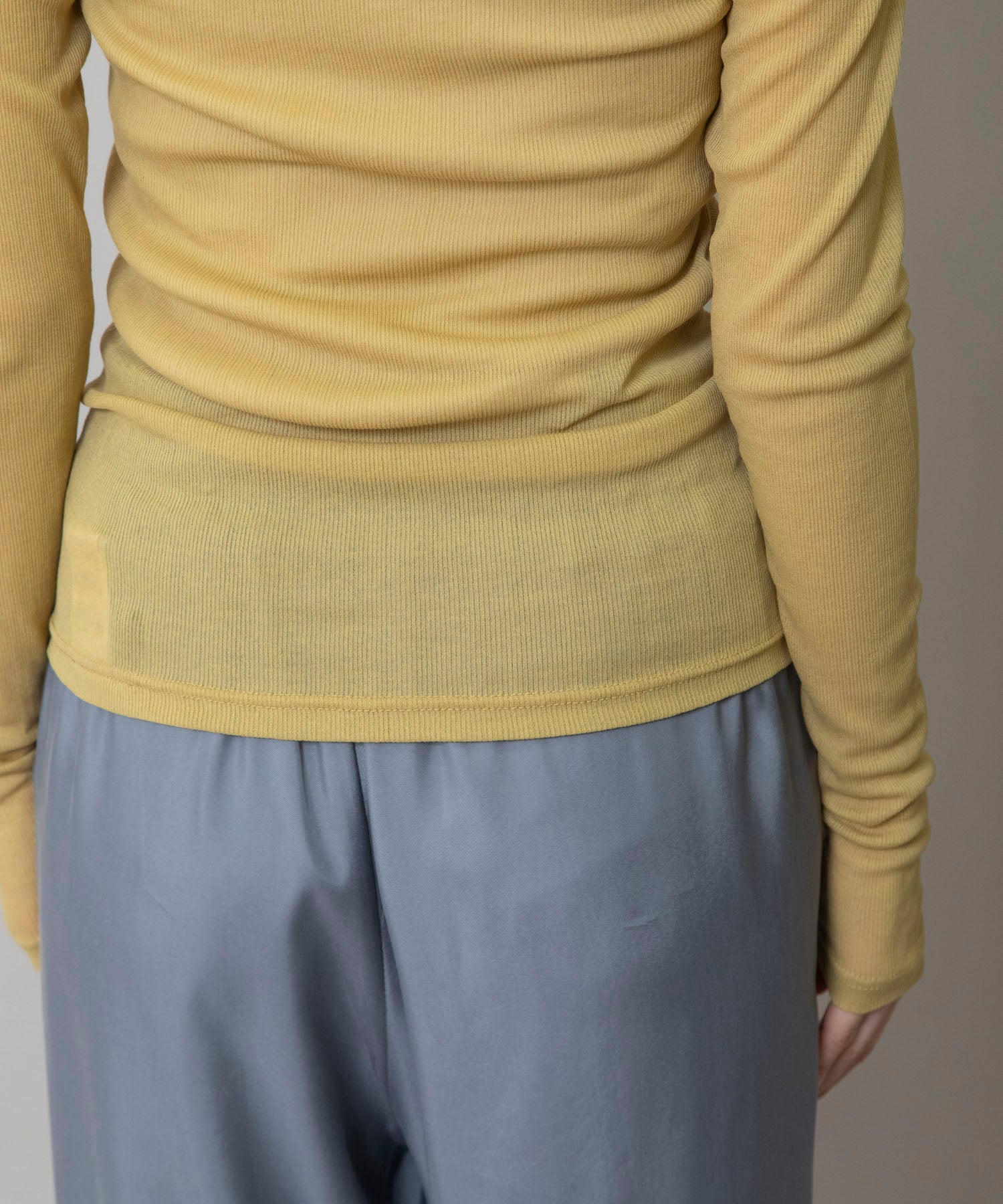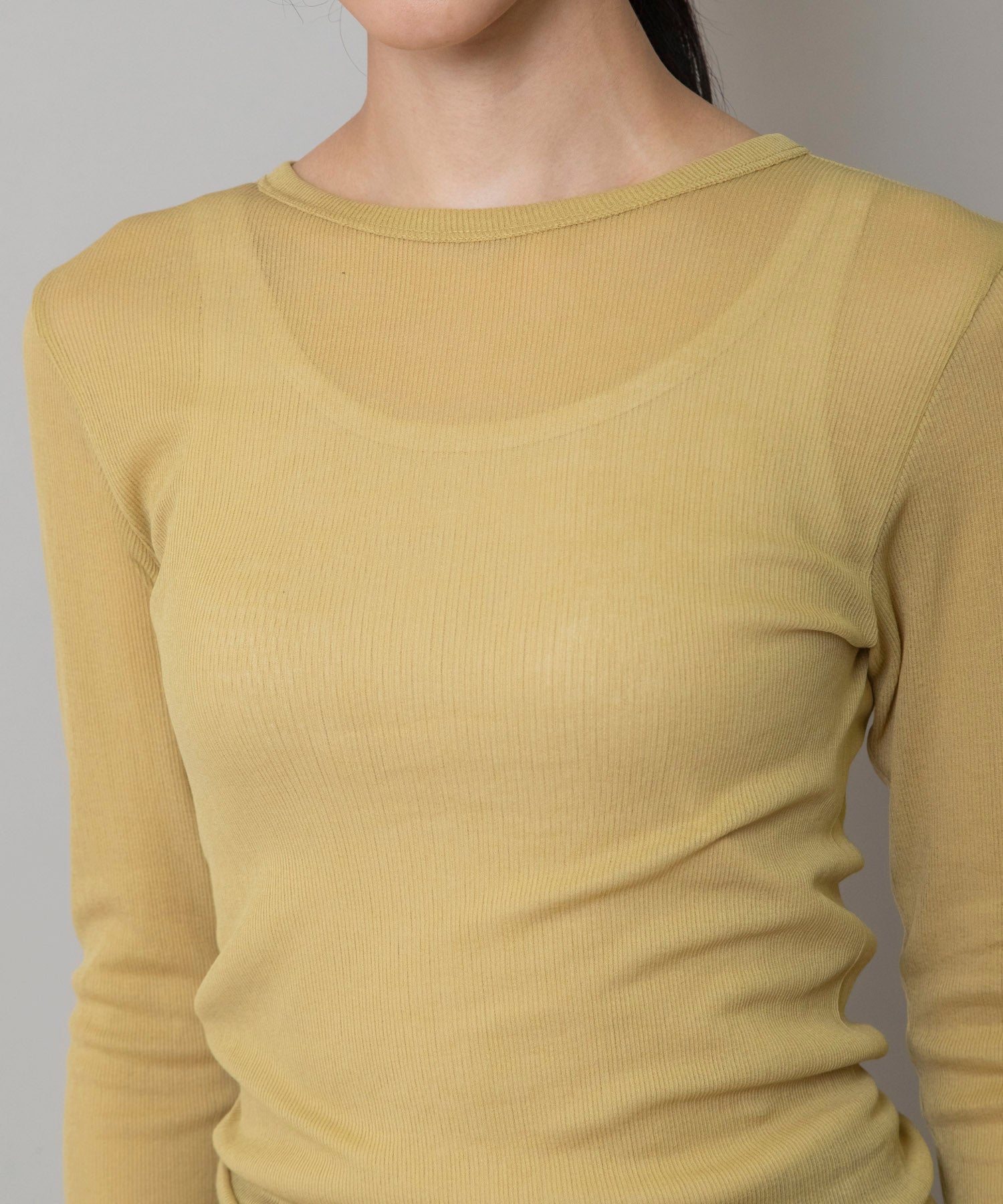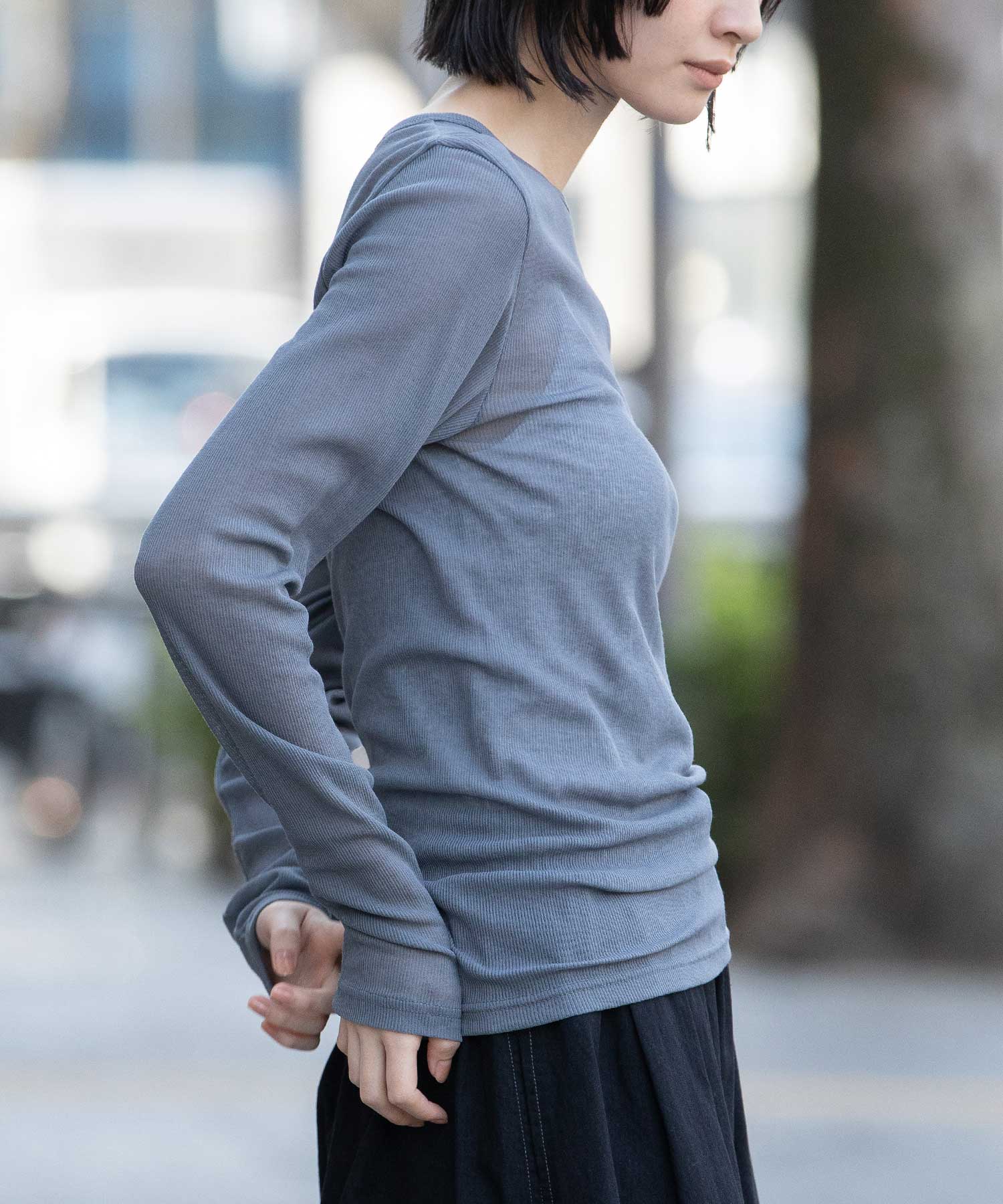 カラーバリエーションも4色、シアーなリブの風合いがどんなアイテムとの相性も良く、何枚でも揃えたくなるレイヤードにピッタリなアイテムです。