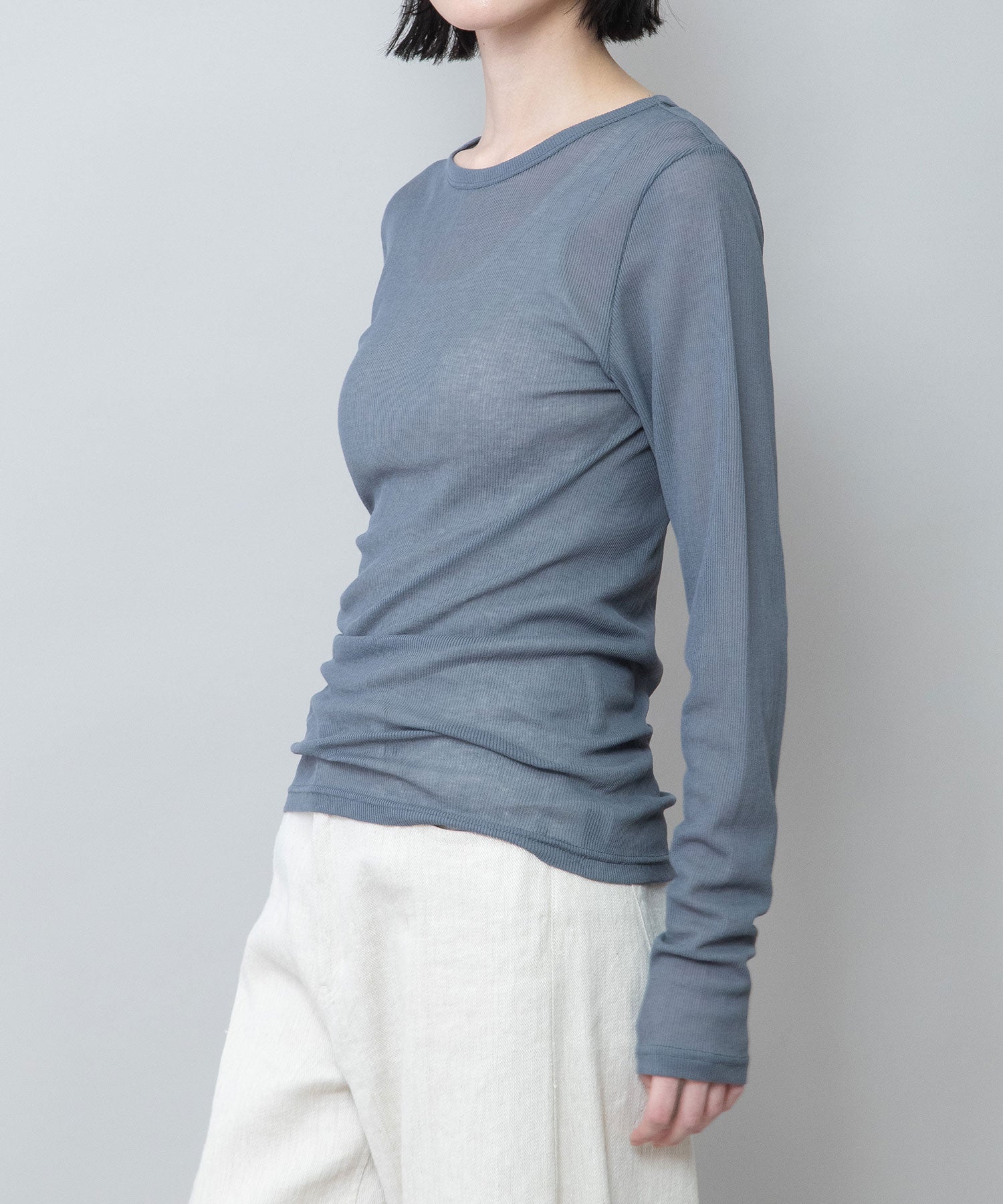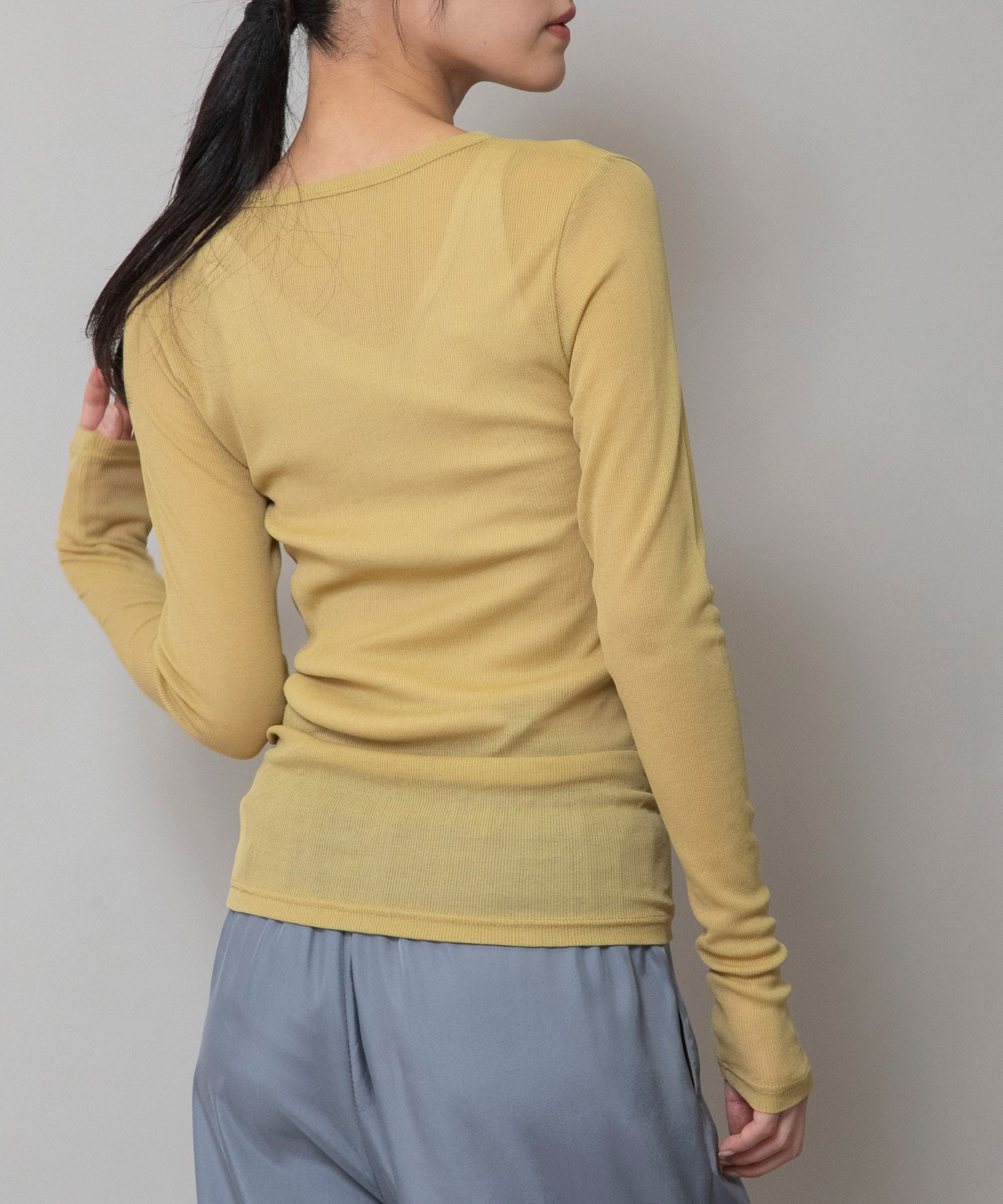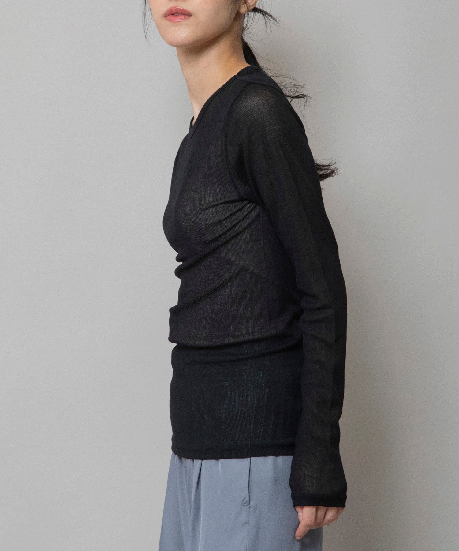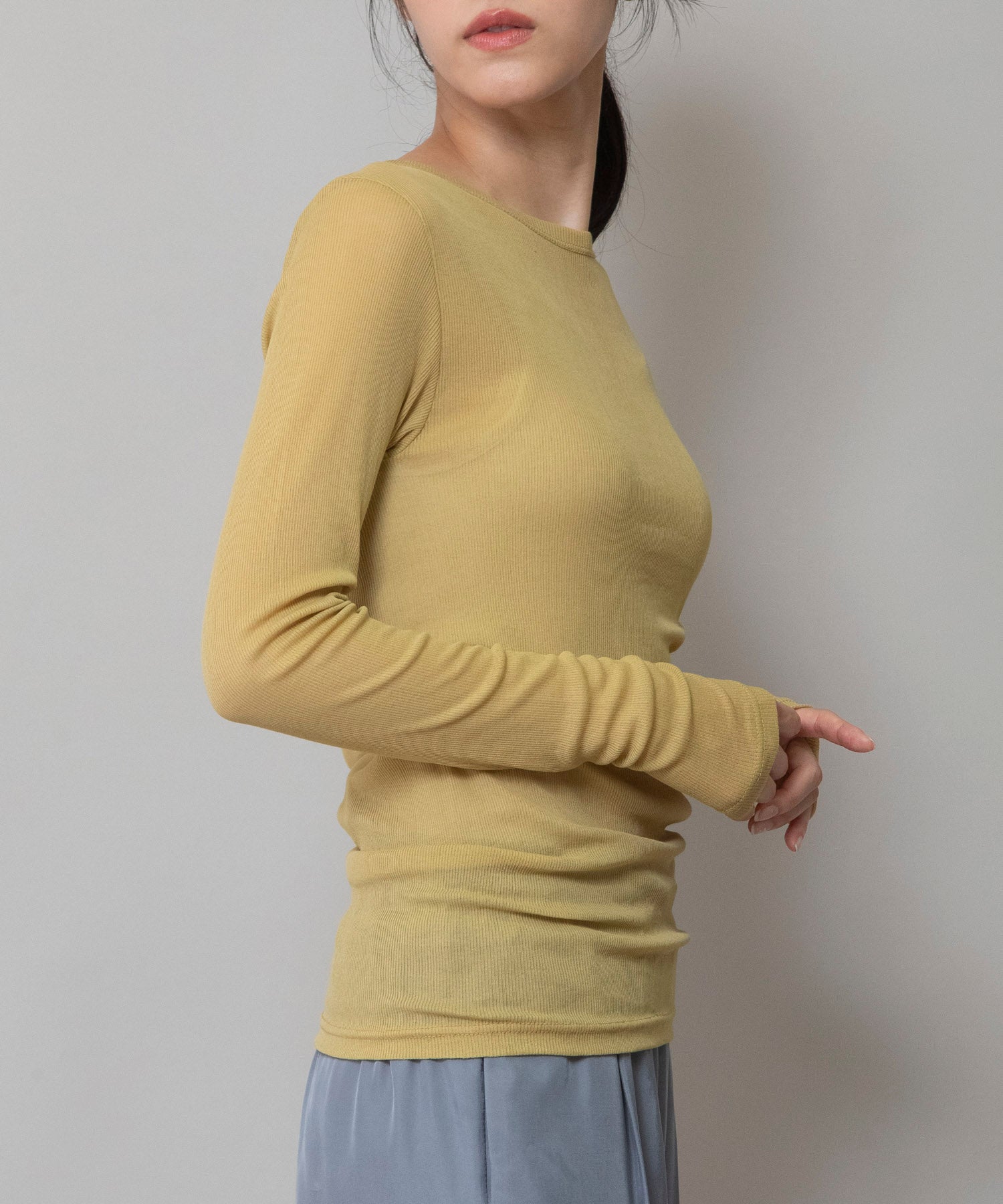 カラーバリエーションも4色、シアーなリブの風合いがどんなアイテムとの相性も良く、何枚でも揃えたくなるレイヤードにピッタリなアイテムです。