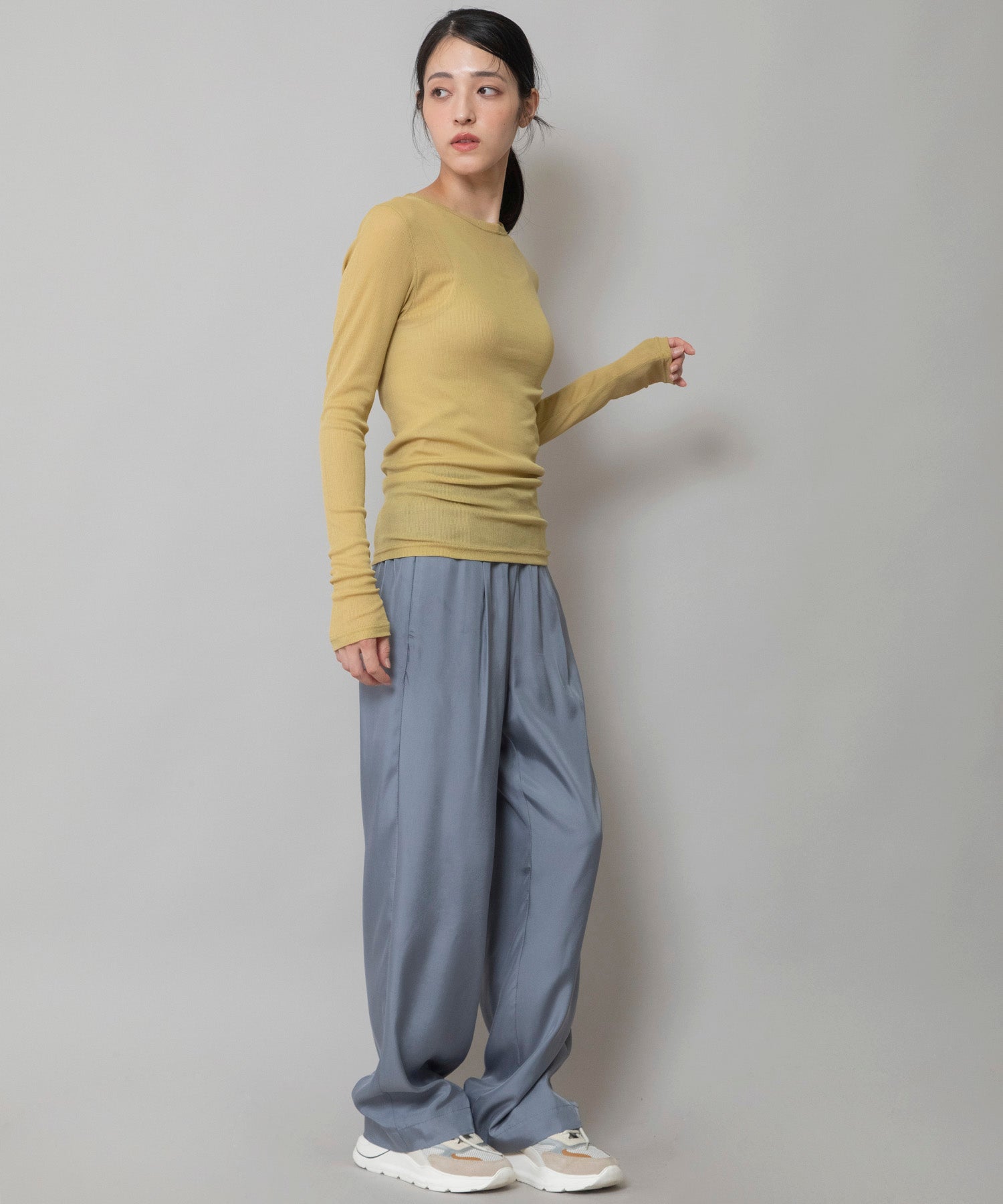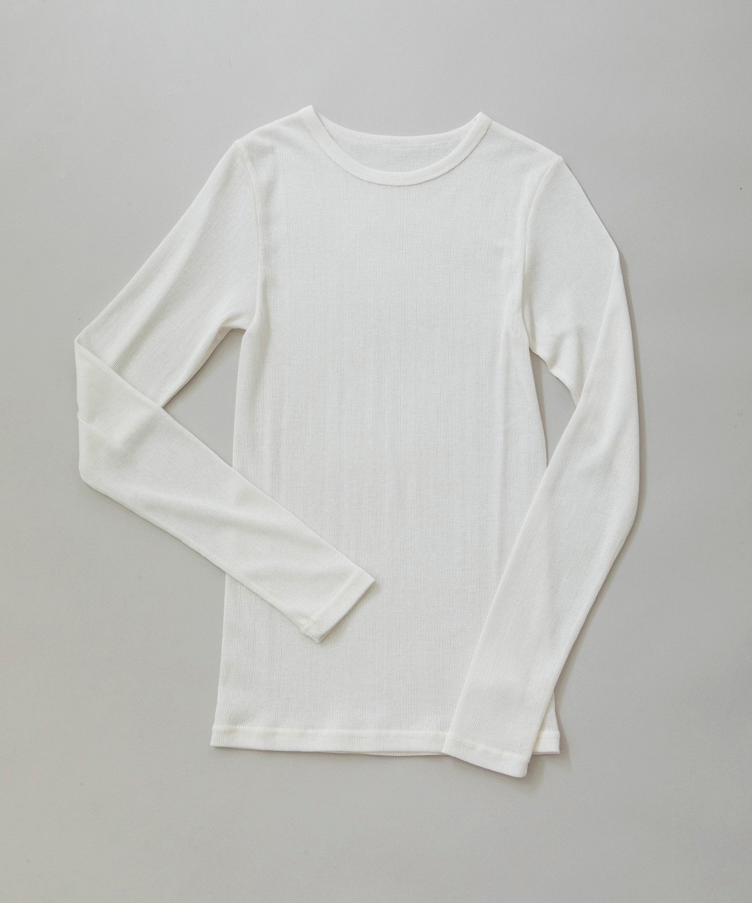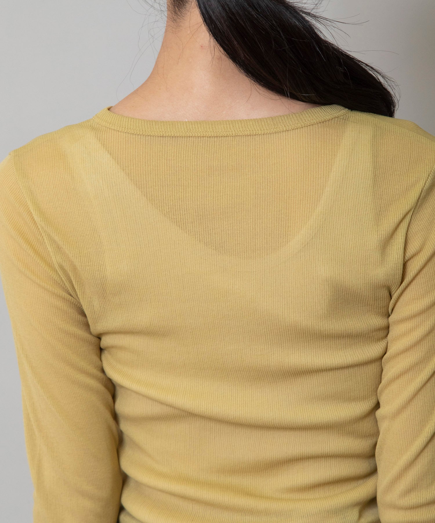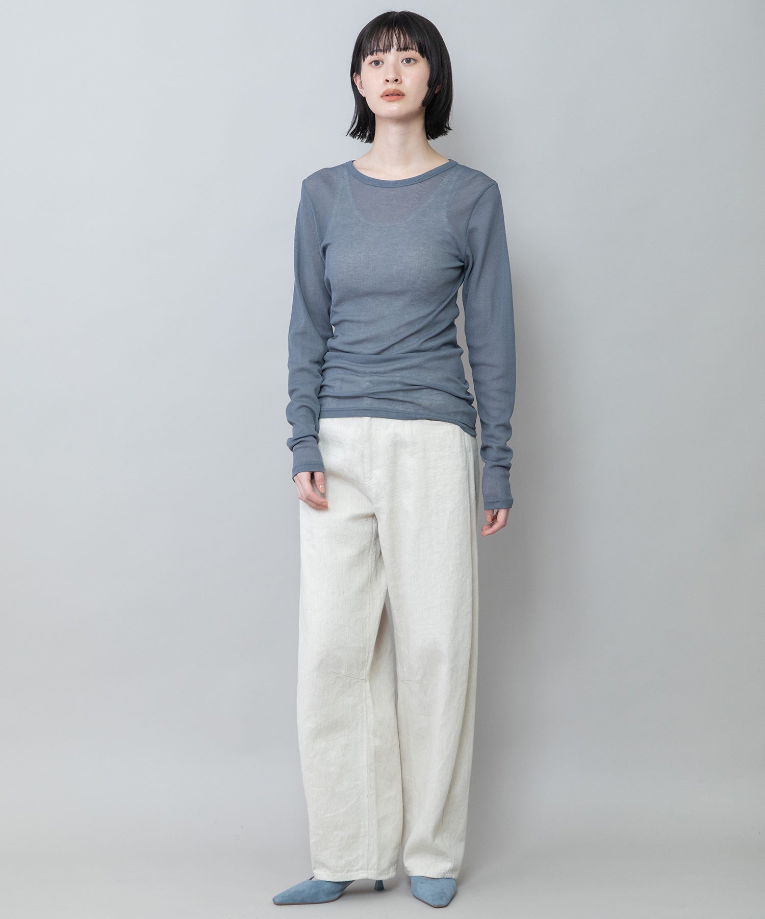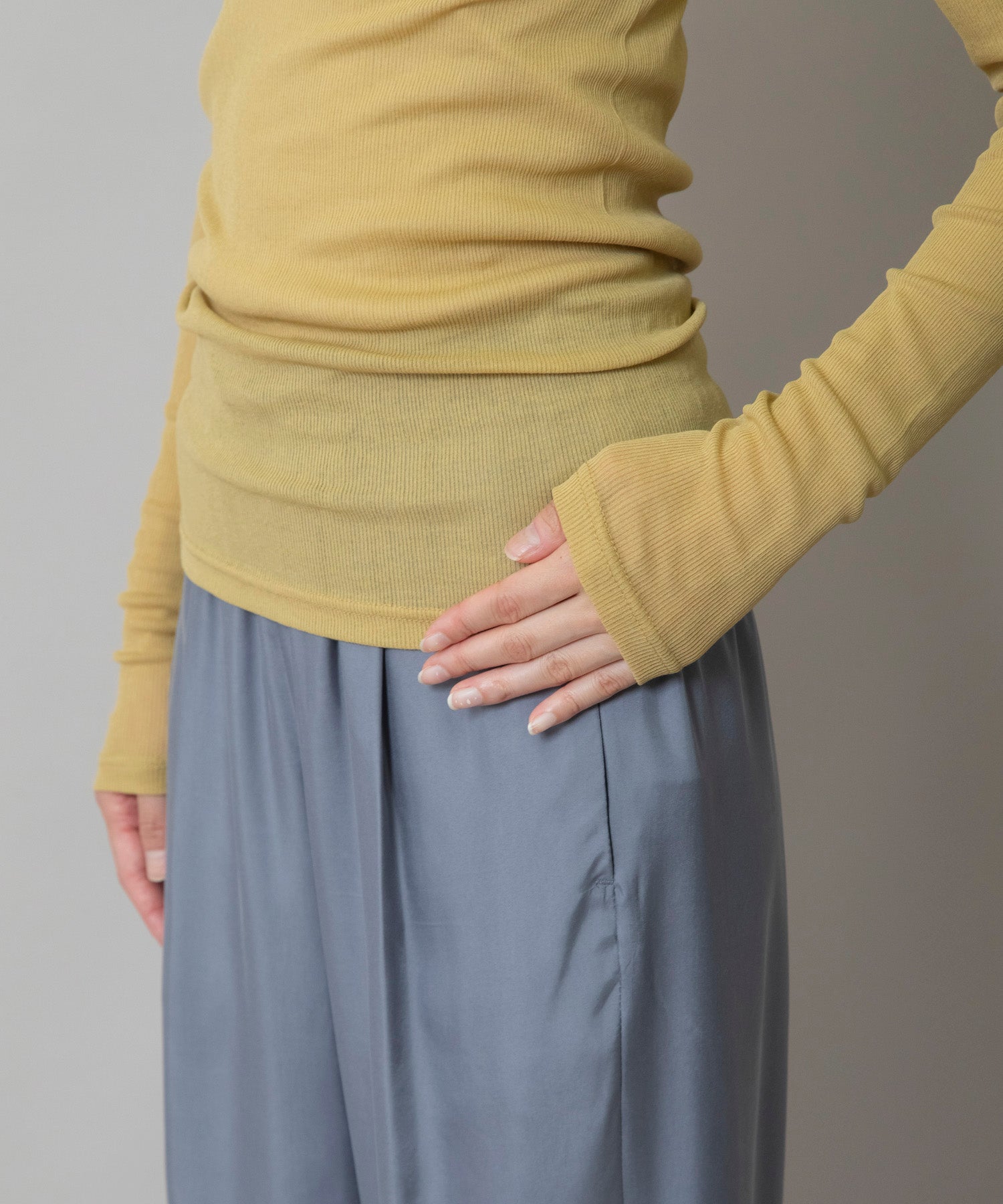 カラーバリエーションも4色、シアーなリブの風合いがどんなアイテムとの相性も良く、何枚でも揃えたくなるレイヤードにピッタリなアイテムです。