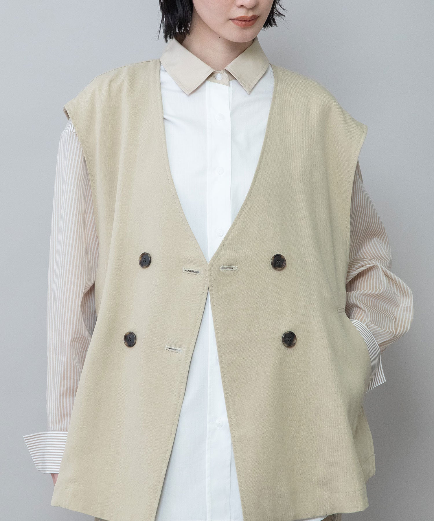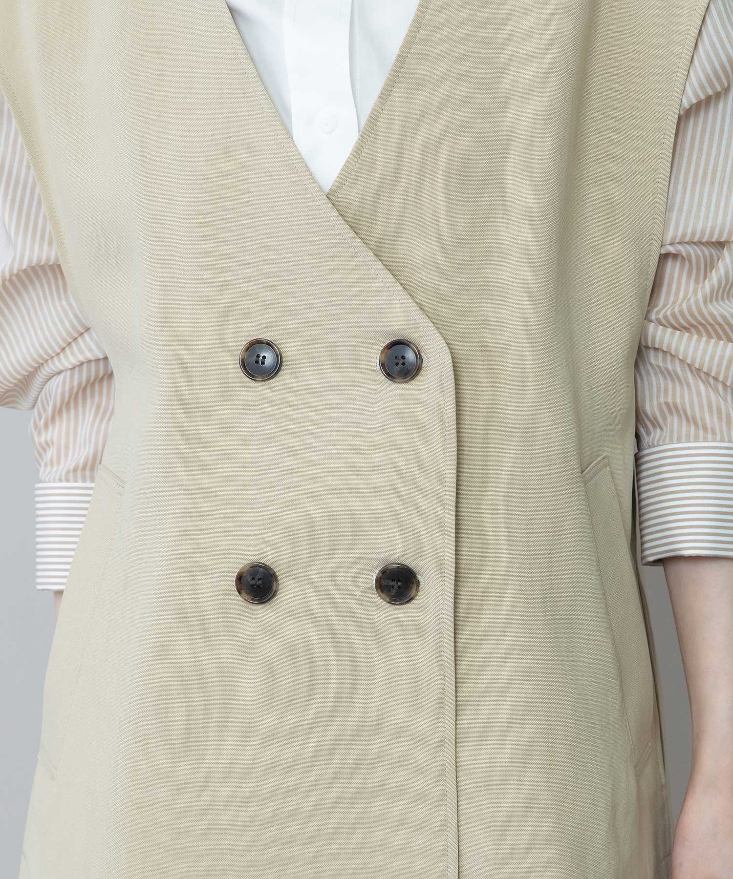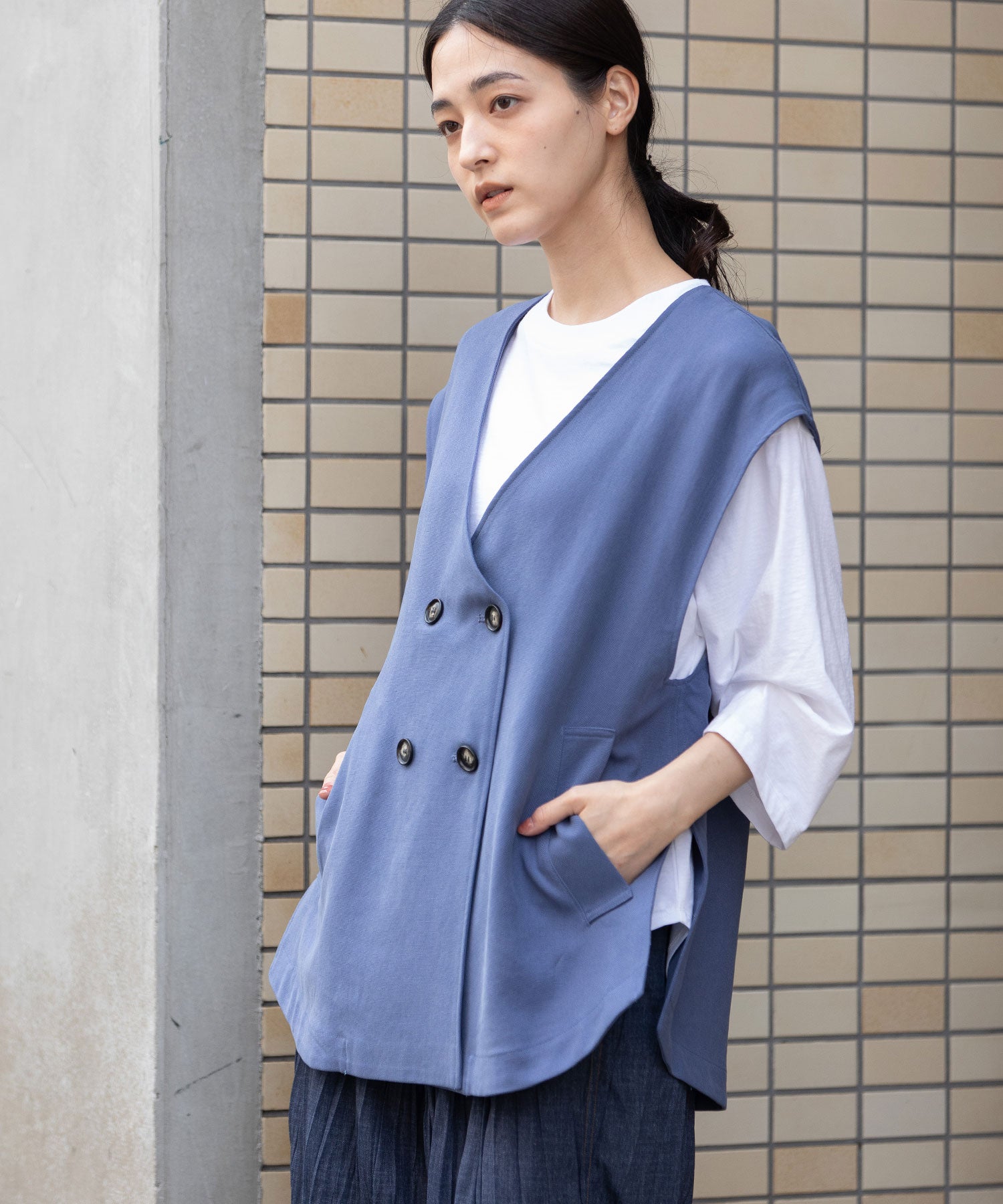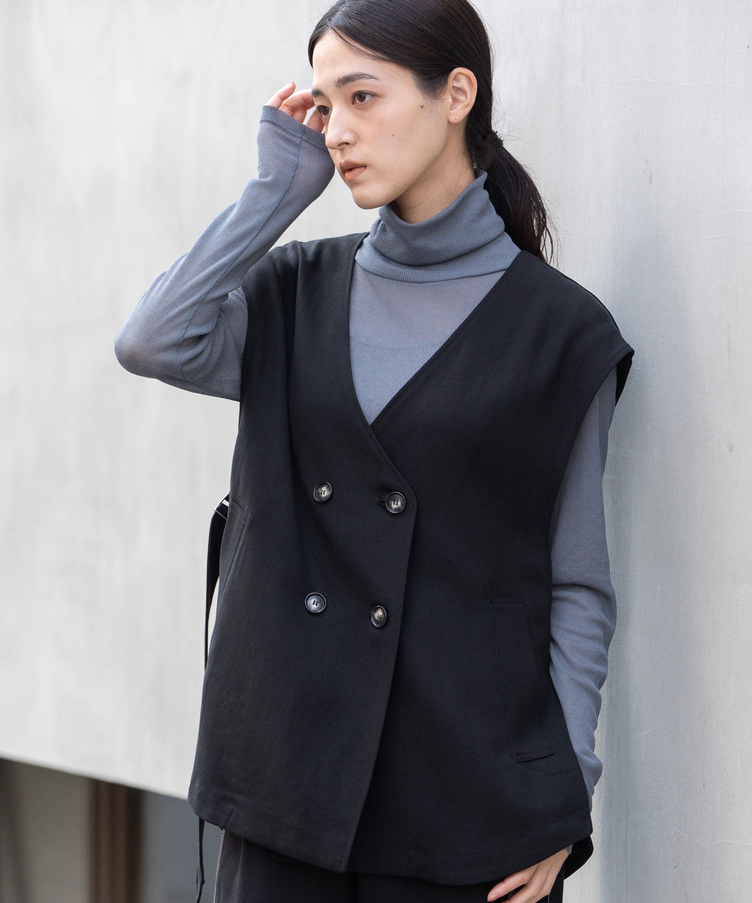 ◆上品な光沢と落ち感が大人っぽく、着こなしの幅が広がるダブルブレストジレ◆