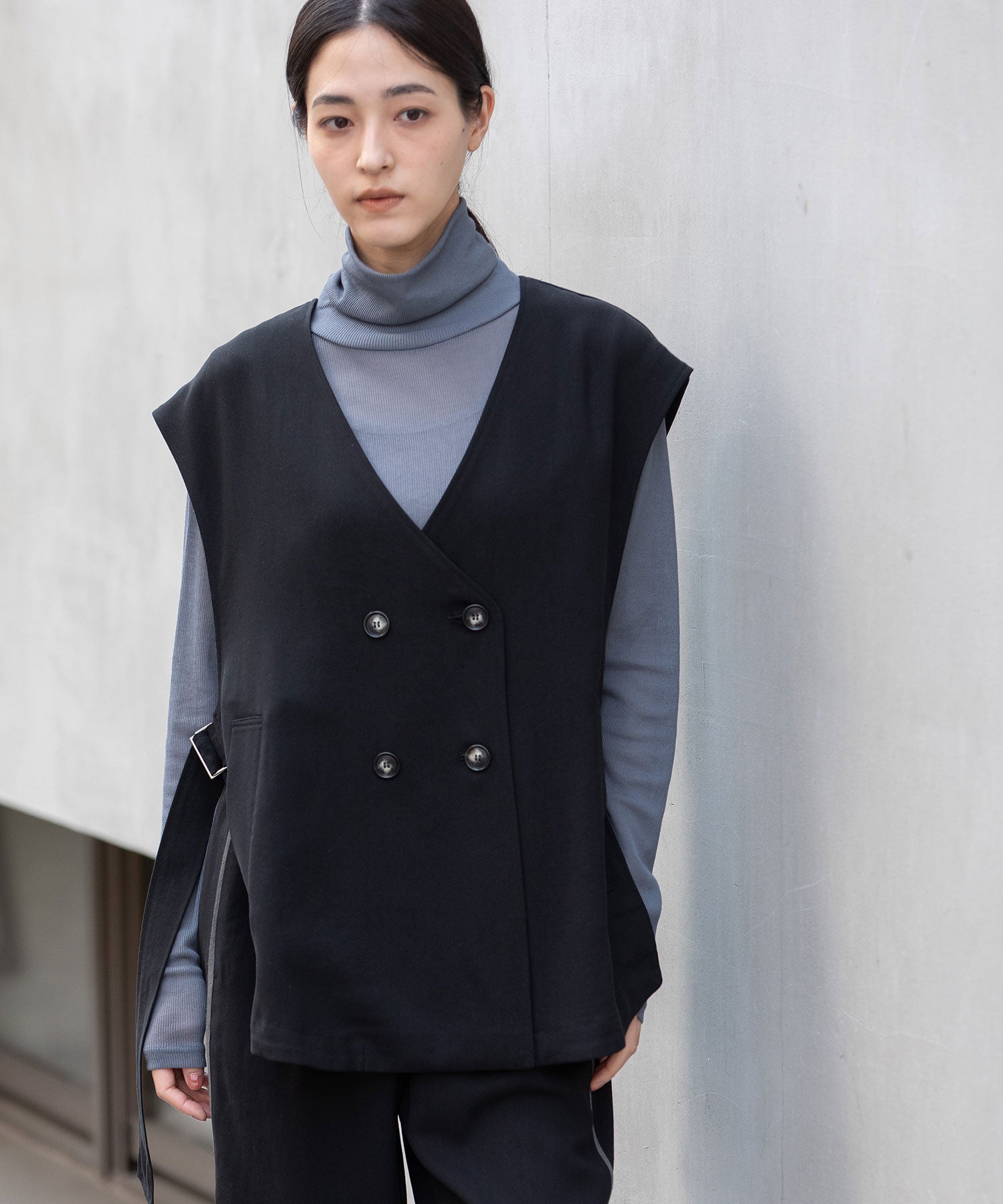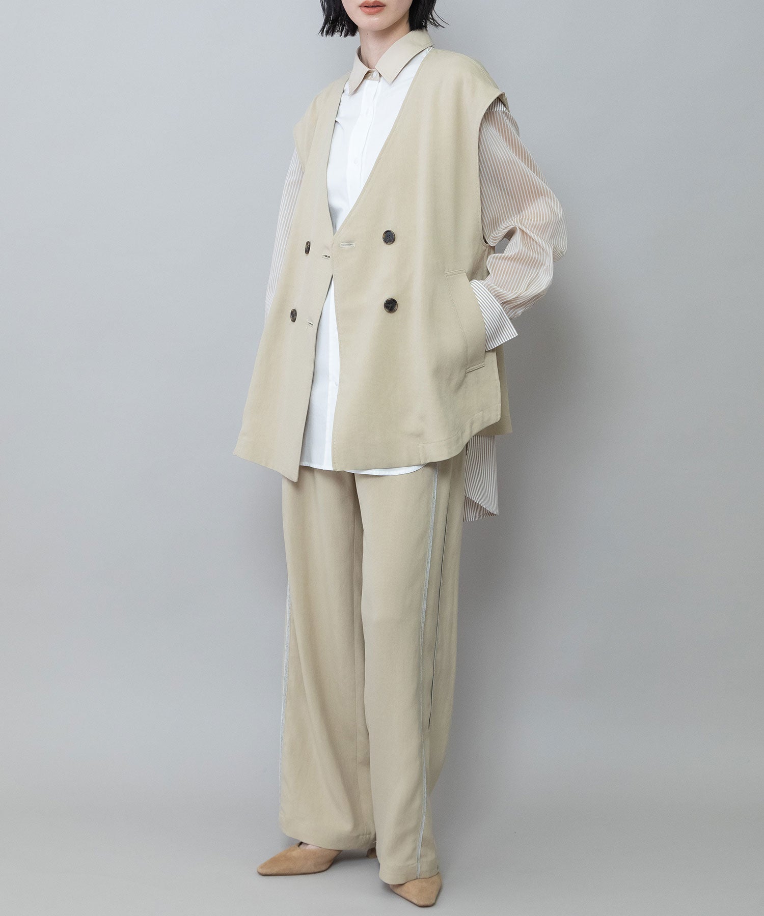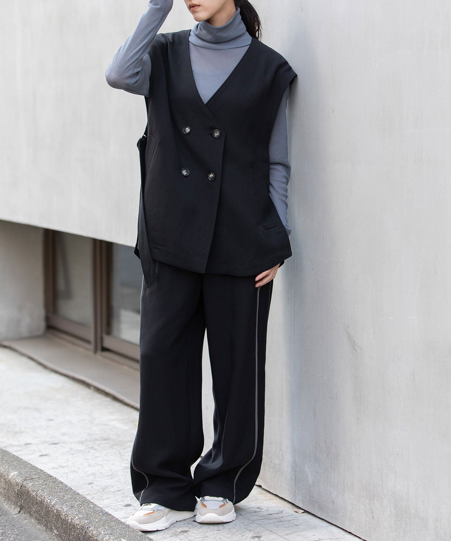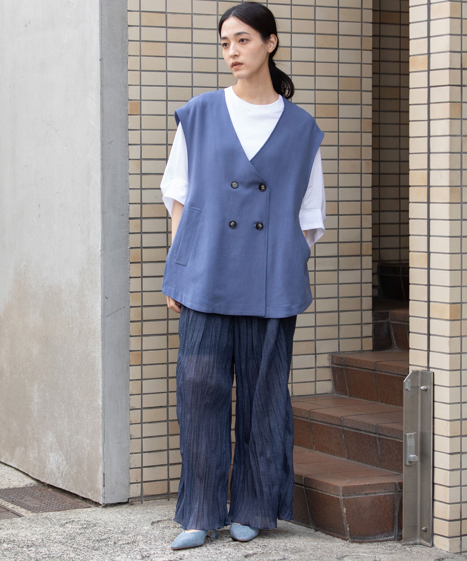 ◆上品な光沢と落ち感が大人っぽく、着こなしの幅が広がるダブルブレストジレ◆