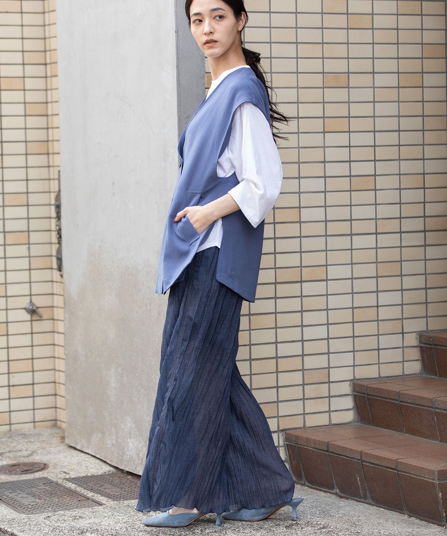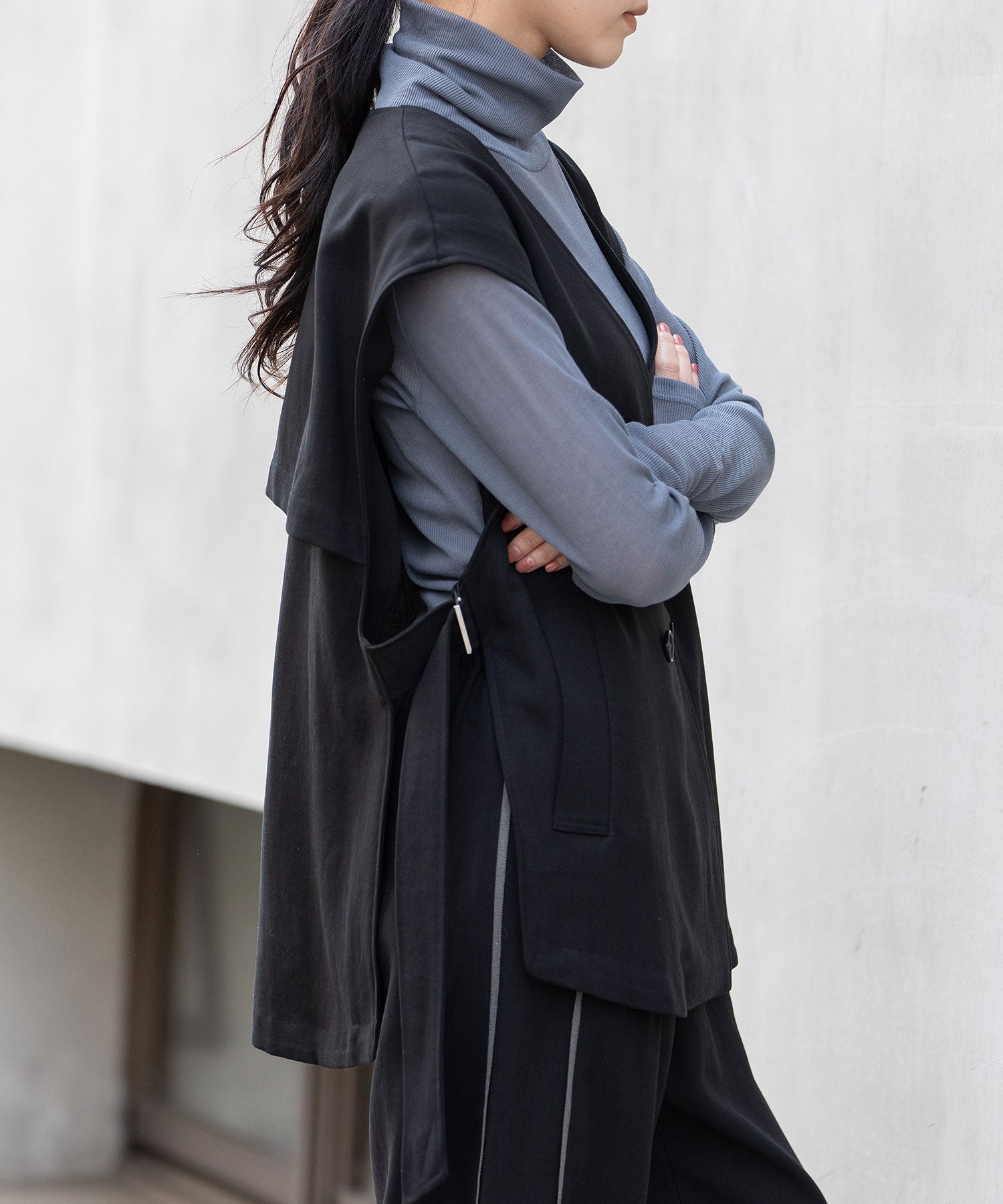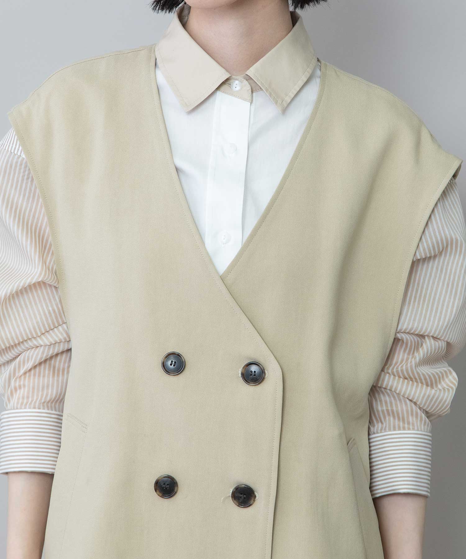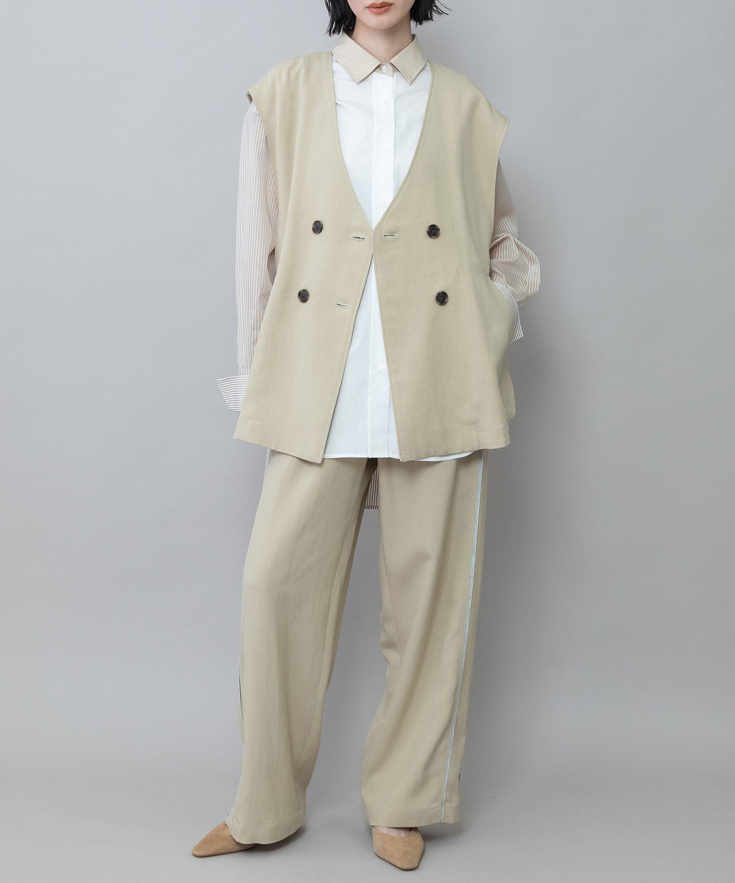 ◆上品な光沢と落ち感が大人っぽく、着こなしの幅が広がるダブルブレストジレ◆