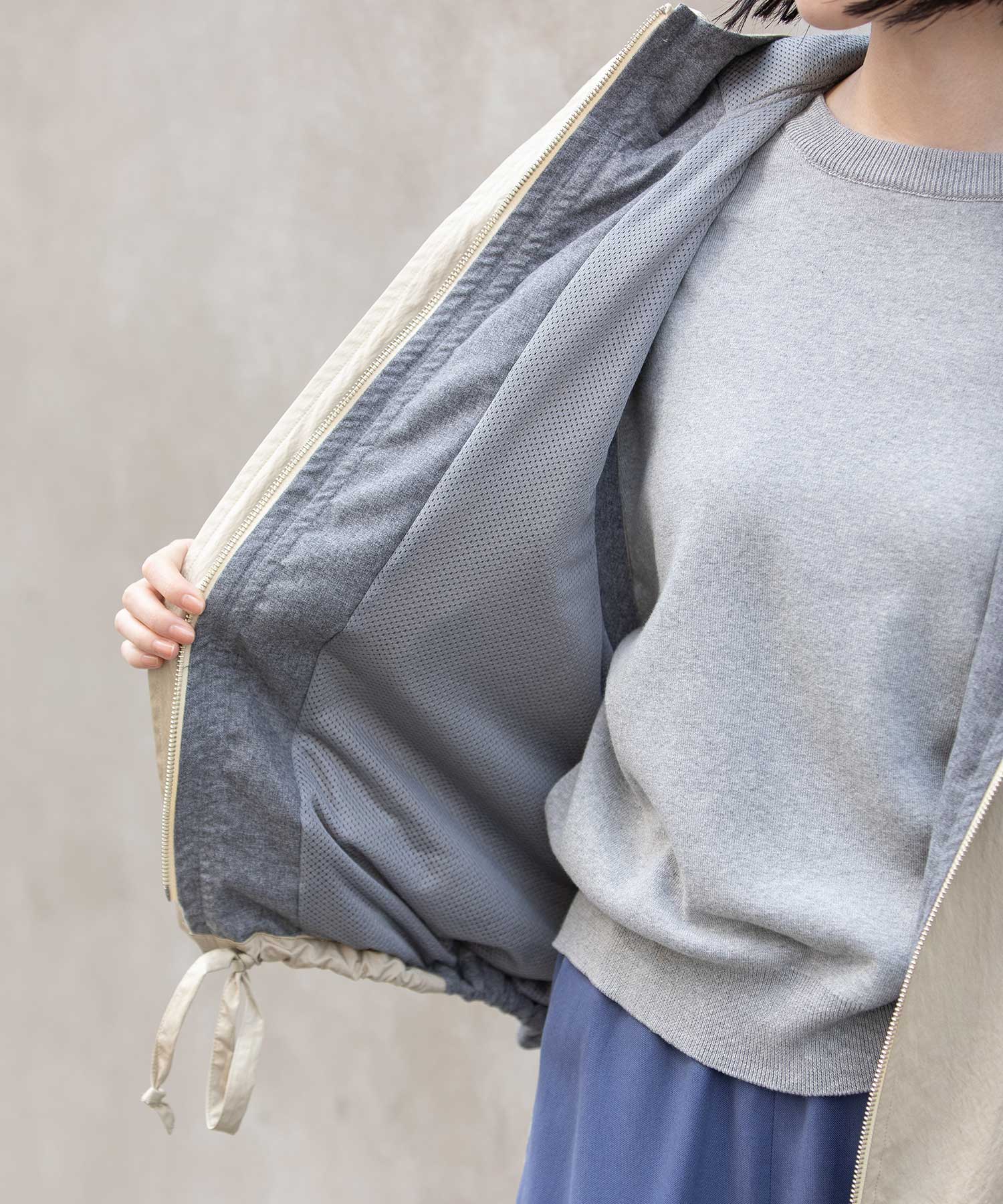◆裏地に多機能繊維Octaを採用した薄くて軽く使い勝手の良いフーディージレ◆