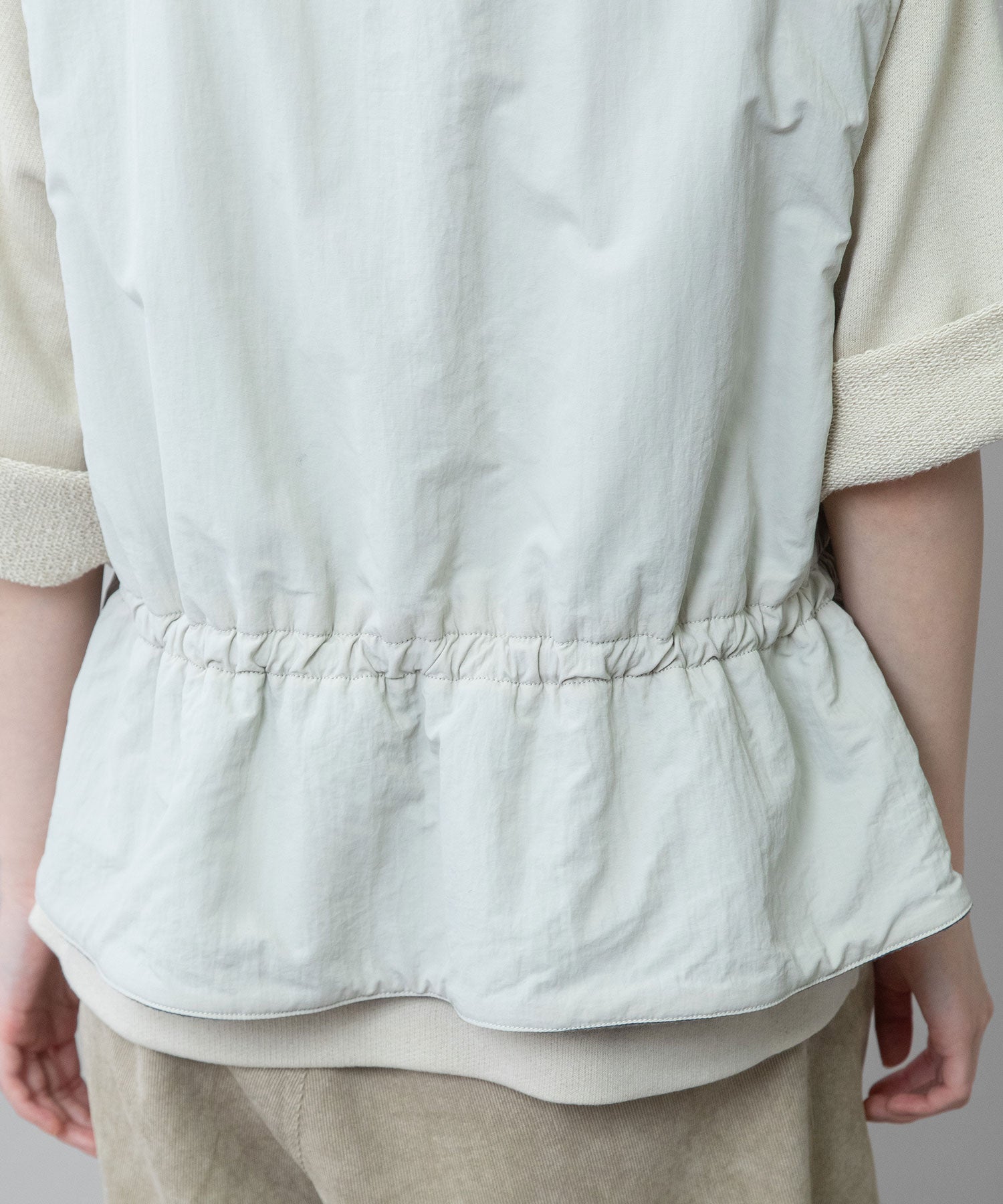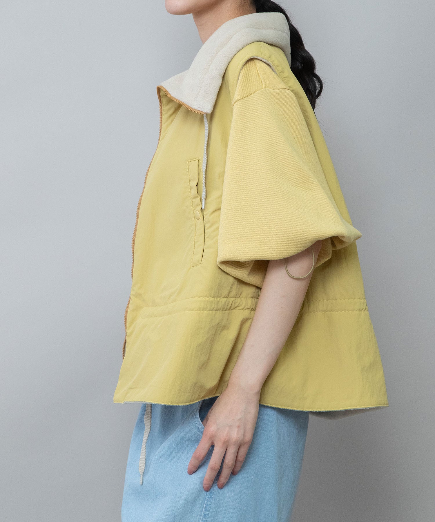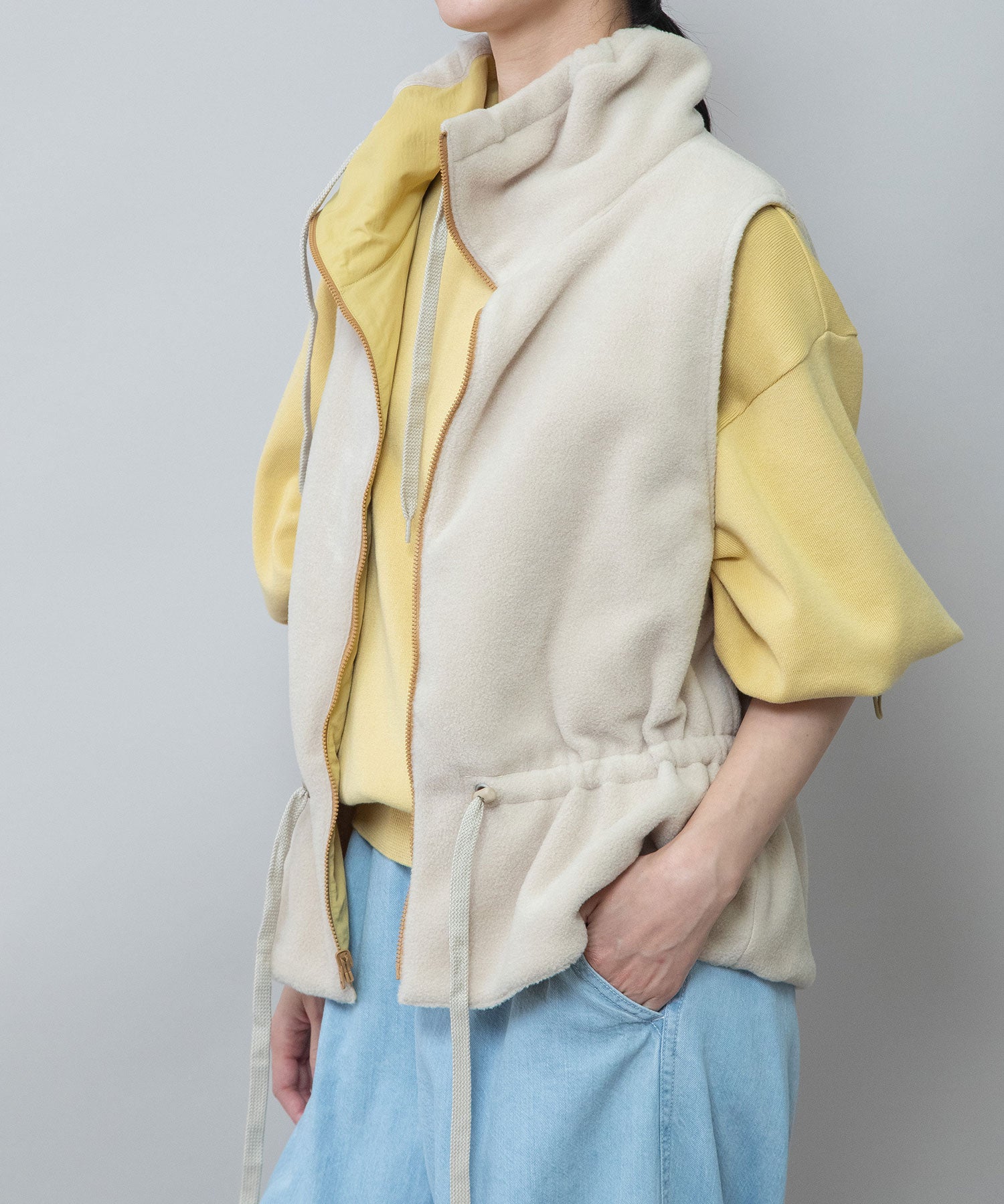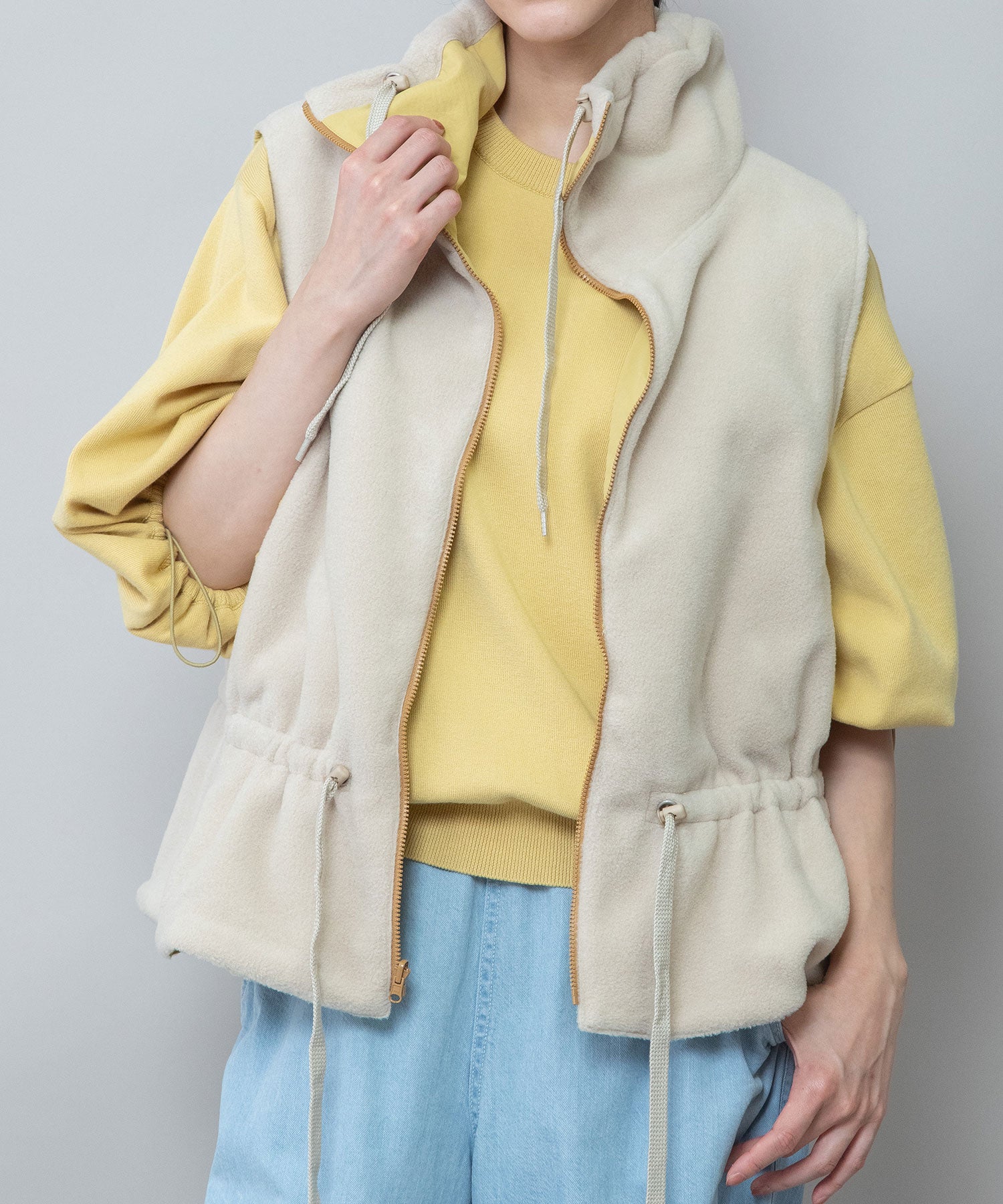 スタンドカラーとウエストがブラウジングできるスポーティなディテールのベストです。