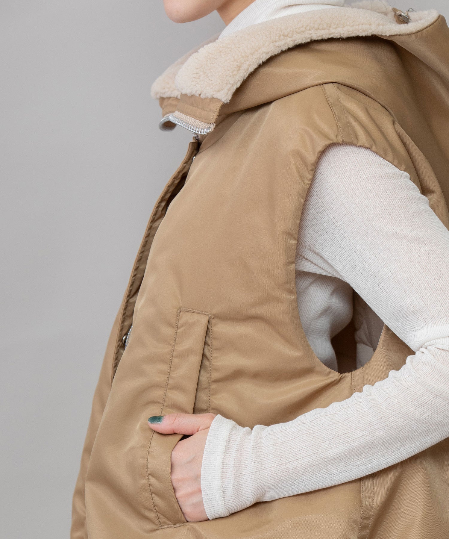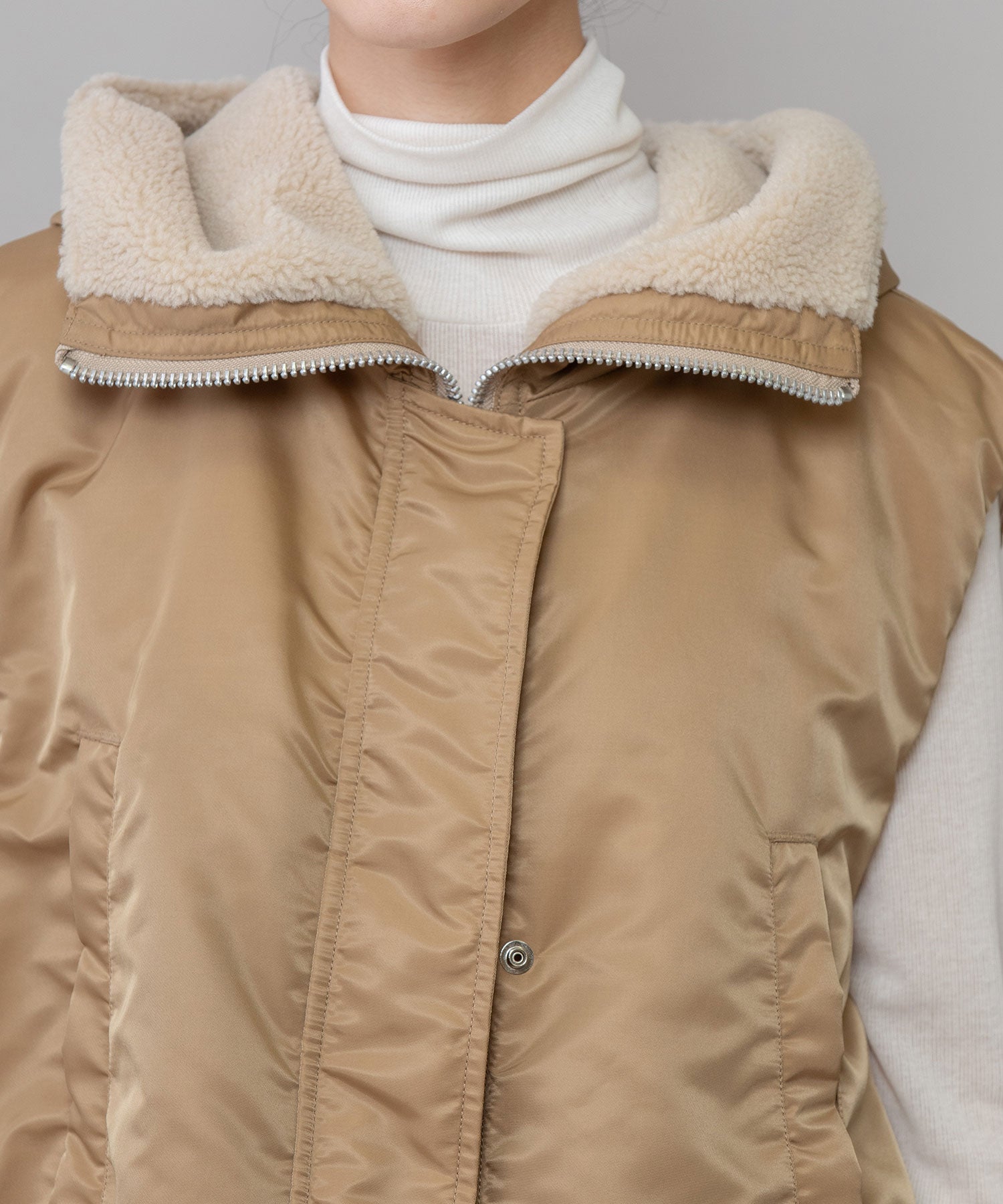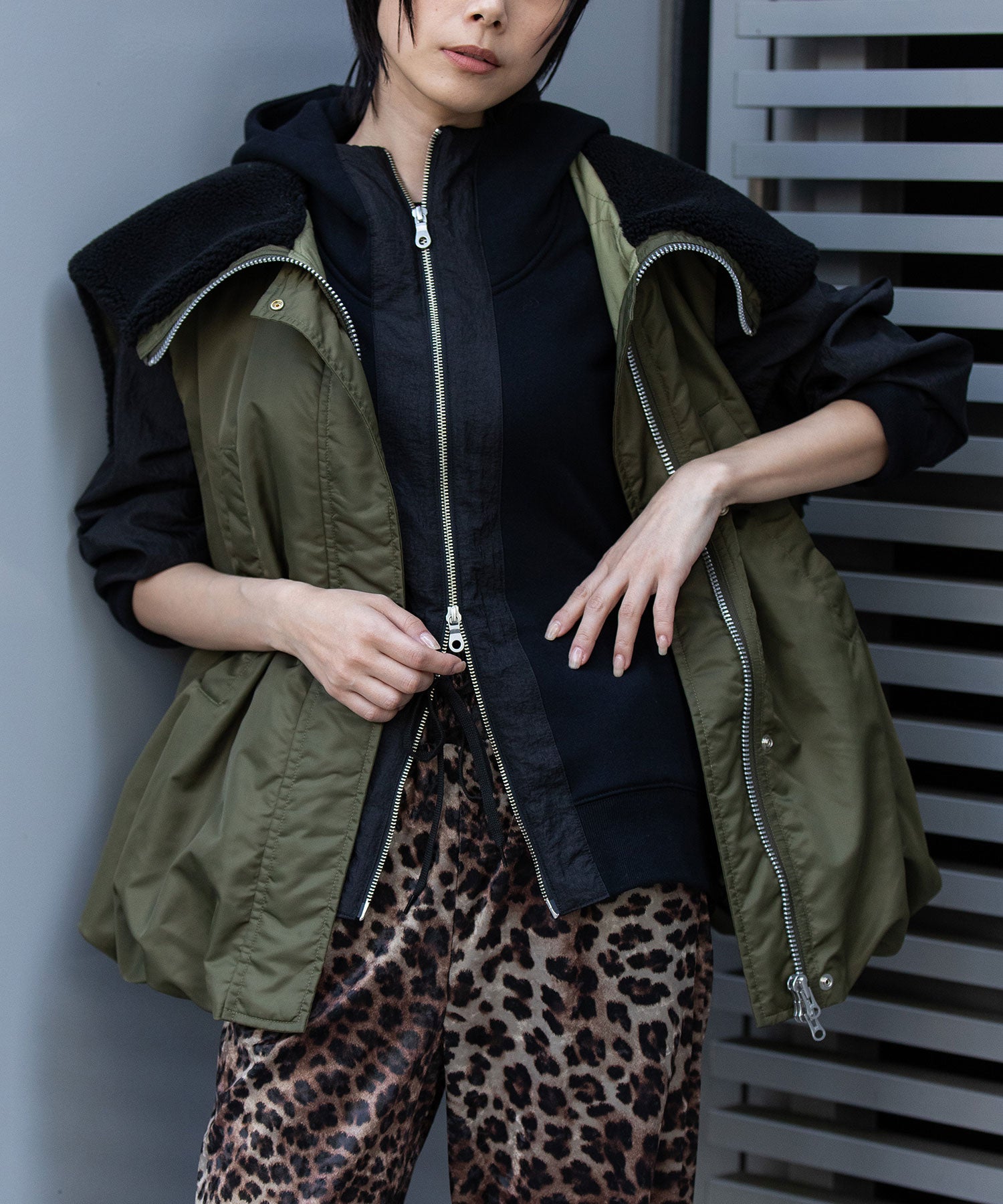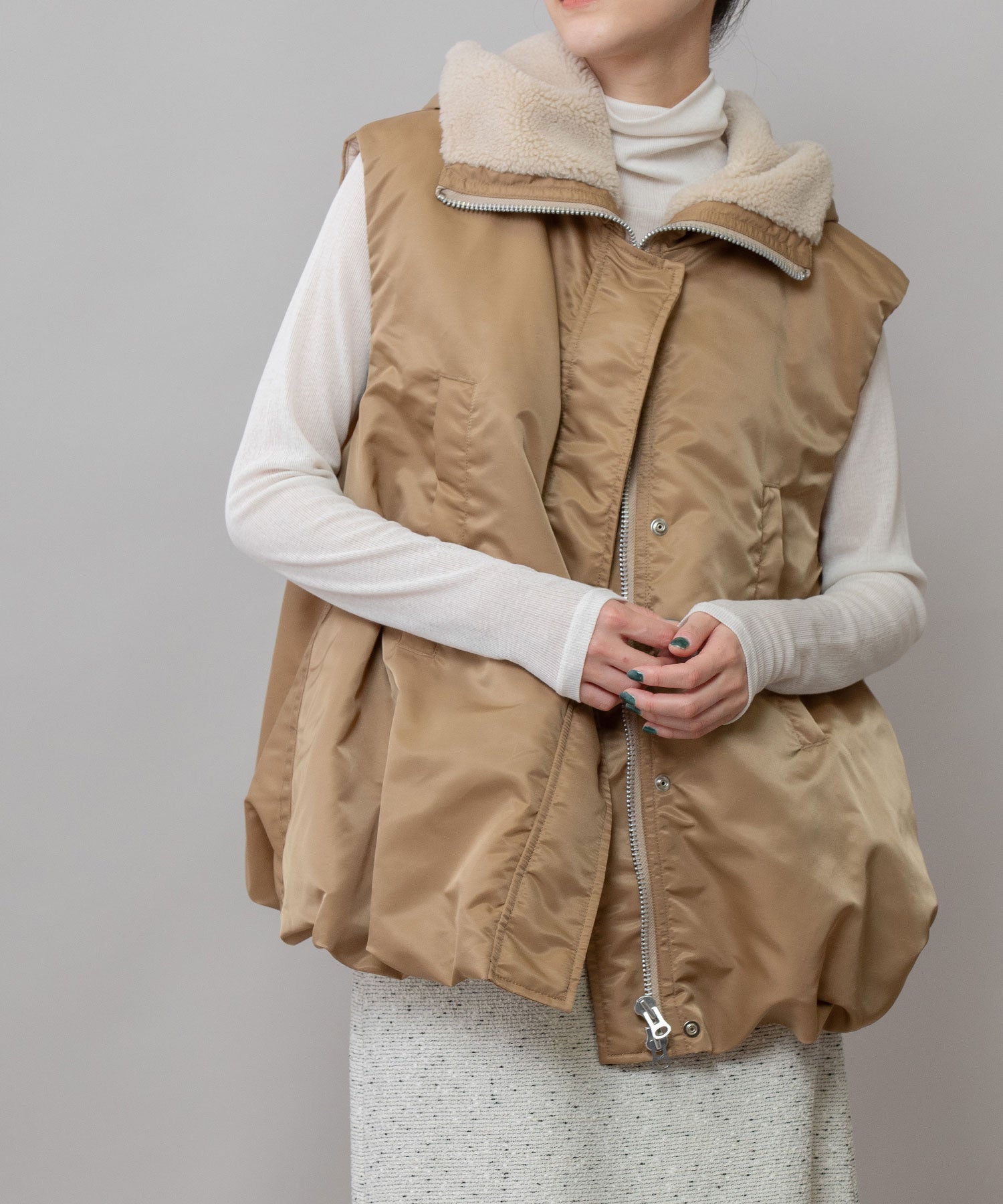 ◆ミリタリーなデザインを施したナイロン×ボア×中綿のコンビで丸みあるフォルムで女性らしさを感じられるベスト◆